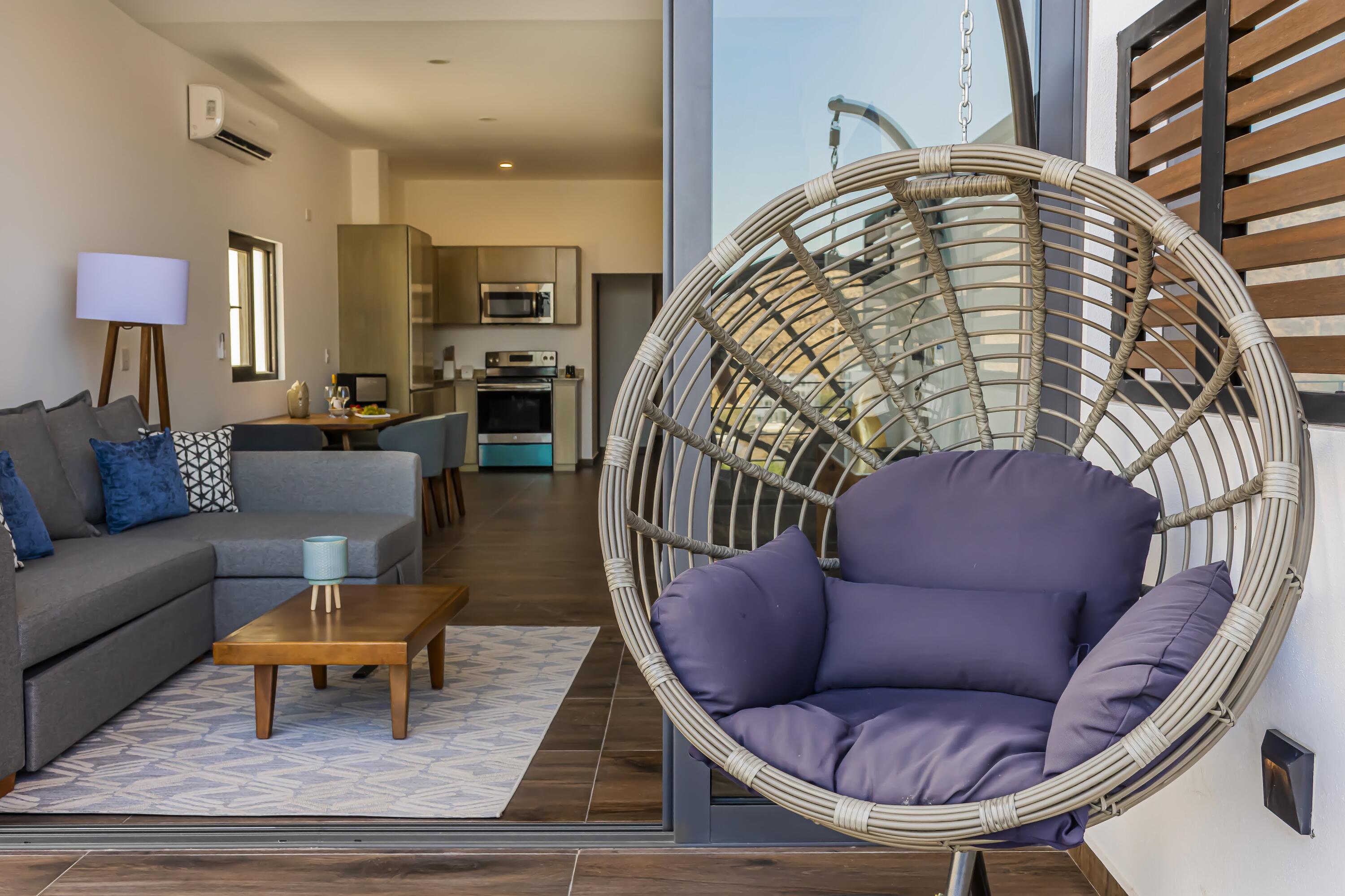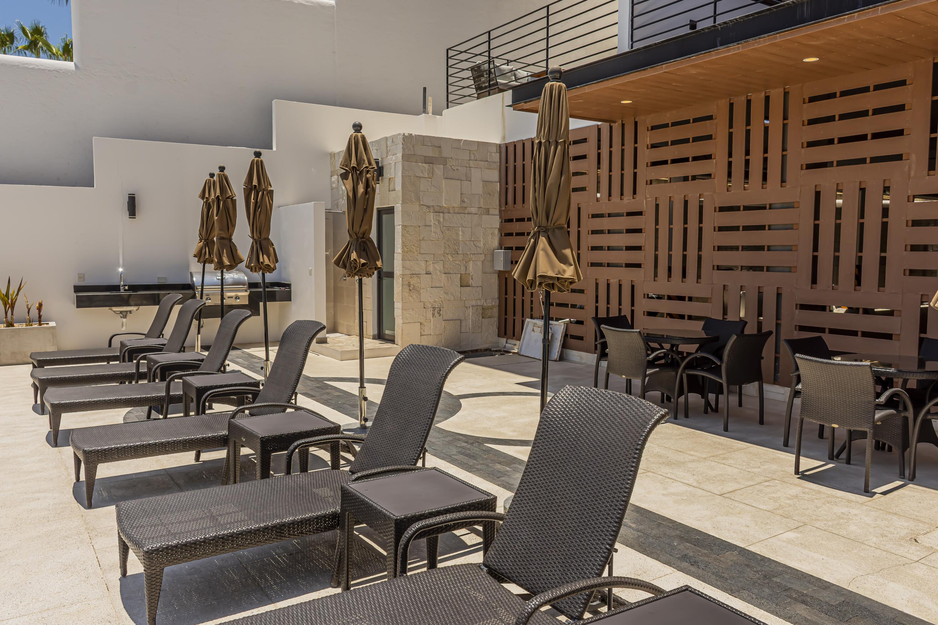 Discover unparalleled elegance in this sophisticated 2-bedroom, 2.5-bathroom corner condo, perfectly situated in the prestigious Pedregal community. Designed for refined living, this exquisite residence offers a seamless blend of modern comfort and timeless luxury. Step into a beautifully appointed interior, where spacious open-concept living meets breathtaking finishes. The kitchen boasts premium appliances, sleek countertops, and elegant cabinetry, perfect for entertaining or intimate gatherings. Each bedroom is a private sanctuary, featuring en-suite baths with high-end fixtures and luxurious details, the building also offers elevator for the residents convenience. Access to a sparkling common pool, relaxing hot tub, BBQ area, and lush landscaped surroundings.