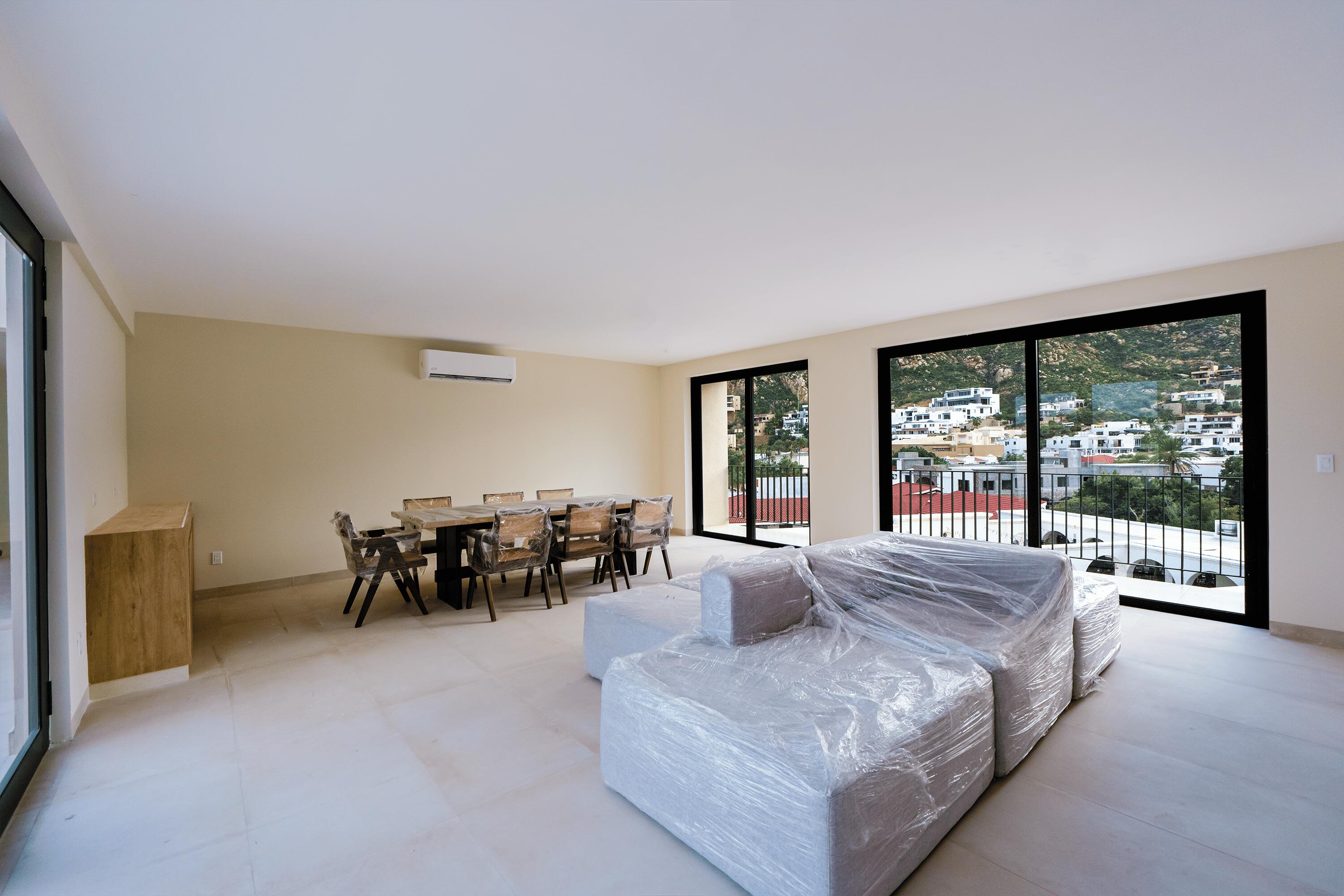 Located in the exclusive lower Pedregal community, this modern 1-bedroom, 1-bathroom condominium at Coyote Tower offers a comfortable and stylish living experience. With approximately 800 sq ft of total living space, including a private terrace or garden depending on the unit, the residence features an open-concept layout with kitchen, living area, and laundry space. High-quality finishes include porcelain tile flooring, custom cabinetry, and a functional, well-designed kitchen. The bedroom offers a spacious closet and a private bathroom with modern vanity. Enjoy beautiful mountain views and a prime location just minutes from the beach, restaurants, and downtown Cabo San Lucas.