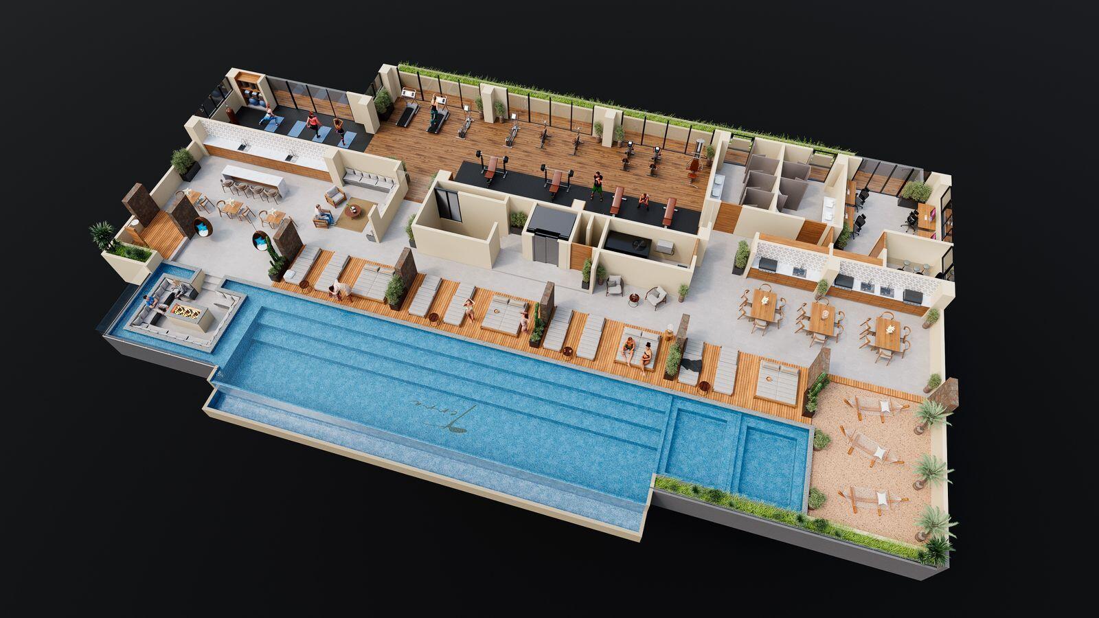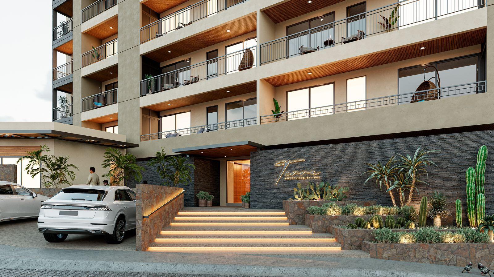 Latest Proyect 300 mts from Downtown Cabo San Lucas Terra192, 48 Condos in 6 Story Bulding with Amenities! Studios Studio + Flex 1 Br+ Flex 2 br- 2 bath 2 br + Flex Full Rooftop with Amenities, gym, Swimming pool, grill, etc. Ideal for vacation rental Program This Complex will be operating as a Boutique Hotel Service #201 is second floor B side Studio with Kitchen, closets and a/c included. $3,100,000 Pesos Completion Date June 2026.