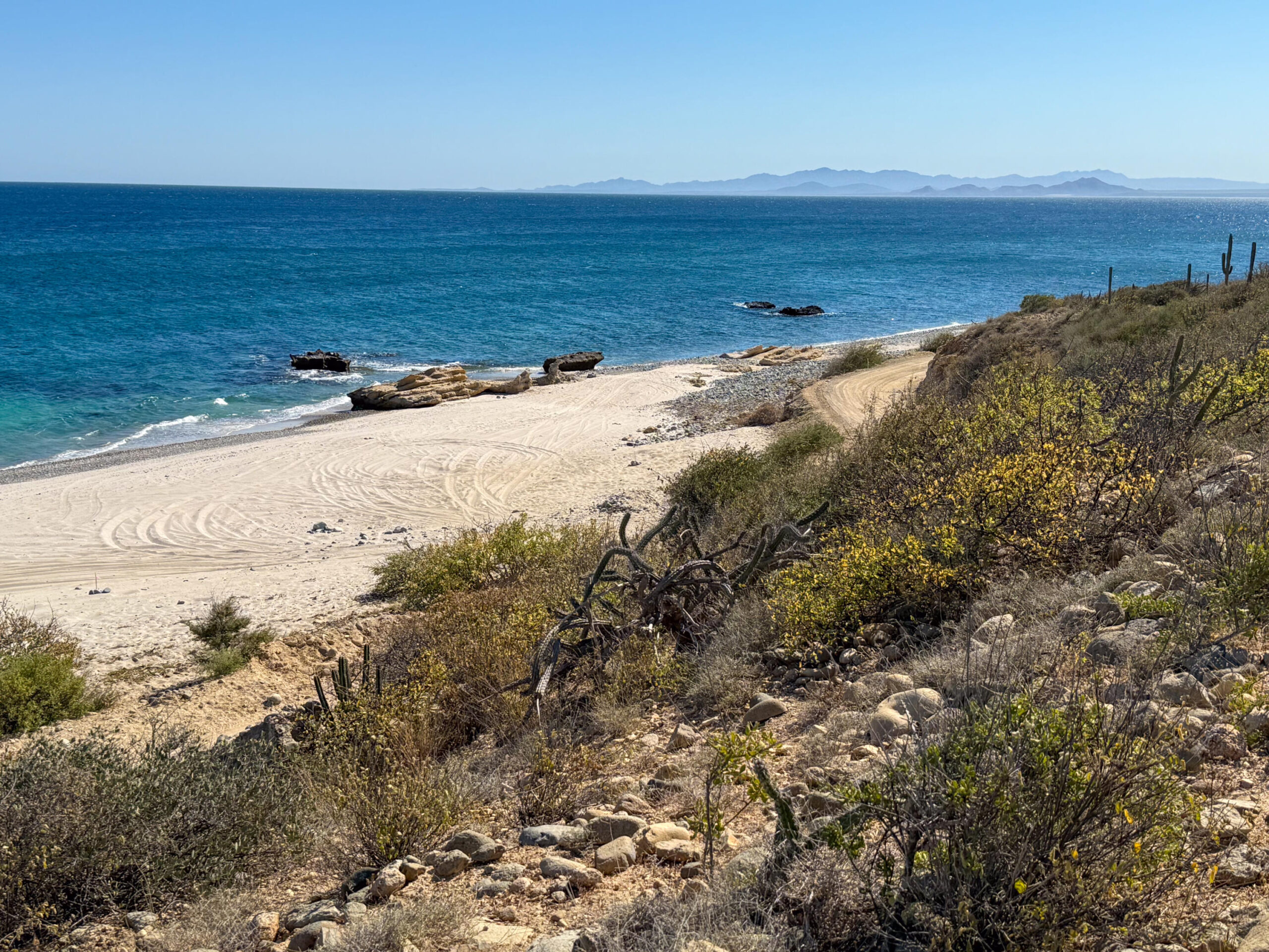 Montemar is a secluded subdivision just under 30 minutes away from Los Barriles on the paved road. You can also get there on the unpaved coast road. There are now 8 beautiful modern homes built or being built in Montemar Phase 1. Phase 3 homesites have just recently been released for sale. These homesites are large and on a beautiful beach with views of the Sea of Cortez and the Siera de la Laguna mountains. Every lot has views!