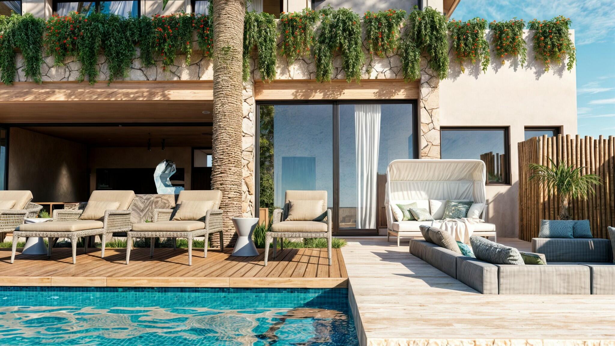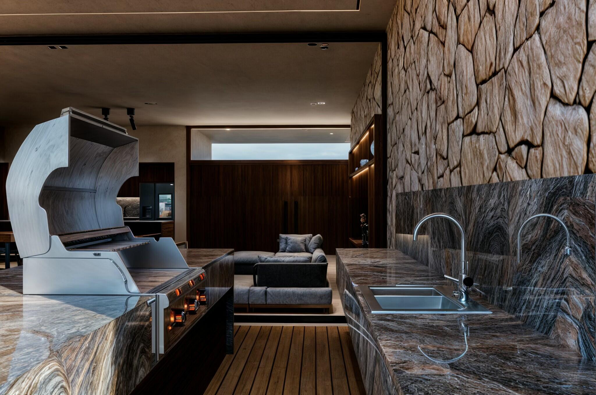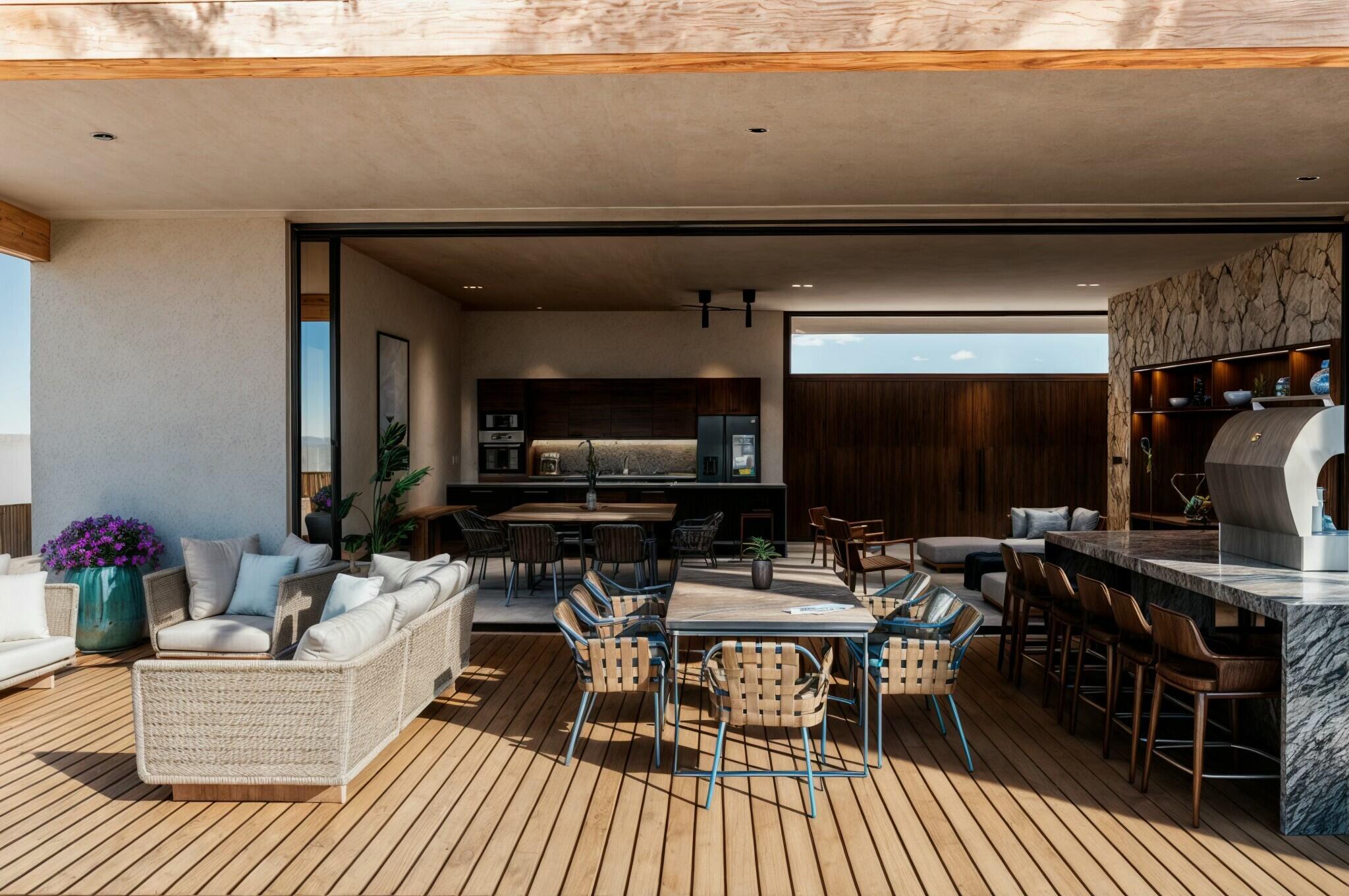 The best part of life unfolds outdoors when we honor the sun, when we welcome the breeze on our face. The very essence of this house is, precisely, to live the outdoors. The relentless beauty of nature is found in the outdoor spaces—terraces, patios, pools, sun decks, pergolas—providing a place for dialogue, an opportunity for interaction with the spacious interior of the social area, the kitchen, and at the same time, with the master bedroom on the ground floor, equipped with a jacuzzi and an unparalleled view.