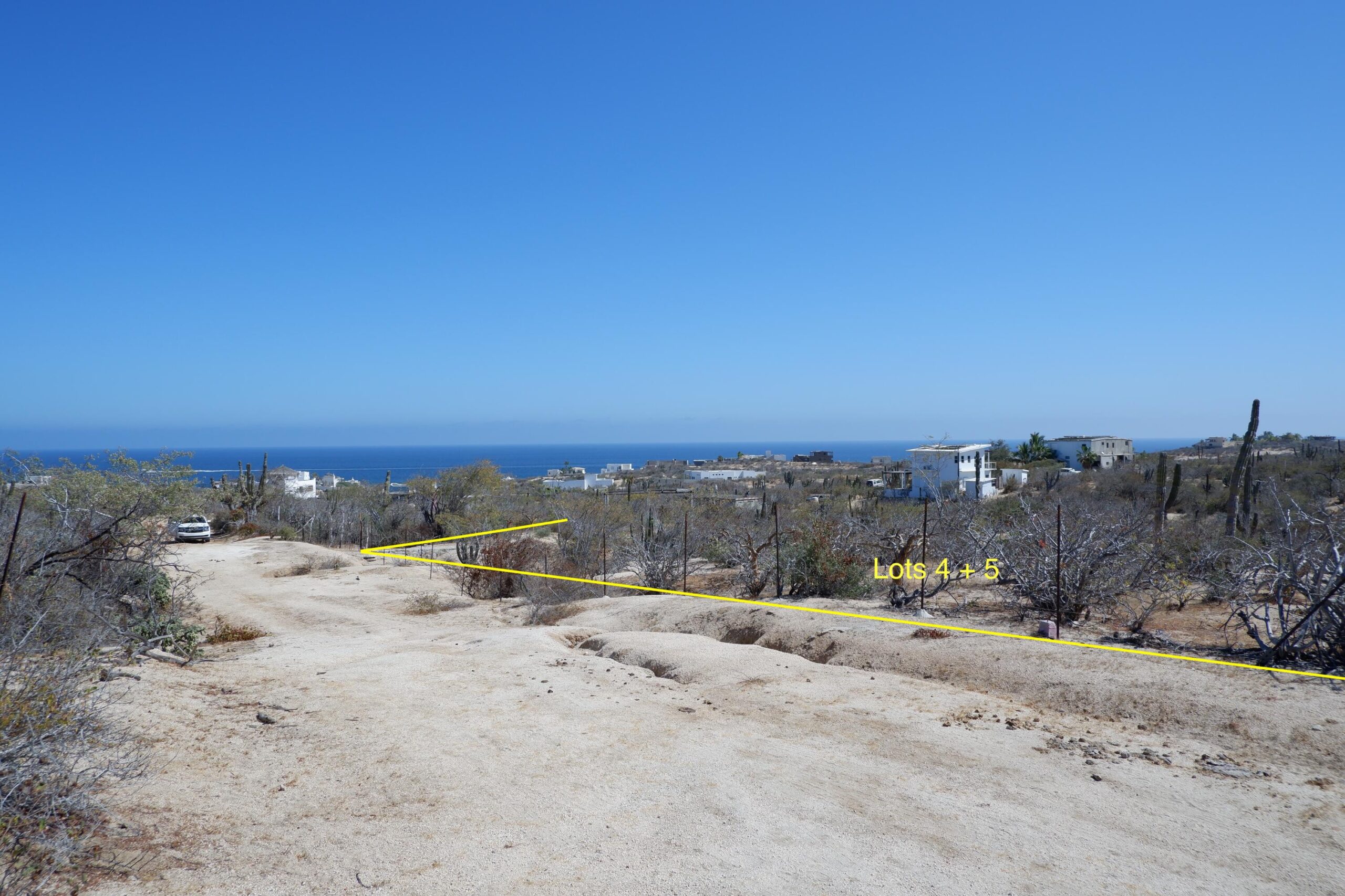 Build your dream home on this rare combined 1-acre parcel (Lots 4 & 5, Manzana 6) in Rancho Tortuga, East Cape—just a 3-min drive or 15-20 min walk to the beach. Set back from the main road for privacy, peace, and no dust/sand or noise from vehicle traffic. This entire property backs onto a vast arroyo with forever ocean views and stunning natural surroundings. Thanks to the elevated topography, a second-story or rooftop terrace will reward you with breathtaking 360° panoramic views of the Sea of Cortez, rugged mountains, vibrant sunsets, and awe-inspiring sunrises. Just 30 mins to San José del Cabo, 5 mins to Shipwrecks surf spot, and a close drive to world-class restaurants. Enjoy the best of both worlds: serene, off-grid living with seamless access to adventure and upscale experiences.