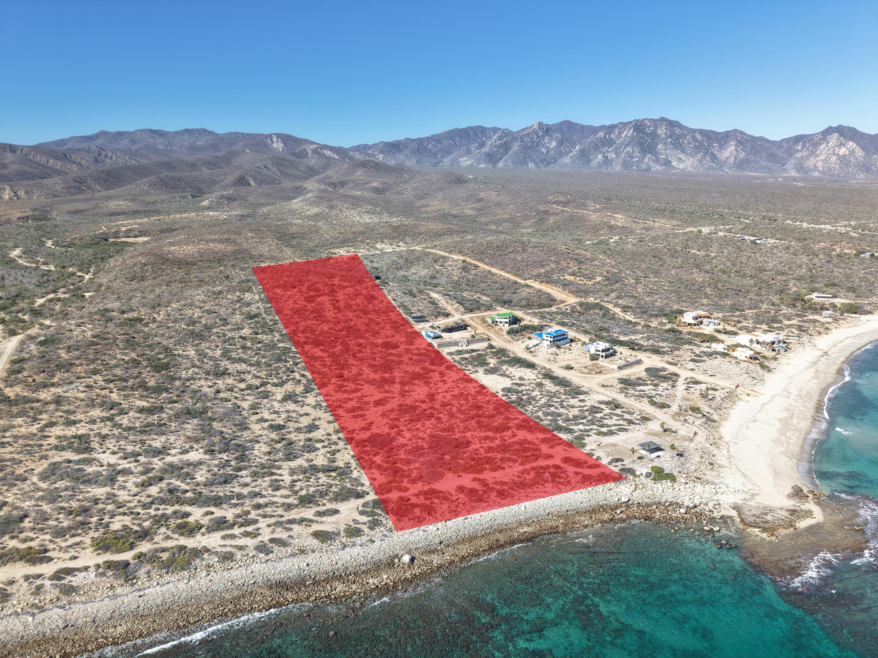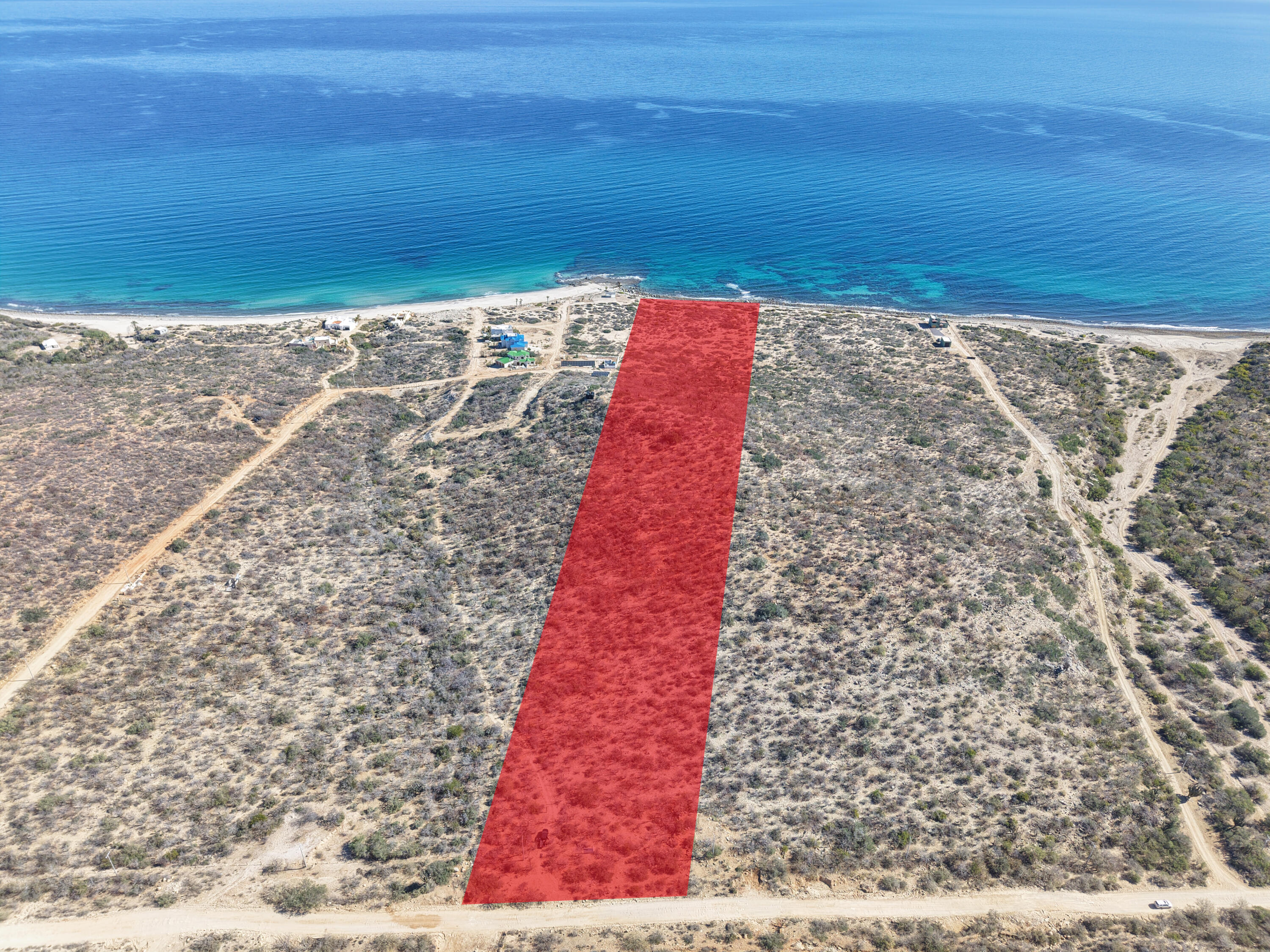 El Cardonal Beachfront Development Lot Exceptional beachfront parcel on Baja's East Cape offering 57,395 square meters (over 14 acres) with 100 meters of frontage along the Sea of Cortez. The property stretches from the access road to the beach, providing direct access with no other parcels to cross. Located less than a mile from the paved road coming from Los Barriles and just two minutes north of El Cardonal, this property sits in the path of growth as the East Cape continues expanding north. Electricity is available at the property line, municipal water is nearby, and private wells in the area indicate strong water potential. The gently rising terrain offers natural building sites with sweeping ocean views.