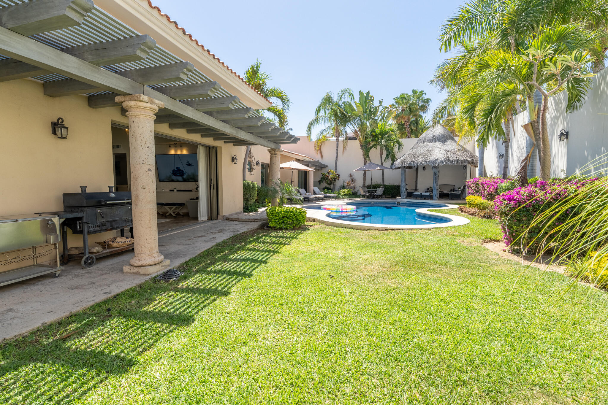 Exclusive single-level home for sale in Fonatur, ideal for families or retirees. Perfectly located next to the park and just minutes from the beach, golf courses, restaurants, and downtown San José del Cabo. This stunning residence features a spacious living area with double-height ceilings and abundant natural light, seamlessly connecting to an outdoor terrace complete with a barbecue area, covered lounge space, private garden, and swimming pool--perfect for entertaining or enjoying relaxed indoor-outdoor living. The property offers four generously sized bedrooms, each with its own closet, en-suite bathroom, and direct access to the garden, creating a perfect blend of comfort, privacy, and functionality.