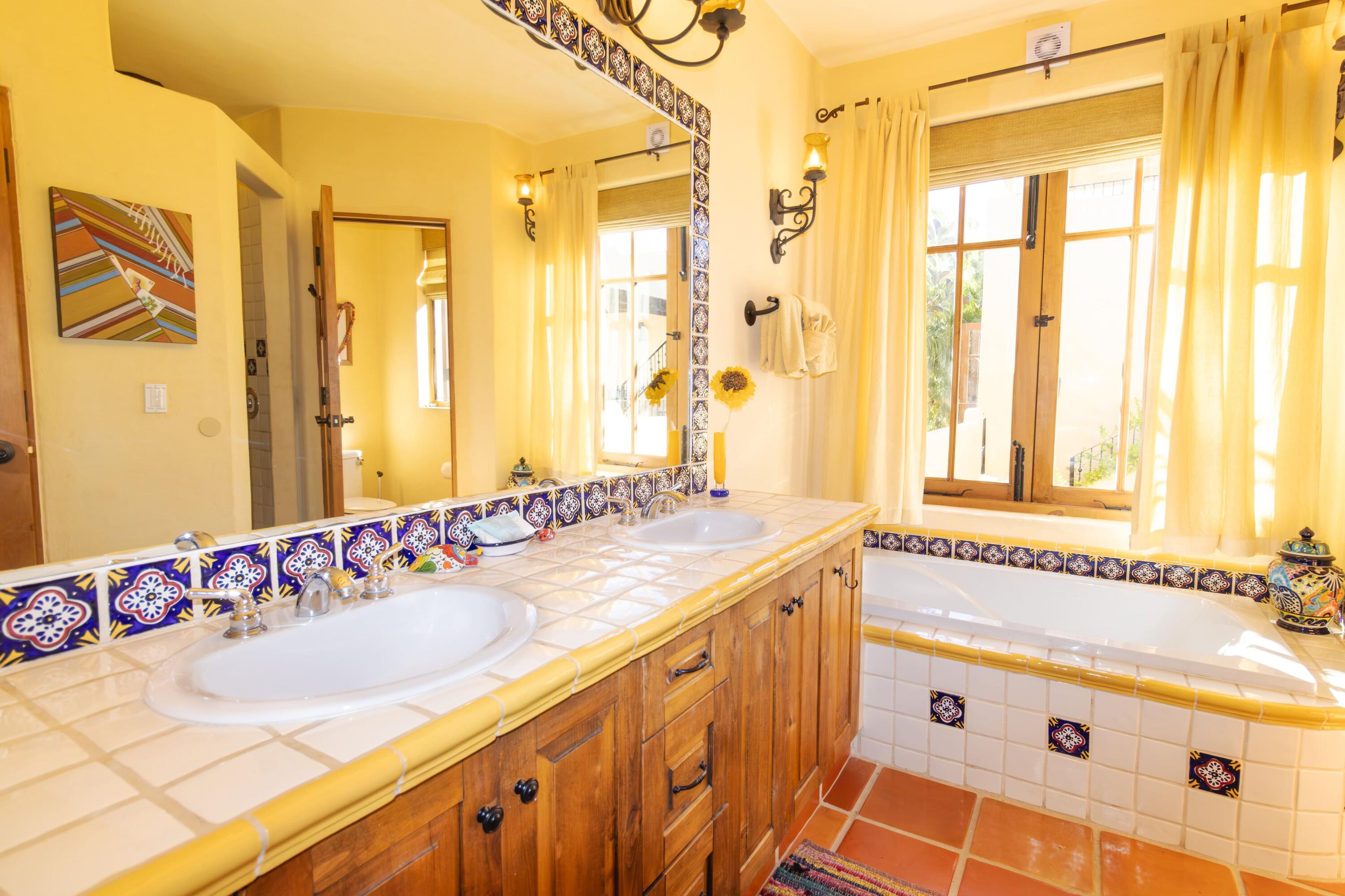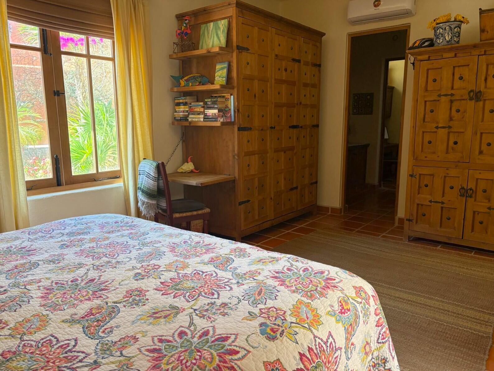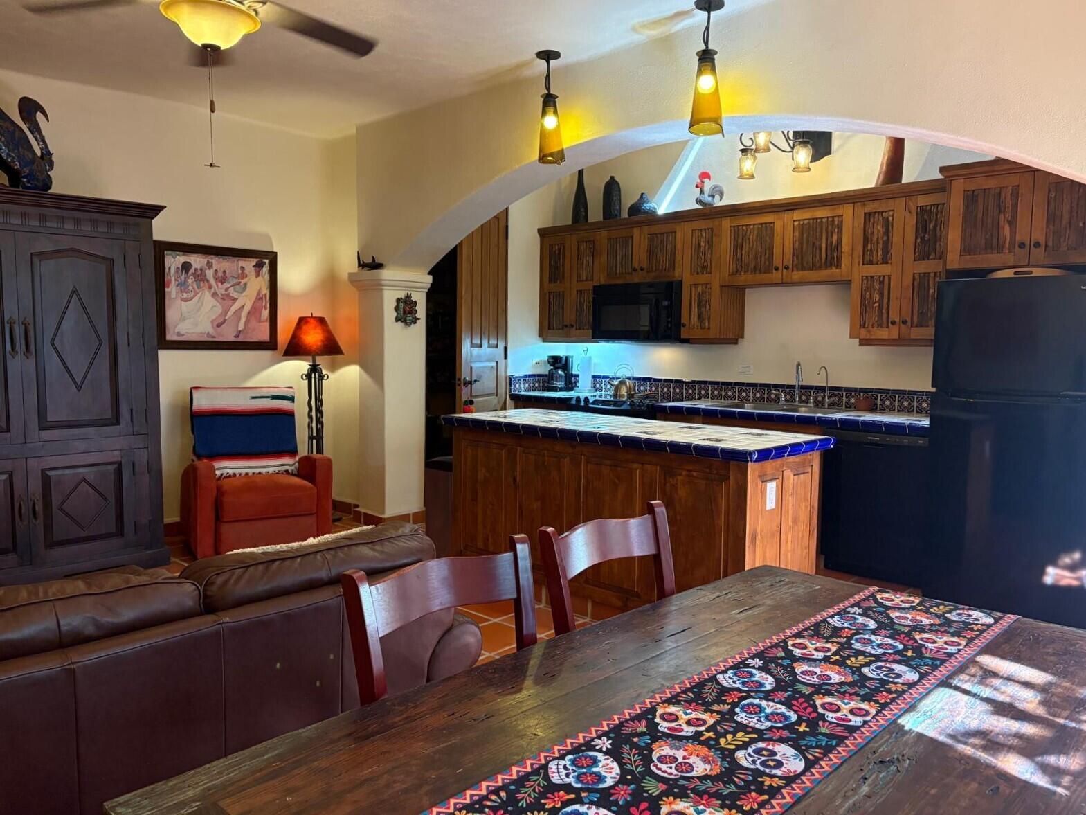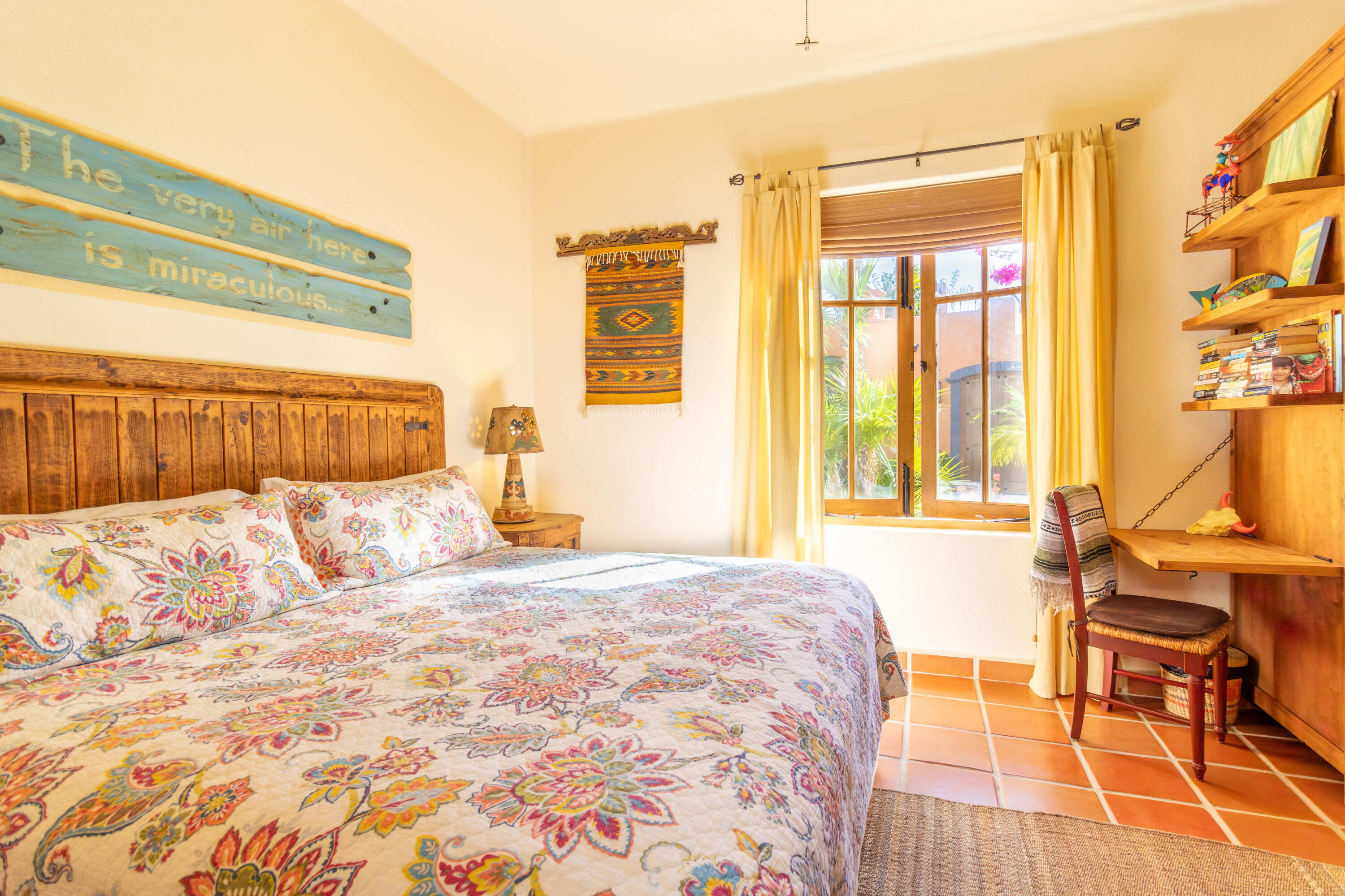 Welcome to FN 550, a vibrant Nueva Chica model ideally located on a corner lot in the beachside Founders area. Just steps from the lap pool and a short stroll to the beach, this home blends comfort with coastal charm. A covered entry, custom fishing gear cabinetry, and a bougainvillea-wrapped pergola welcome you in. The open-concept kitchen and dining area lead to a full bath and first-floor bedroom. Upstairs, enjoy a pergola-covered terrace perfect for grilling or relaxing, plus a spacious ensuite bedroom with Juliet balcony overlooking a fountain courtyard. A stone staircase leads to a tower viewing area with built-in seating and stunning sea and mountain views. Residents enjoy pools, golf, tennis, cafés, boutiques, 24/7 security, and easy access to Loreto town and the airpor