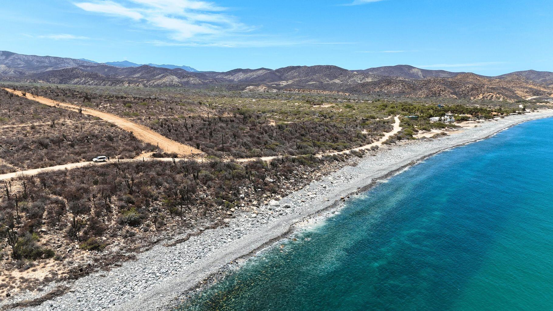 Las Conchas Lot (Fracción B) is an expansive 1,680 M² residential property in Vista Antigua, strategically located ''sixth from the beach'' for superior elevation. This large, gently sloping lot offers panoramic Ocean and Mountain views. Situated 4 miles north of Los Barriles, it is perfect for a tranquil retreat near secluded rocky and sandy beaches. Seller financing is available, providing a unique opportunity to build a private sanctuary with a clear Escritura title.