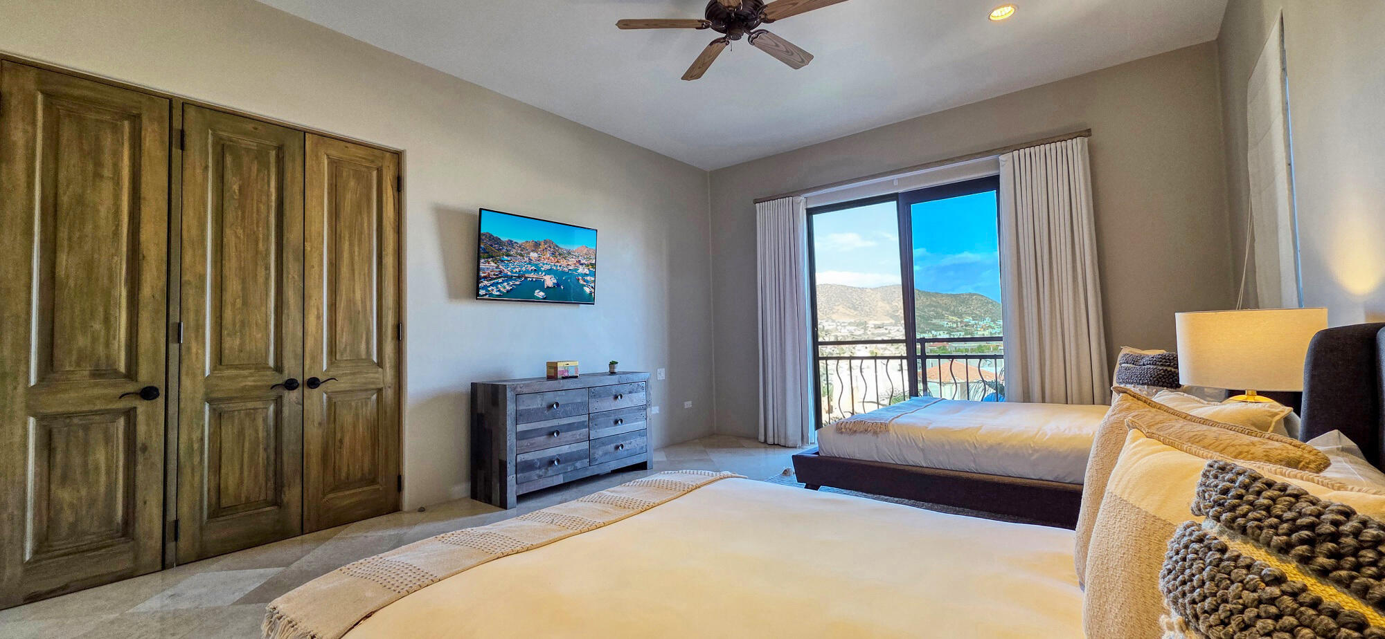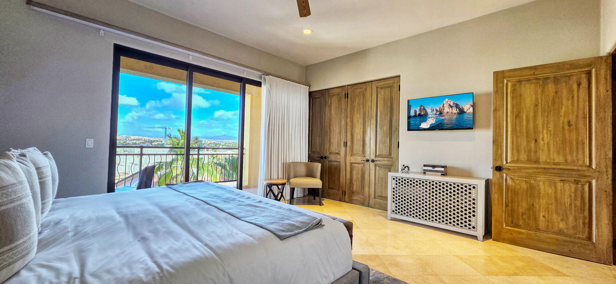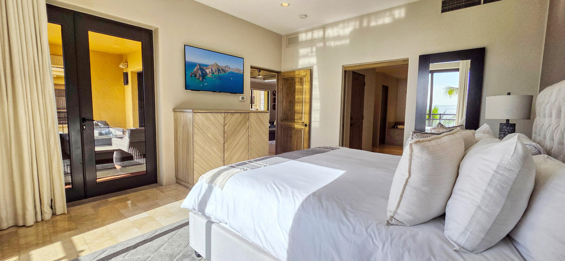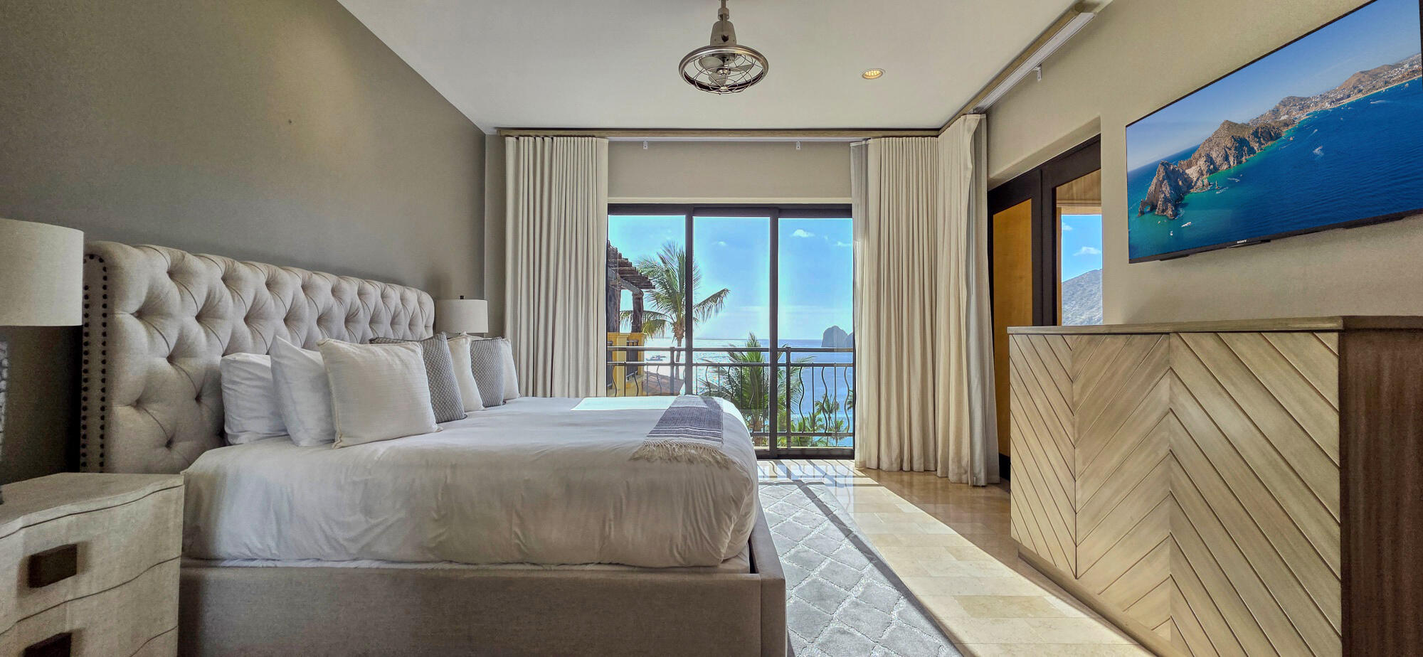 Located within the exclusive Hacienda Beach Club & Private Residences on the shores of Medano Beach, this stunning residence features 3 spacious en-suite bedrooms and offers breathtaking views of the Sea of Cortez and the iconic Land's End. Designed for seamless indoor-outdoor living, the open floor plan flows onto expansive terraces perfect for entertaining or relaxing while enjoying Cabo's spectacular sunrises and sunsets. Fully furnished and beautifully appointed, the home features spacious living areas, a modern kitchen, and elegant finishes throughout. Ideally located just steps from the marina, downtown Cabo, fine dining and a vibrant nightlife. Residents enjoy access to world-class amenities including a beach club, swimmable beach, saltwater pools, full-service spa, fitness center