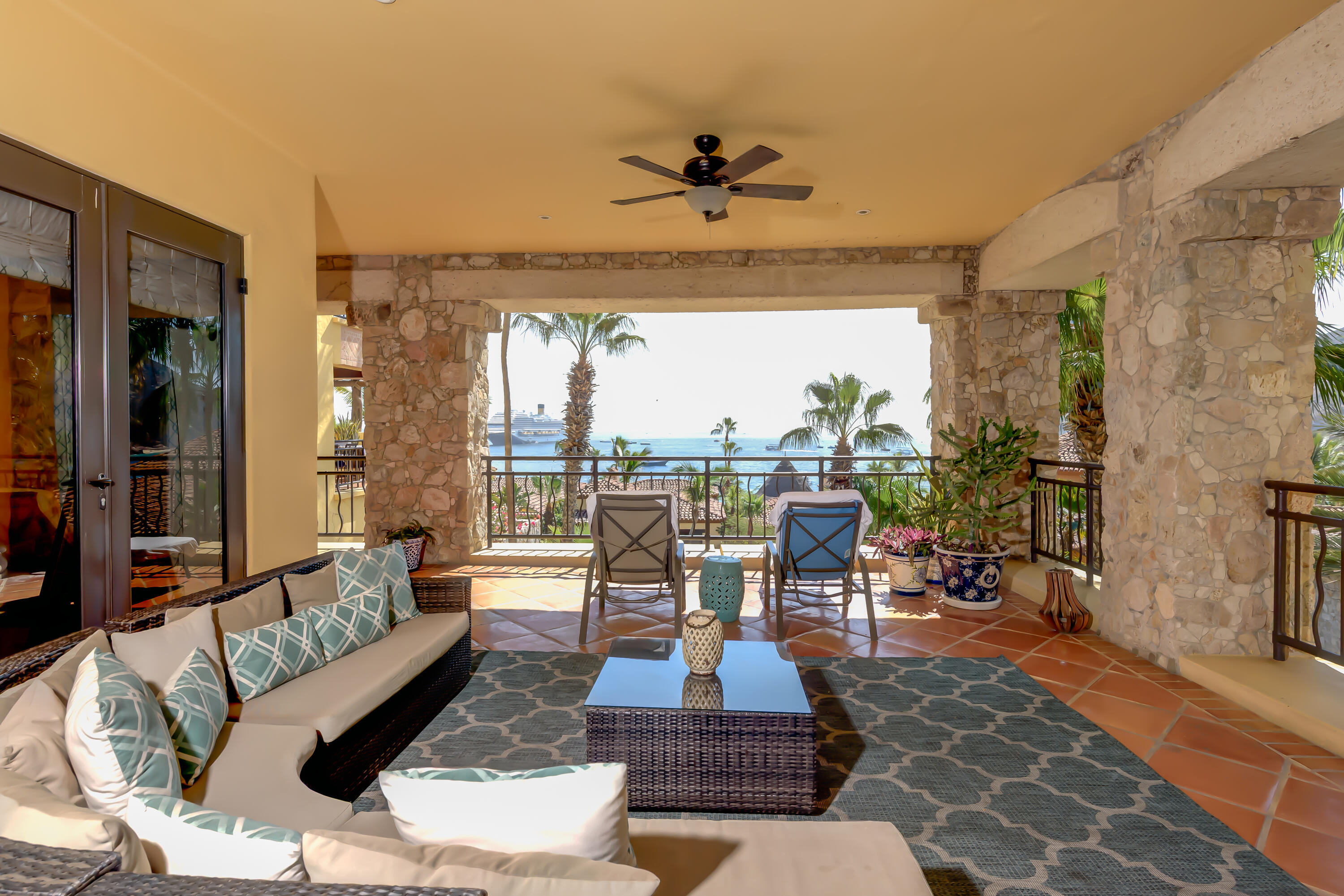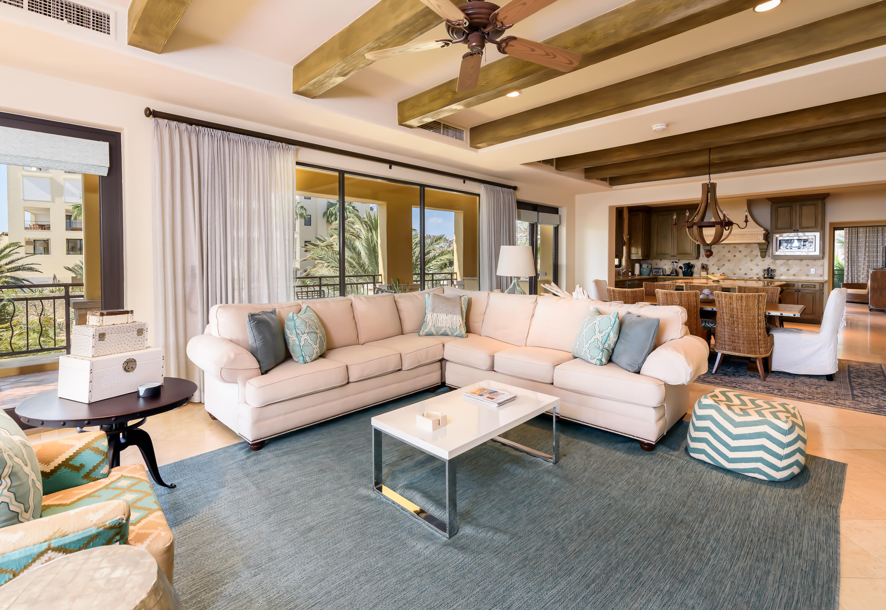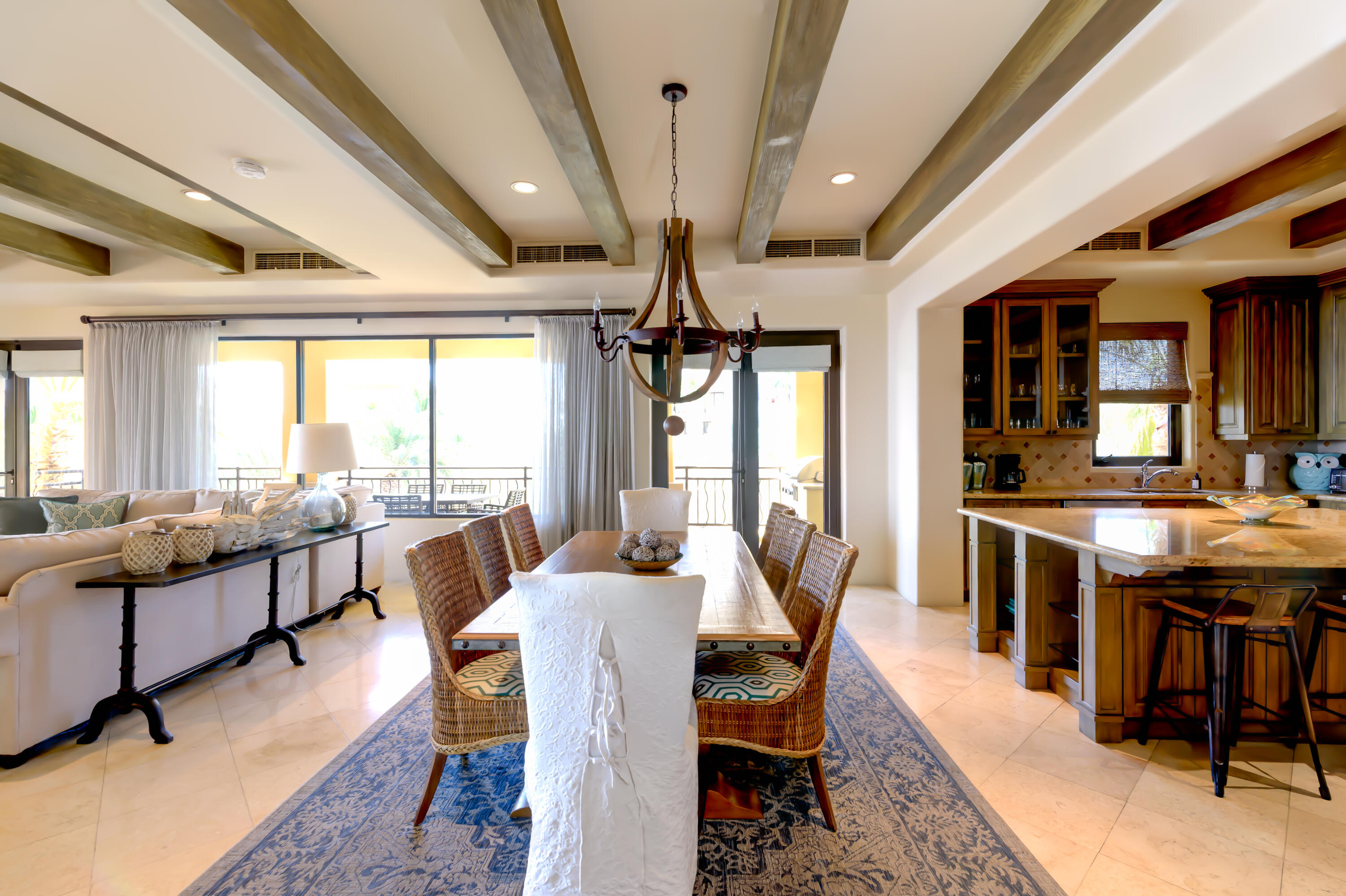 Prime corner unit in Building 5 -- Hacienda Beach Club's most coveted location, steps from the beach club, spa & gym. This stunning 3-bedroom residence offers wraparound natural light, soaring wood-beamed ceilings, a chef's kitchen with granite island, and an open-concept living area with warm, resort-style finishes throughout. Enjoy front-row access to the iconic infinity pool overlooking the Sea of Cortez, lush tropical grounds, and Cabo's famous arch all from one of the community's most connected addresses. Priced as one of the top three 3BR values in all of Hacienda, and a proven rental performer with a loyal guest following. Whether you're seeking a full-time retreat, a vacation escape, or a smart addition to your portfolio this is your entry point into one of Los Cabos' top addresses