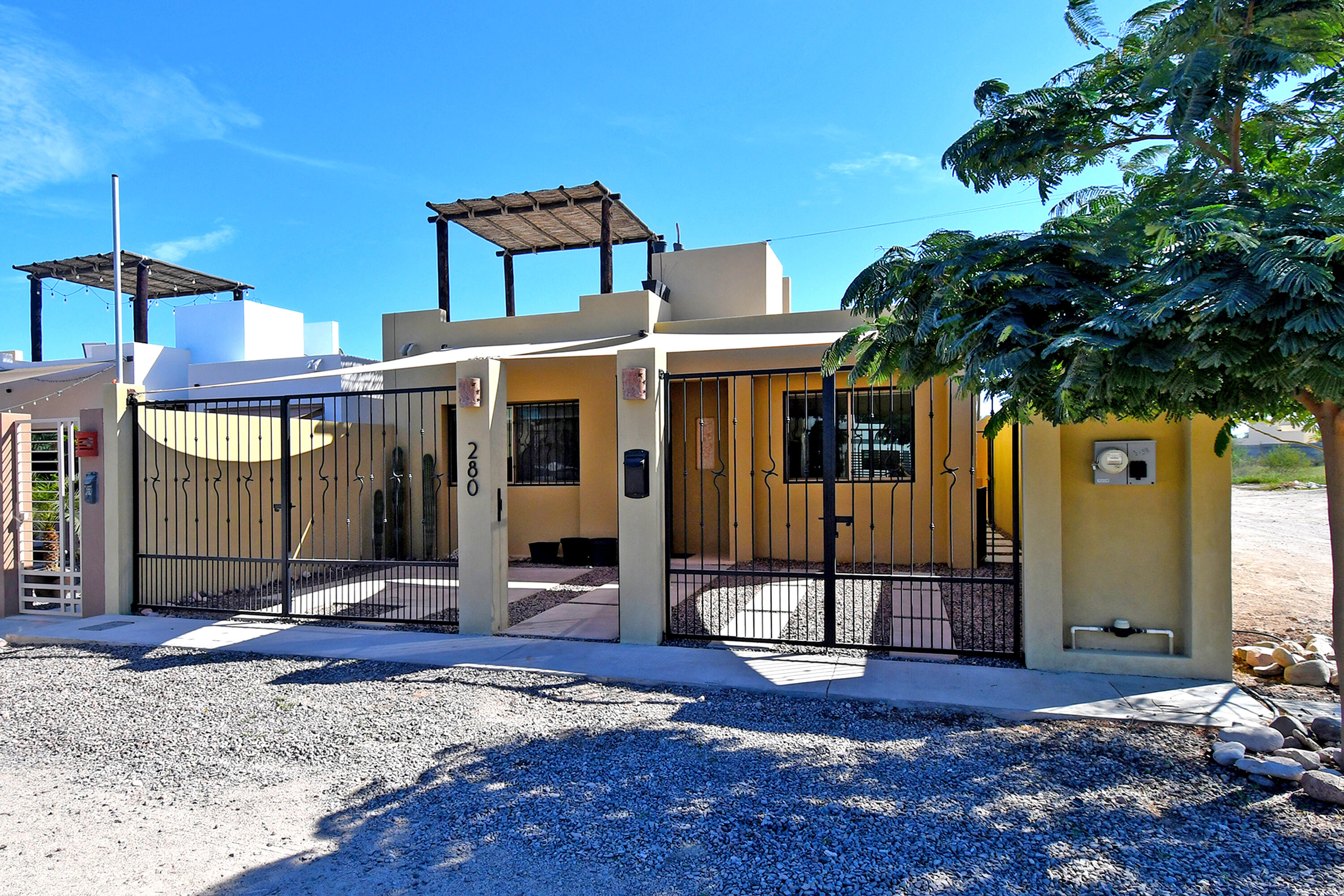 Casa M&M is a charming 2-bedroom, 2-bath home located in the desirable community of El Centenario. This residence offers solid construction, a practical layout, and comfortable spaces designed for easy Baja living, both bedrooms are generously sized with ample storage and direct access to the backyard, enhancing the indoor-outdoor feel. The fully walled with gated parking, offering privacy and security, and a rooftop terrace with beautiful mountain and ocean views, perfect for relaxing mornings or sunset evenings. Situated just 10 minutes from shopping, cinemas, and services, and 25 minutes from La Paz's iconic malecón. Casa M&M stands out as an excellent value in a prime location, ideal as a full-time residence, vacation getaway, or investment opportunity.