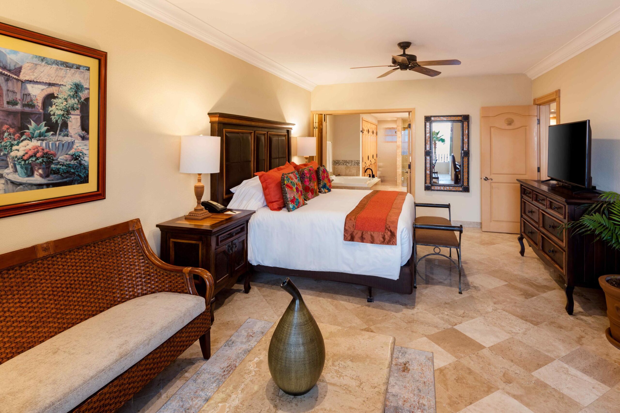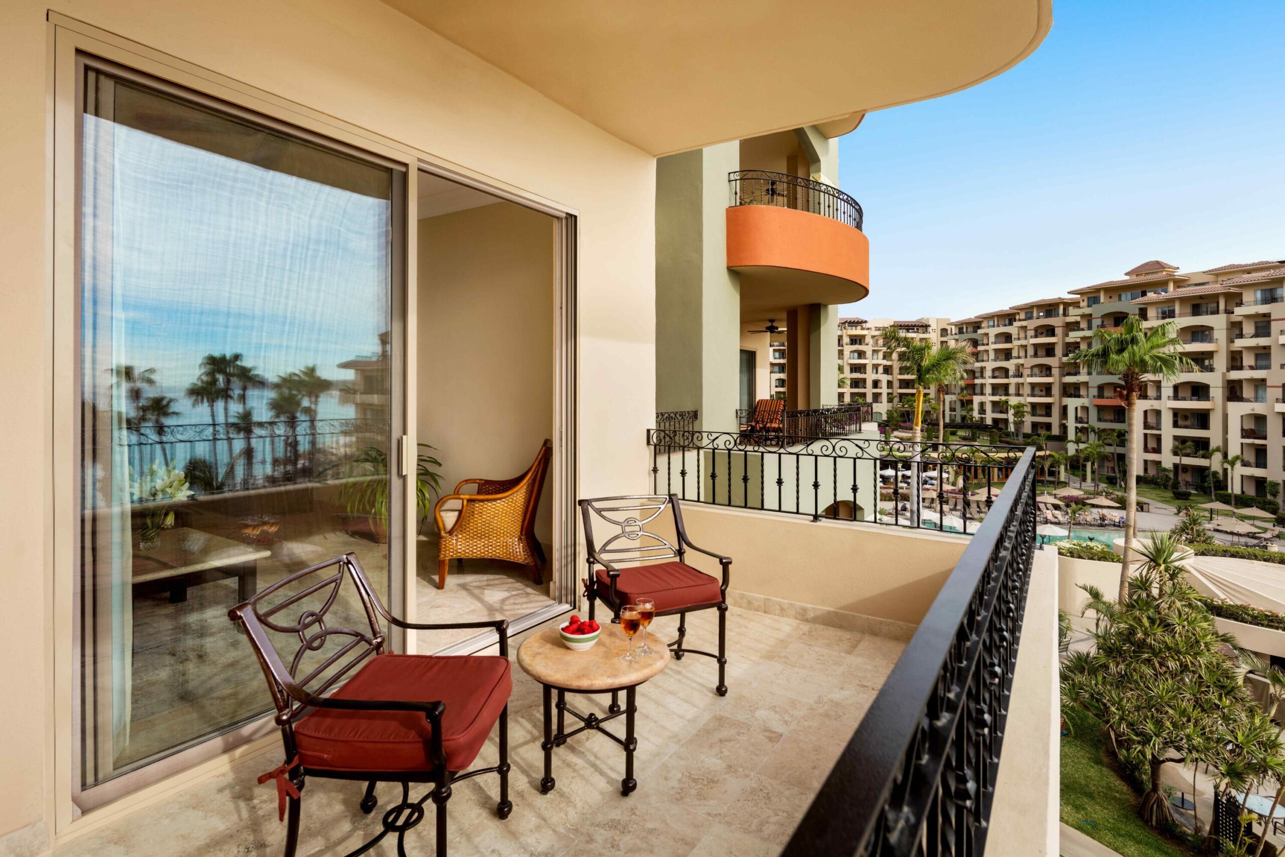Located on the fourth floor of Villa La Estancia's exclusive third phase, Villa 3402 Fraction 1 presents a unique opportunity for fractional ownership, shared between four owners with rotating seasonal usage. Offering 2,754 SF of total living space—including 2,130 SF indoors and a 634 SF ocean-view terrace—this three-bedroom, four-bathroom villa provides a luxurious retreat and a smart investment for buyers seeking both personal enjoyment and rental potential. Each room in Villa 3402 is thoughtfully positioned to maximize unobstructed ocean views, creating a tranquil living experience. The beachfront primary suite includes a king-sized bed, dual vanities, a beachfront jetted tub, and direct access to the expansive balcony,
