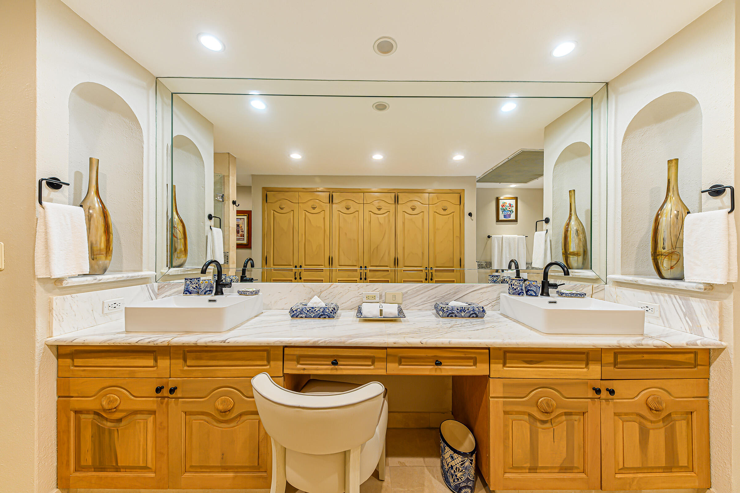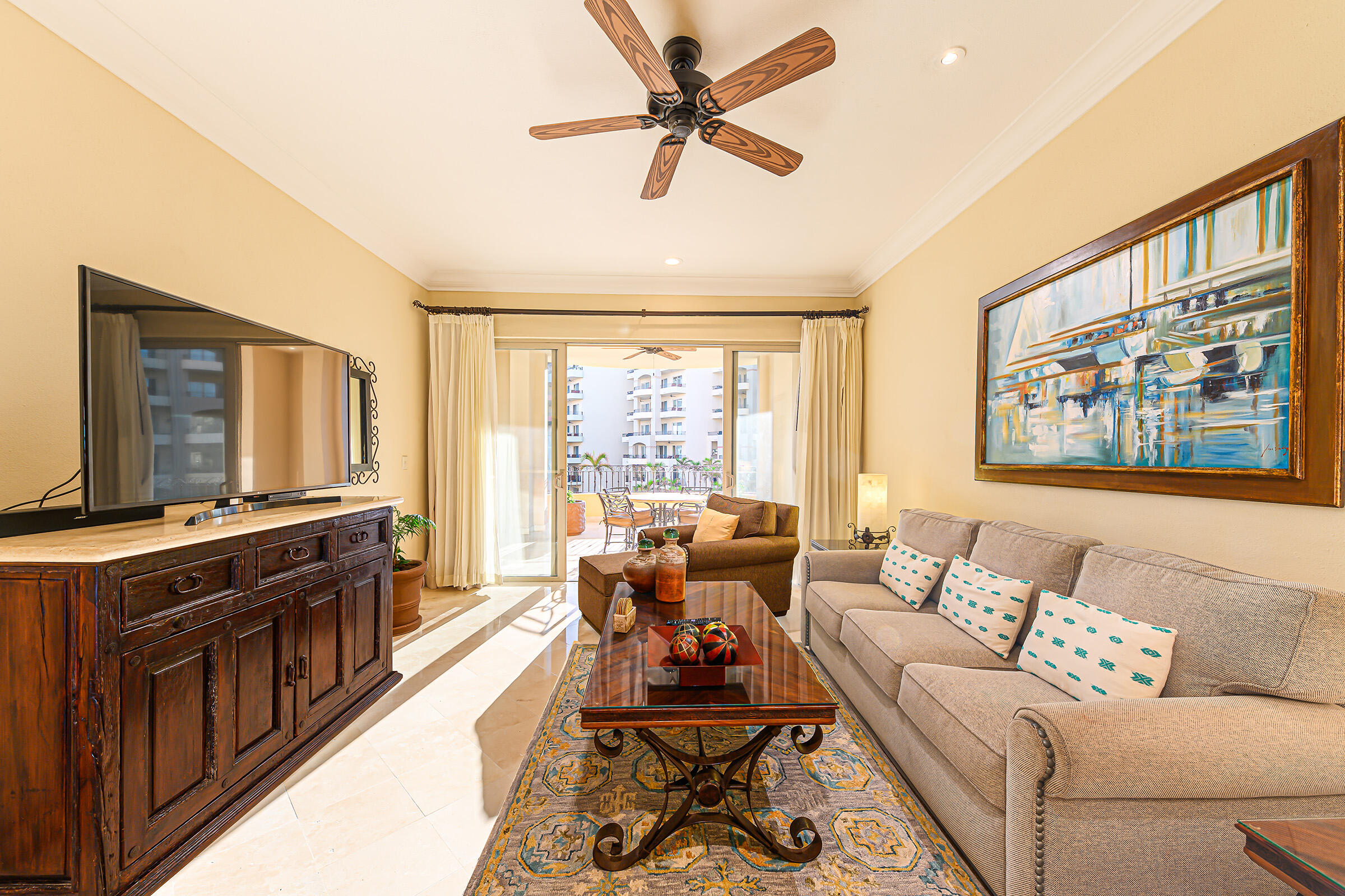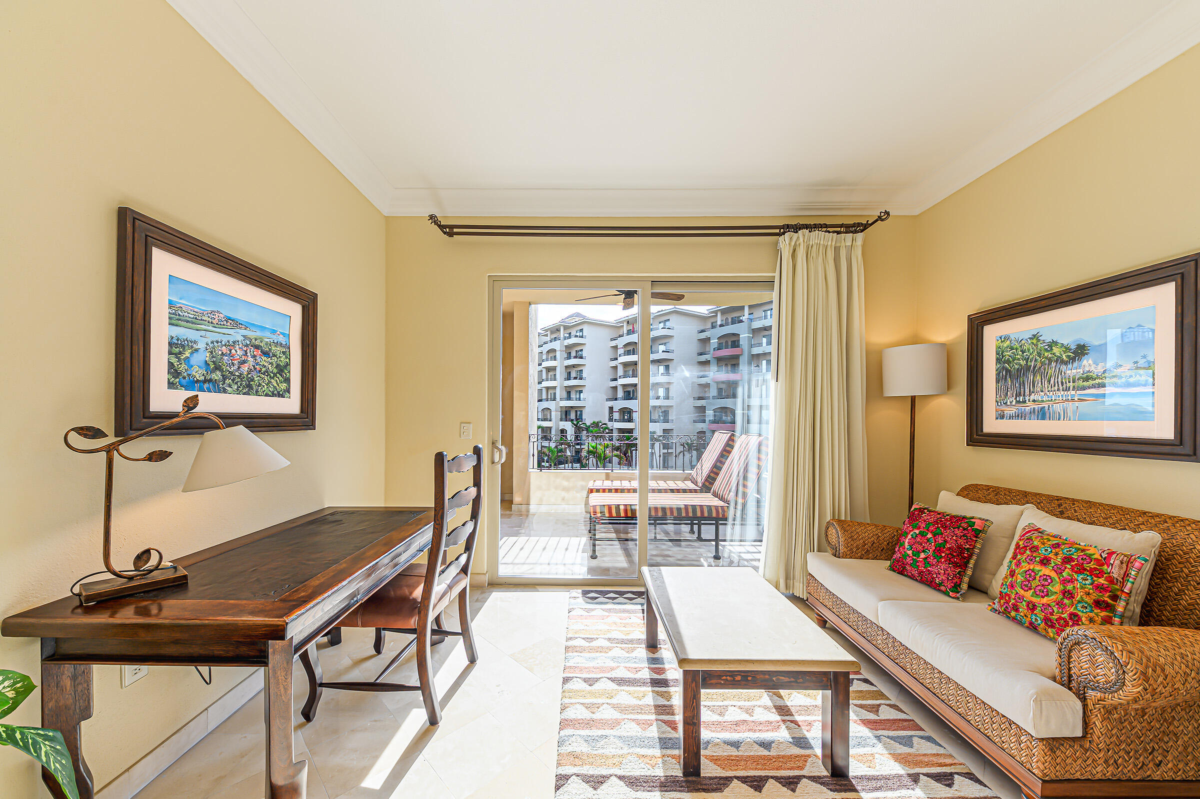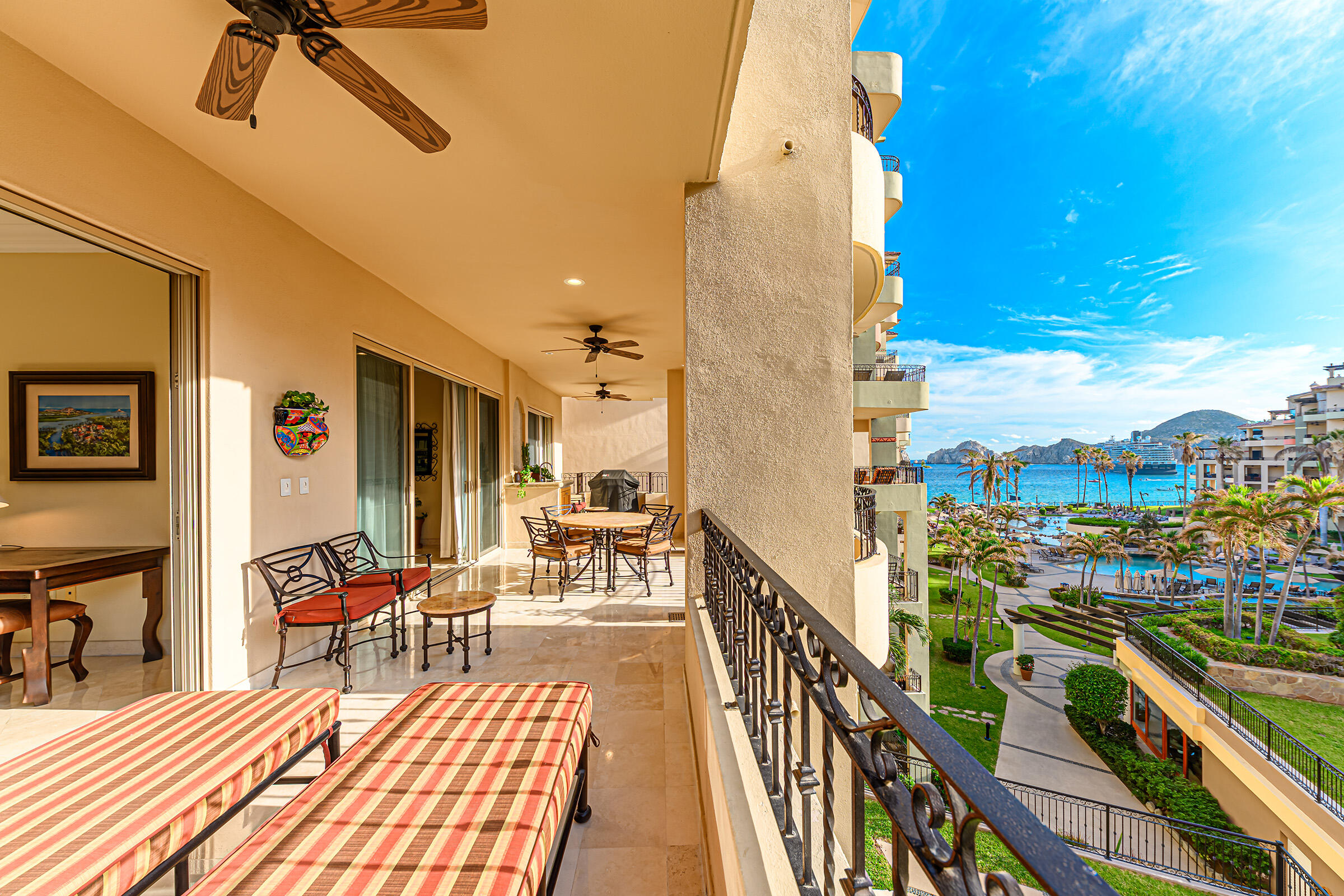 Experience Villa La Estancia 1407, offering vast views of the resort, ocean, and Land's End. Situated in the first phase, this two-bedroom, three-bathroom fractional unit on the fourth floor accommodates up to eight guests comfortably. The adorned villa boasts a well-appointed kitchen with exquisite granite countertops and a spacious breakfast bar. The open-concept living and dining area provide ample room for entertaining and unwinding after a spectacular day of adventures in Cabo. Retreat to the master bedroom, furnished with a king-sized bed and a luxurious jetted tub in the en suite bathroom. Indulge in relaxation with a soak in the tub or a refreshing stand-up shower. The second bedroom offers two queen beds and its own private bathroom.