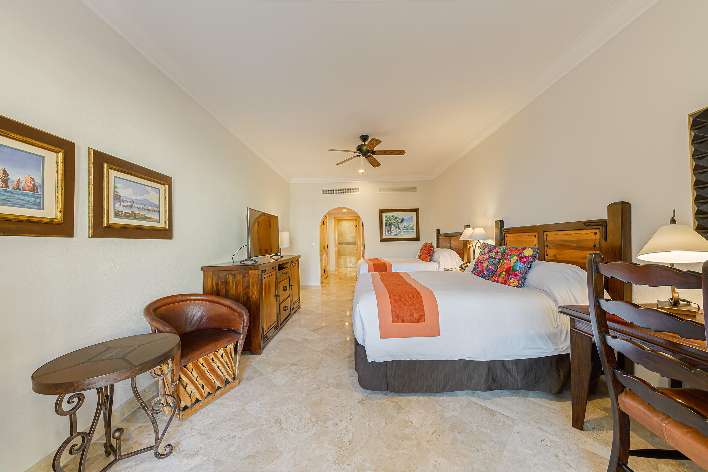 Located on the second floor of the beachfront resort Villa La Estancia, this furnished two-bedroom, three-bathroom fractional ownership offers a total of 2,162.76 square feet, including 484.20 square feet of private patio space. Positioned just seven units back from the ocean, the villa provides a combination of ocean and pool views from its spacious terrace. The interior features marble flooring throughout and includes a full kitchen equipped with a dishwasher, electric range, refrigerator, microwave, disposal, and ice maker. Additional in-unit conveniences include a washer, ceiling fans, and window-type air conditioning units. The villa also offers a private bar area, BBQ setup, and designated storage.