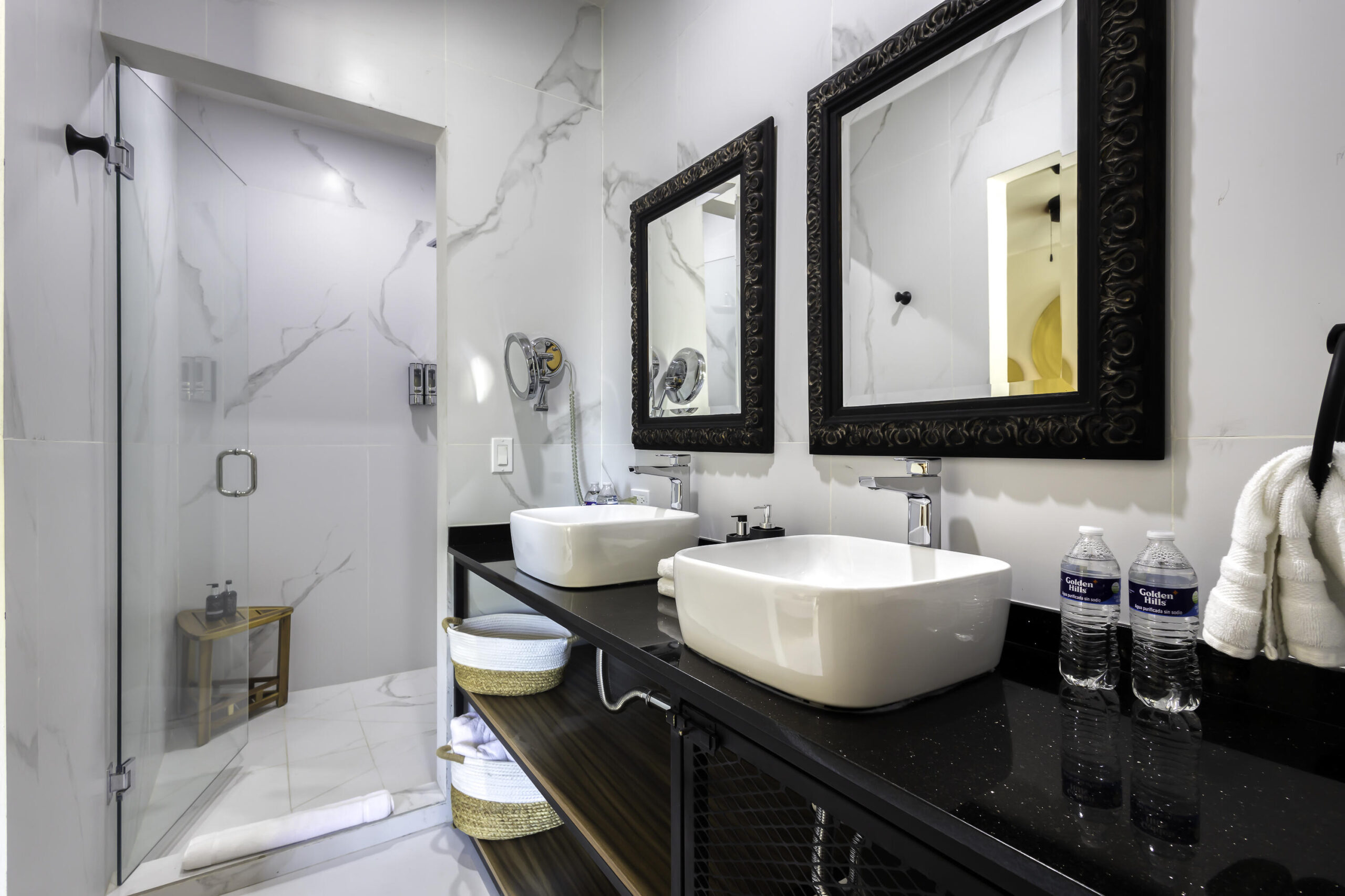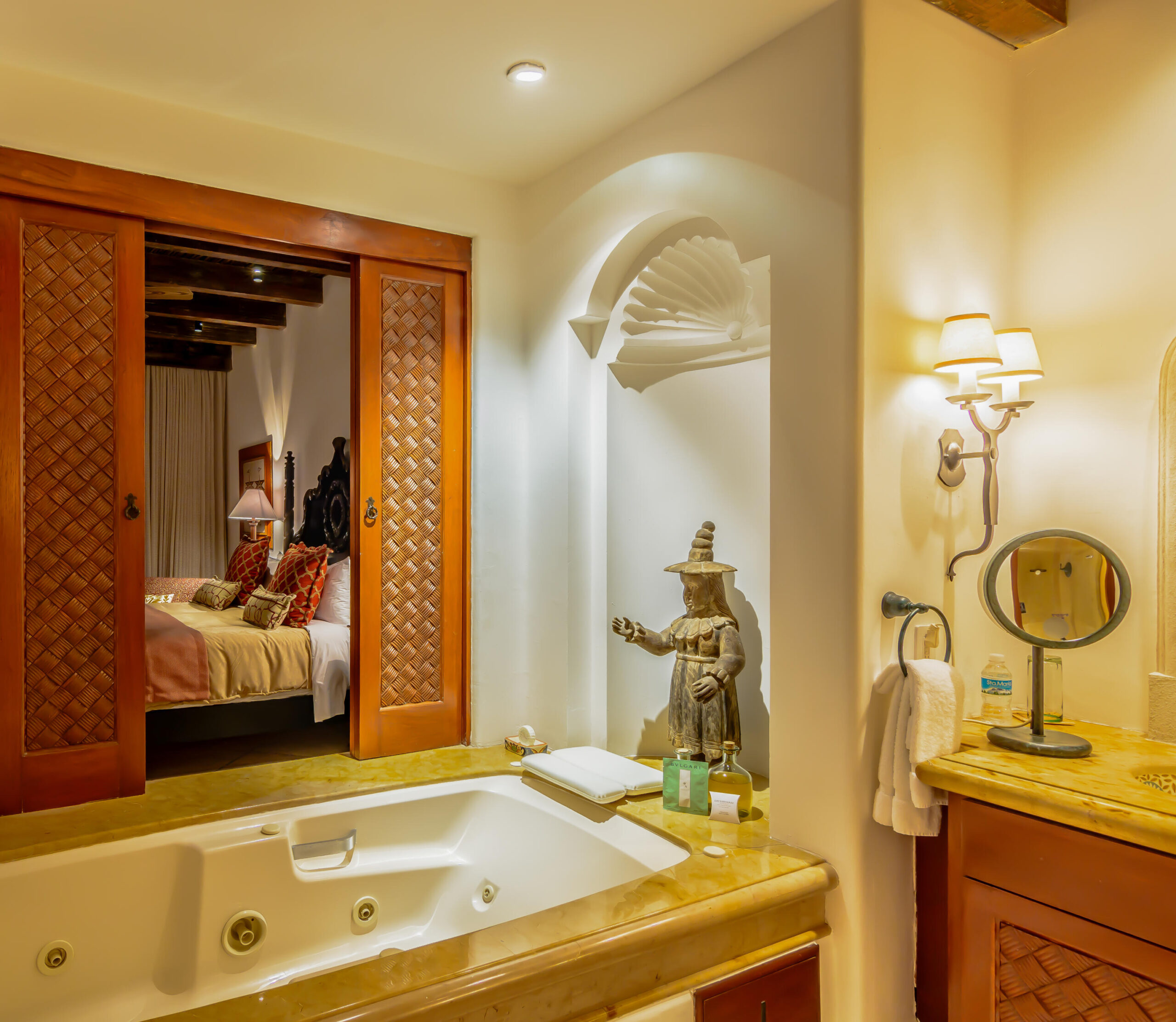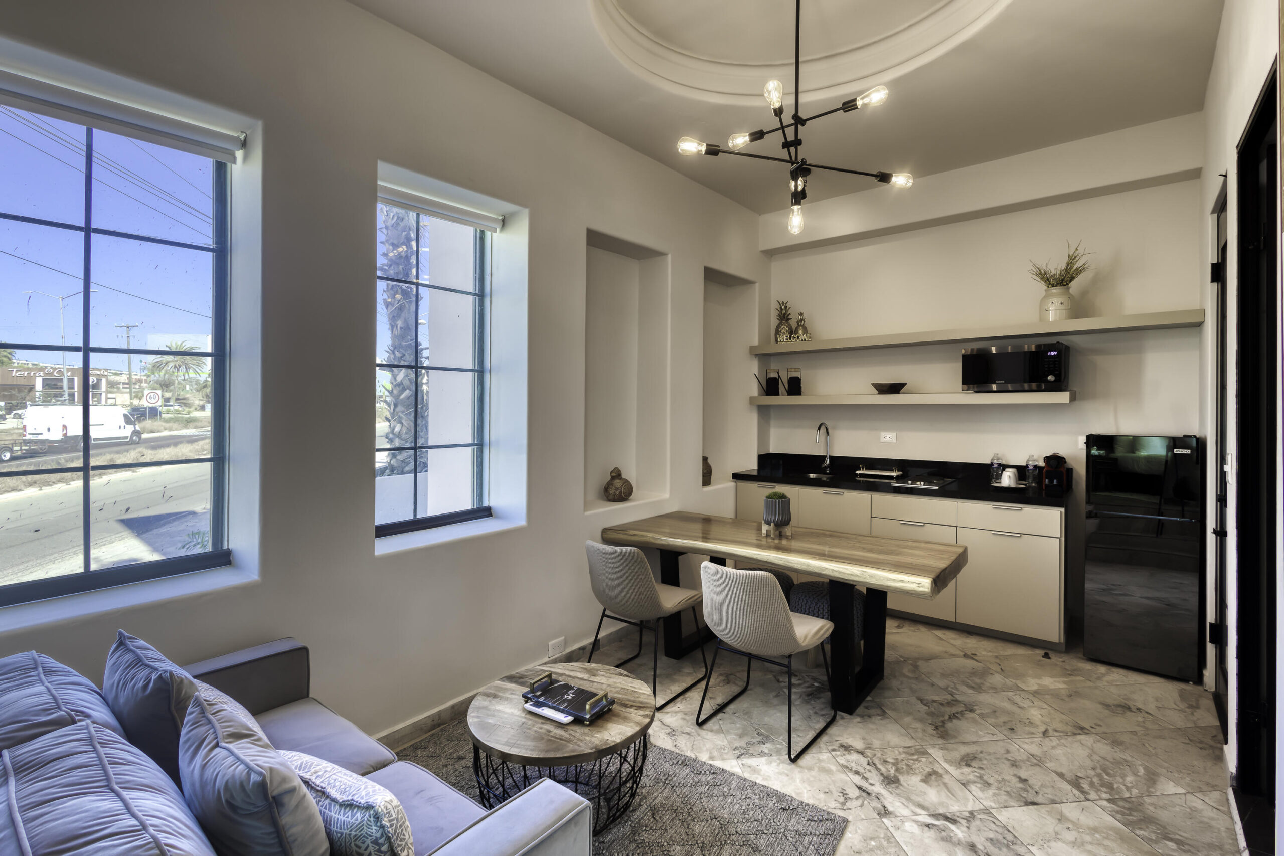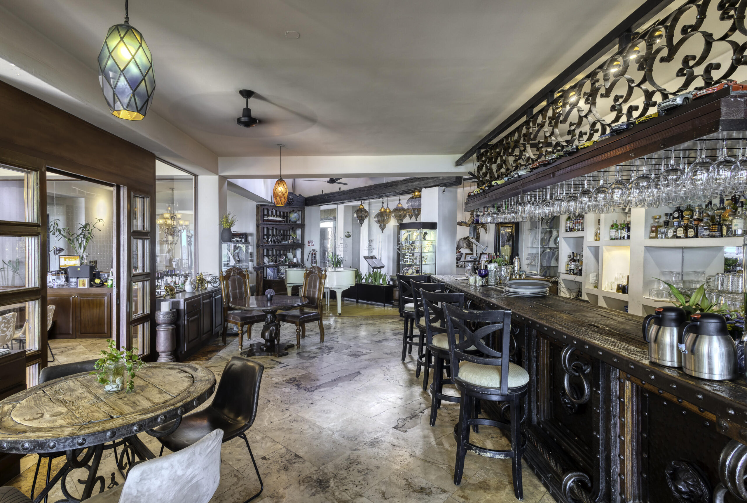 Puerta Vieja Boutique Hotel, Restaurant and Event location is perfectly positioned with sweeping views of Medano Bay and the famed Los Arcos arch. Step inside the antique Indian doors and leave the hustle and bustle of Cabo behind. The charming Hacienda style lobby with hotel check-in has an open atrium and an 80 pax restaurant and piano bar (white grand) with private tequila tasting room that greets you with the spectacular and unique jaw dropping views. Main floor has 4 rooms, 3 king suites and one double. Event capacity is 150. Second floor features 9 rooms and the pool deck. 1 double suite and 8 king suites one is a self-contained apartment. Third floor is a restaurant bar and patio with ocean views. 4th floor view terrace with bar to be completed Q2.