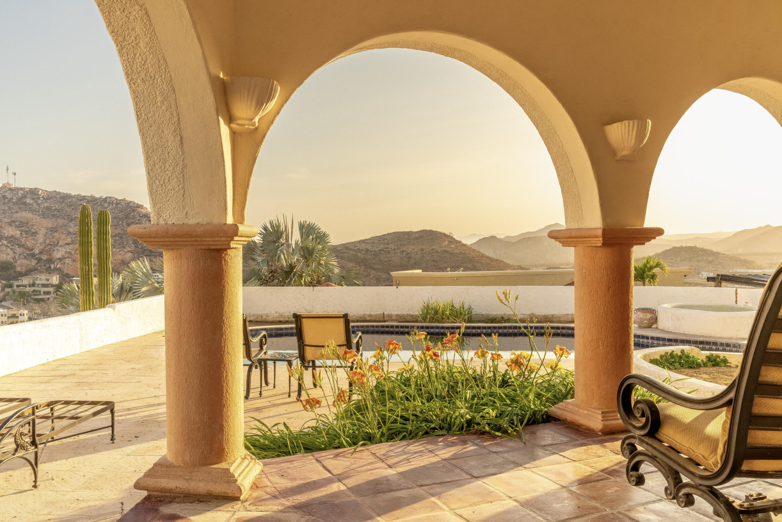 Located at the highest point of Rancho Cerro Colorado, this four-bedroom, four-and-a-half-bathroom residence blends old-world charm with coastal sophistication. Filled with natural light and ocean views, it features soaring ceilings, authentic brick fireplaces, and refined finishes throughout. Seamless indoor-outdoor living with a private pool, shaded pergola, cultivated garden, and rooftop terrace with spa and panoramic views. Situated in a gated community with 24-hour security and direct access to Palmilla Sur Beach.