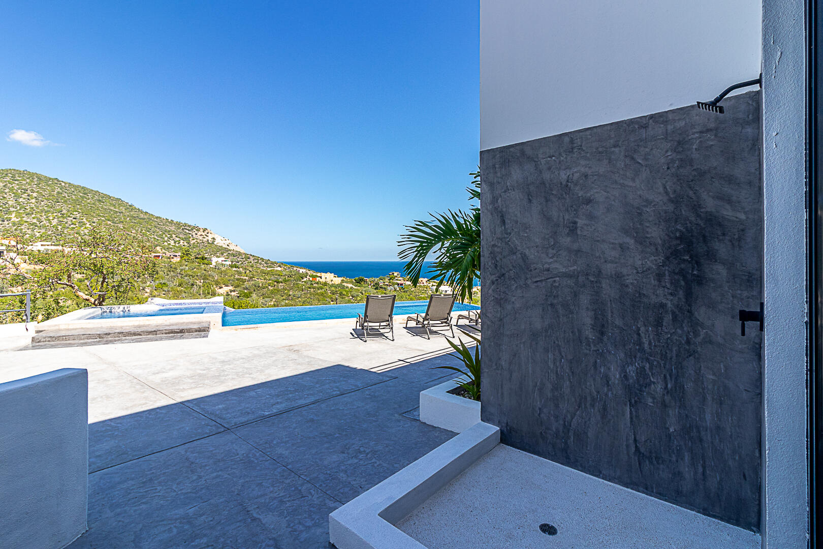Highland House offers a premier customizable opportunity to finish a luxury home to your exacting standards, perfectly situated for breathtaking Sea of Cortez views. This modern residence features a finished one-bedroom casita for immediate use, alongside a substantial, unfinished three-bedroom main house. The exterior is complete with a stunning infinity-edge pool, spa, and fire pit lounge. The main house boasts an open-concept design and a concrete structural core ready for personalized finishes, promising a high-value personal retreat or prime investment property in the desirable Los Barriles area.