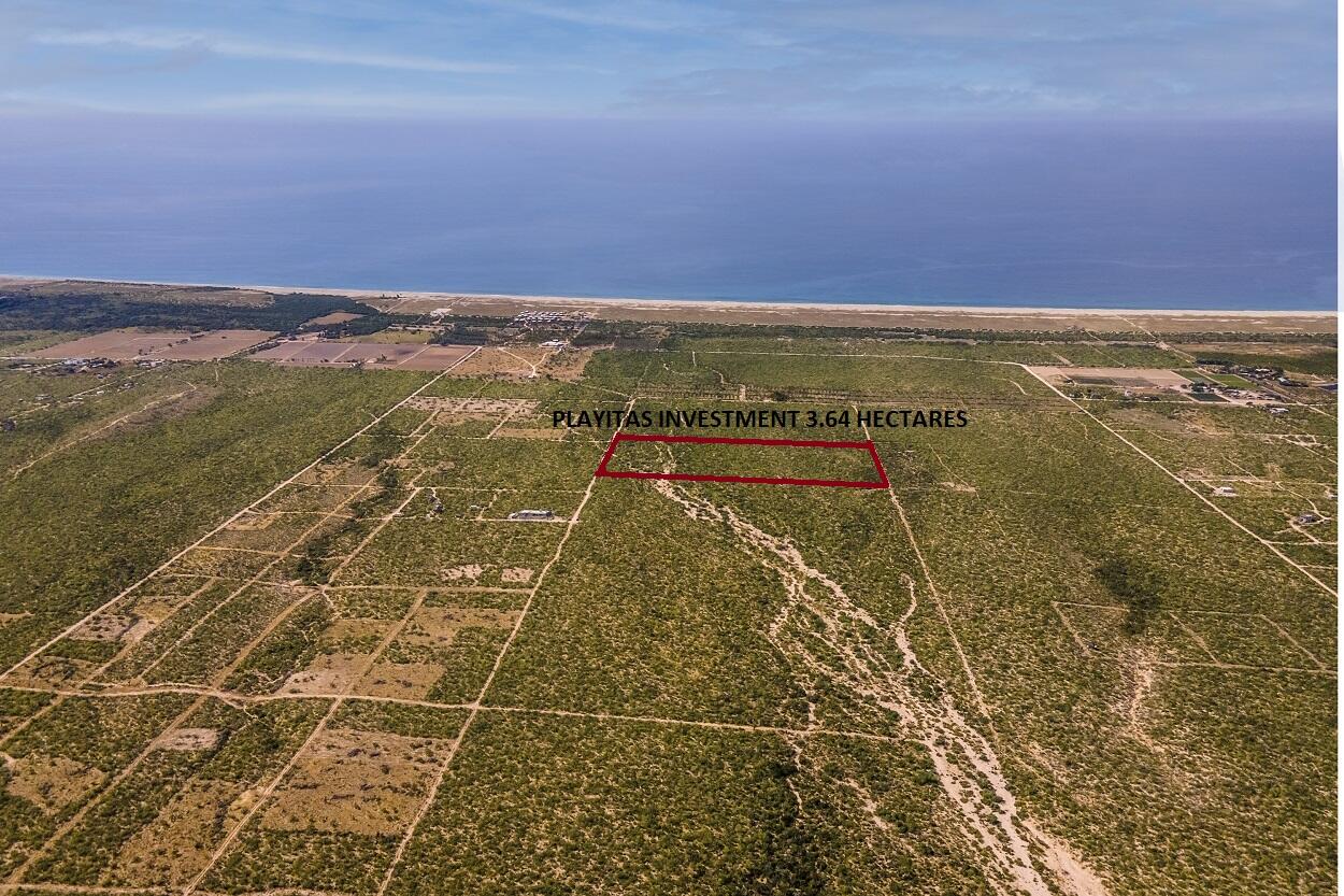 Unbeatable 3.64 Hectare Investment Land in Playitas with Panoramic Ocean Views Introducing an expansive and unparalleled 3.64 Hectare parcel of gentle sloping land in the desirable Playitas area, perfect for visionary developers or a private, sprawling family estate. The property boasts stunning, panoramic ocean views and captivating nighttime vistas of the lights of Todos Santos (just 10km to the south). Access is close and convenient directly from Las Playitas Road. This prime location places you only a five-minute drive from the world-renowned La Pastora Surf Break and the acclaimed dining at The Green Room at Villa Santa Cruz. Priced for an unmatched value, this acreage is ideal for creating a grand family compound. It also presents a strategic investment opportunity: