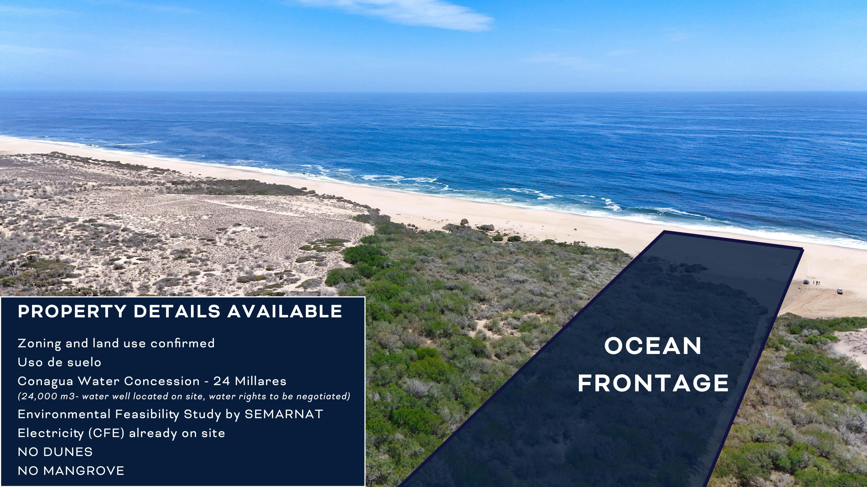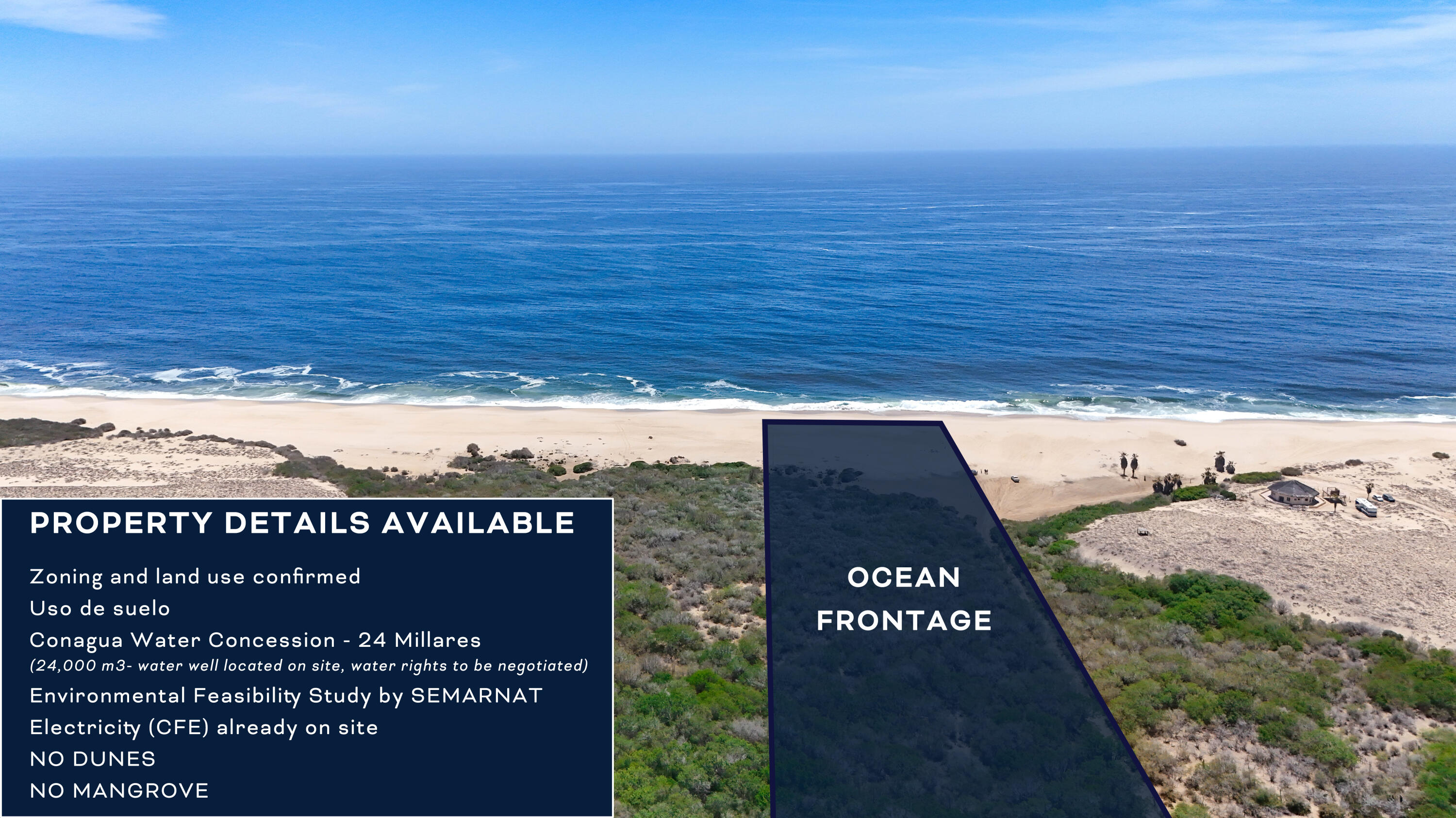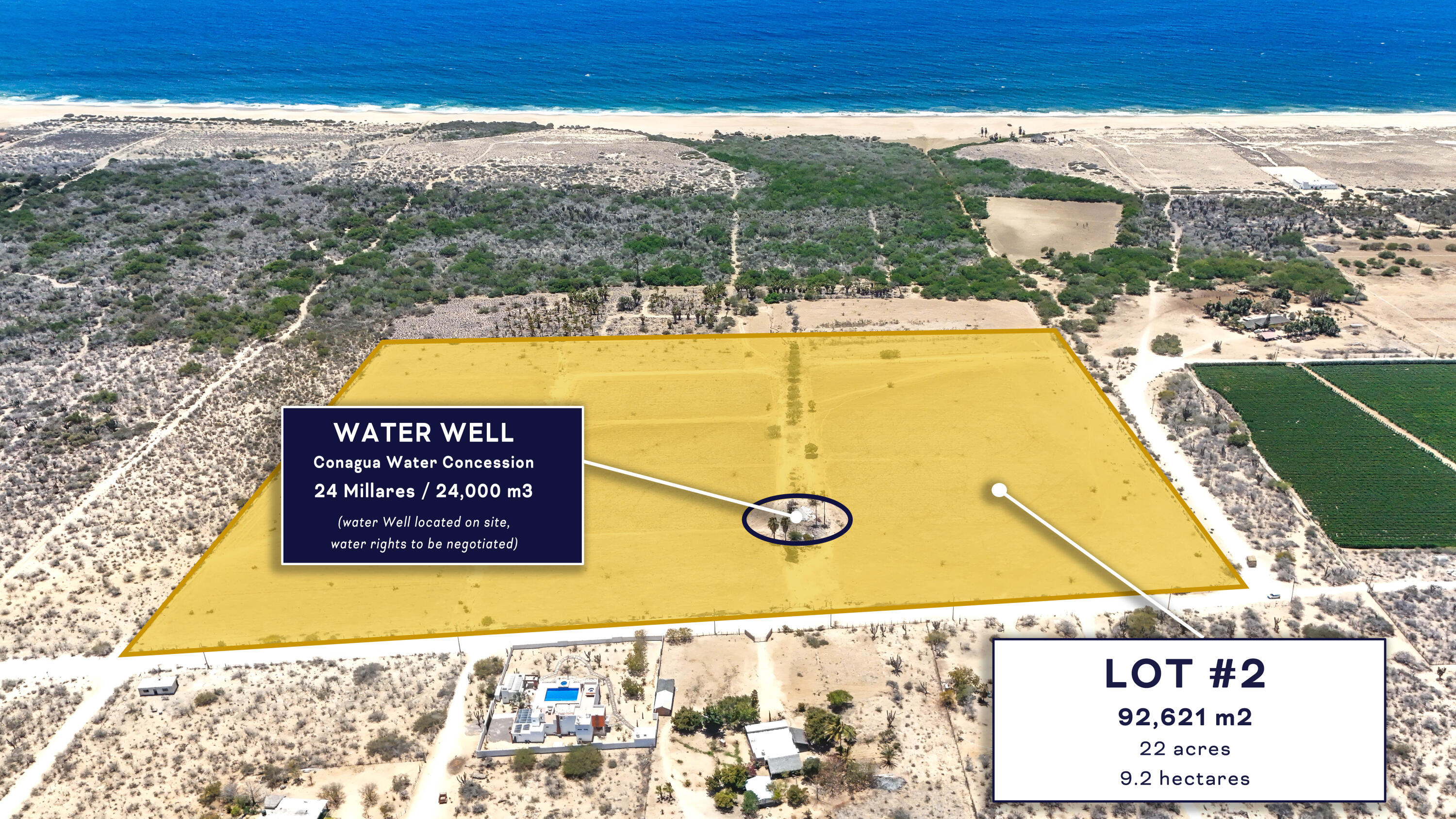 OWNER FINANCING!! Development Lot - 9.2 Hectares with Infrastructure in Todos Santos. With a total area of 92,621 m² (22 acres / 9.2 hectares), this property offers an exceptional opportunity for developers and investors looking to establish themselves in one of the fastest-growing regions of Baja California Sur. This is a rare offering--one of the few oceanfront parcels available with NO DUNES and NO MANGROVES, allowing for maximum buildable potential. The land features a gentle slope that provides excellent view opportunities, making it ideal for development or agricultural use such as farm-to-table or boutique farming concepts.