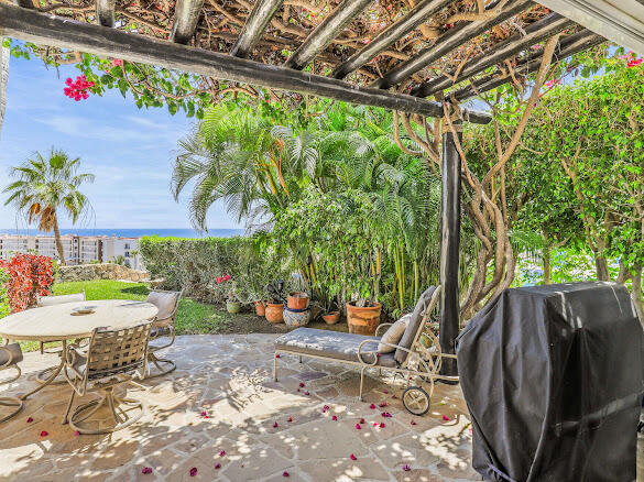 O-102 offers a PRIME LOCATION from this OCEAN VIEW- POOLSIDE,1BD/1BA 1050.18 sq ft. condo. 1st FLOOR, NO STAIRS, PRIVATE end unit with lush landscaped yard. Open interior with renovated kitchen & bath. Hurricane shutters. OCEANVIEWS of the coastline to Punta Gorda. Enjoy the sunrise from the patio. Pets are welcome! One of San Jose´s finest gated communities, Lomas de la Jolla is low density, 52 condos divided into 8 buildings perched above the Sea of Cortez. Homeowners enjoy a large heated swimming pool w/shade umbrellas & lounge chairs. This is the perfect place for a vacation or investment property or a full time residence. Close to shopping, groceries, restaurants, the beaches, the historic town of San Jose del Cabo, the PLC marina, 20 min to Cabo & Airport. A MUST SEE PROPERTY!