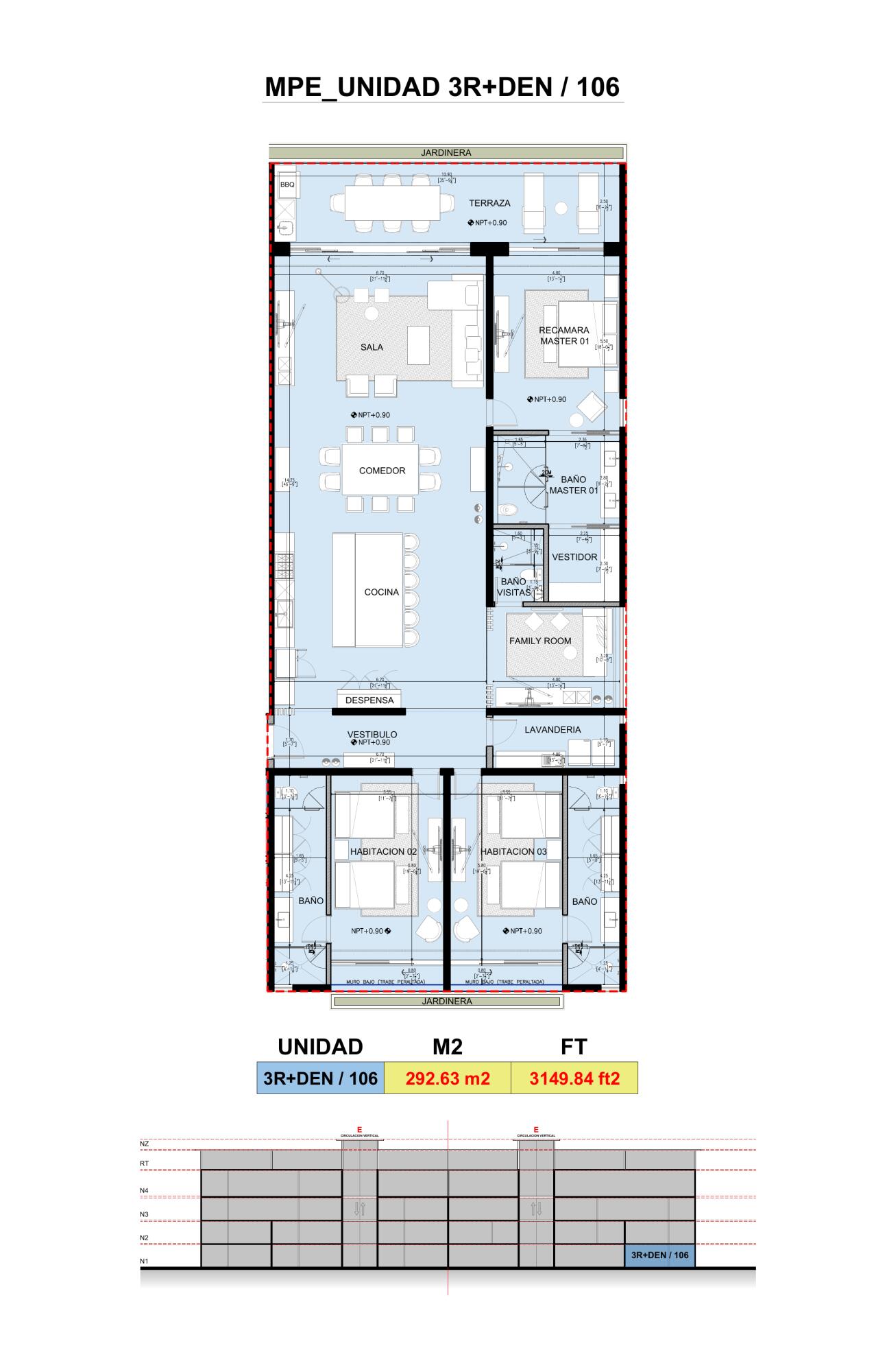 Introducing Unit 106 at Tatamichín, a luxurious ground-floor residence offering three bedrooms, a versatile den, and three and a half bathrooms within Marina Puerto Escondido's flagship condominium development. With 292.63 square meters (3,149.84 square feet) of total living space—including 262.67 m² (2,827.25 sq. ft.) of air-conditioned interior area and a 29.96 m² (322.59 sq. ft.) private terrace—this home delivers seamless indoor-outdoor living in one of Baja California Sur's most exclusive waterfront settings.