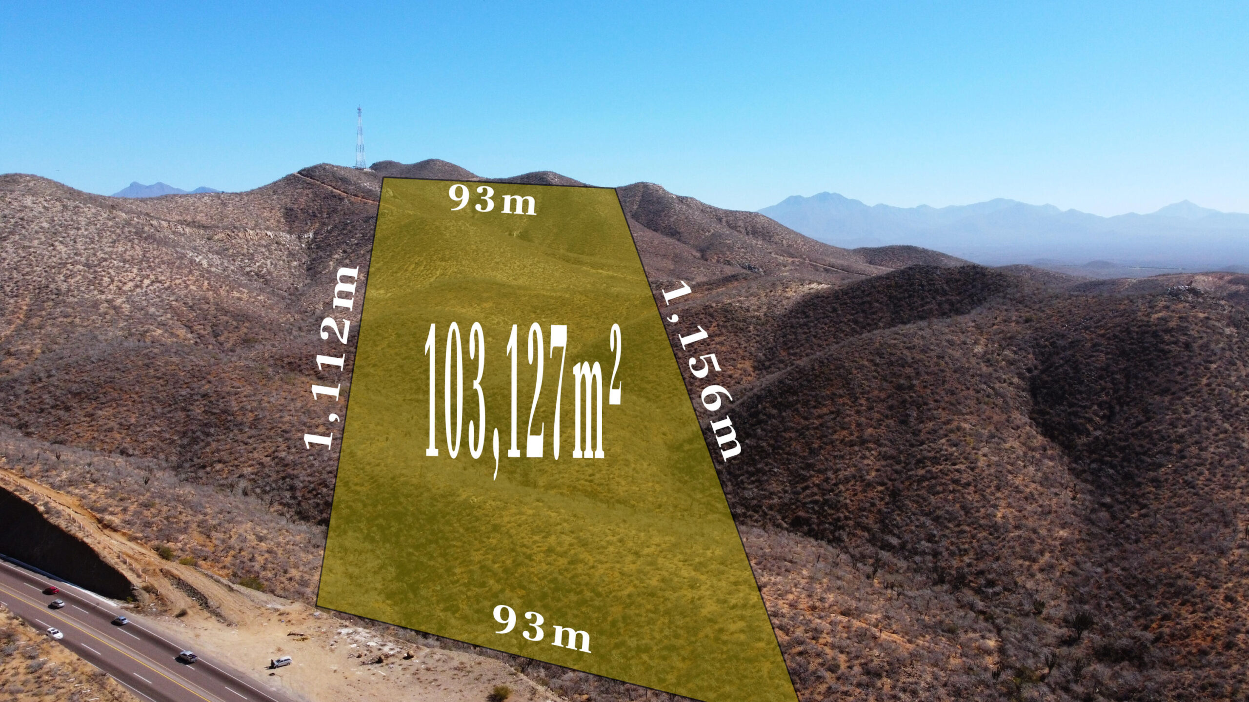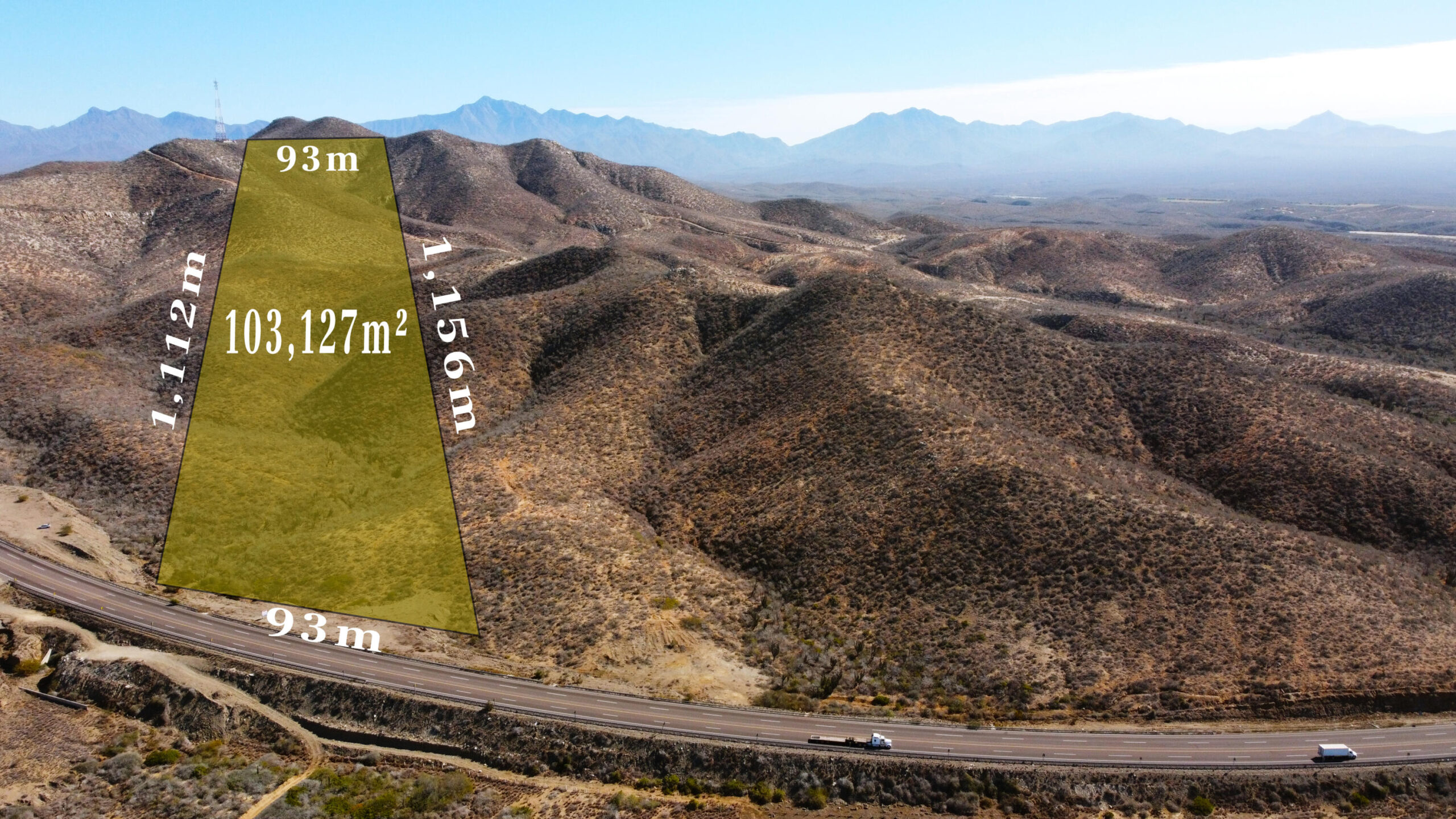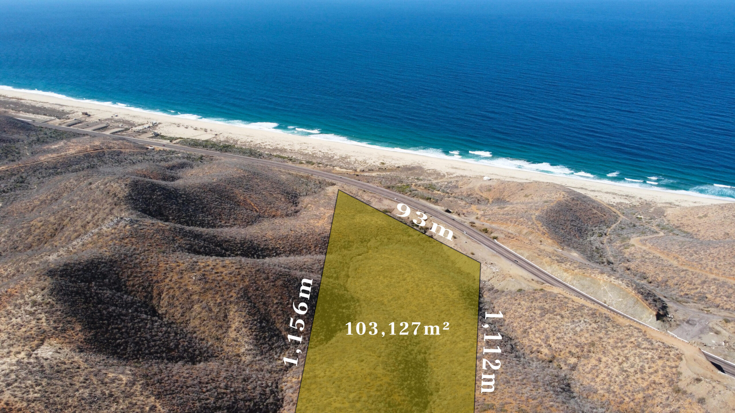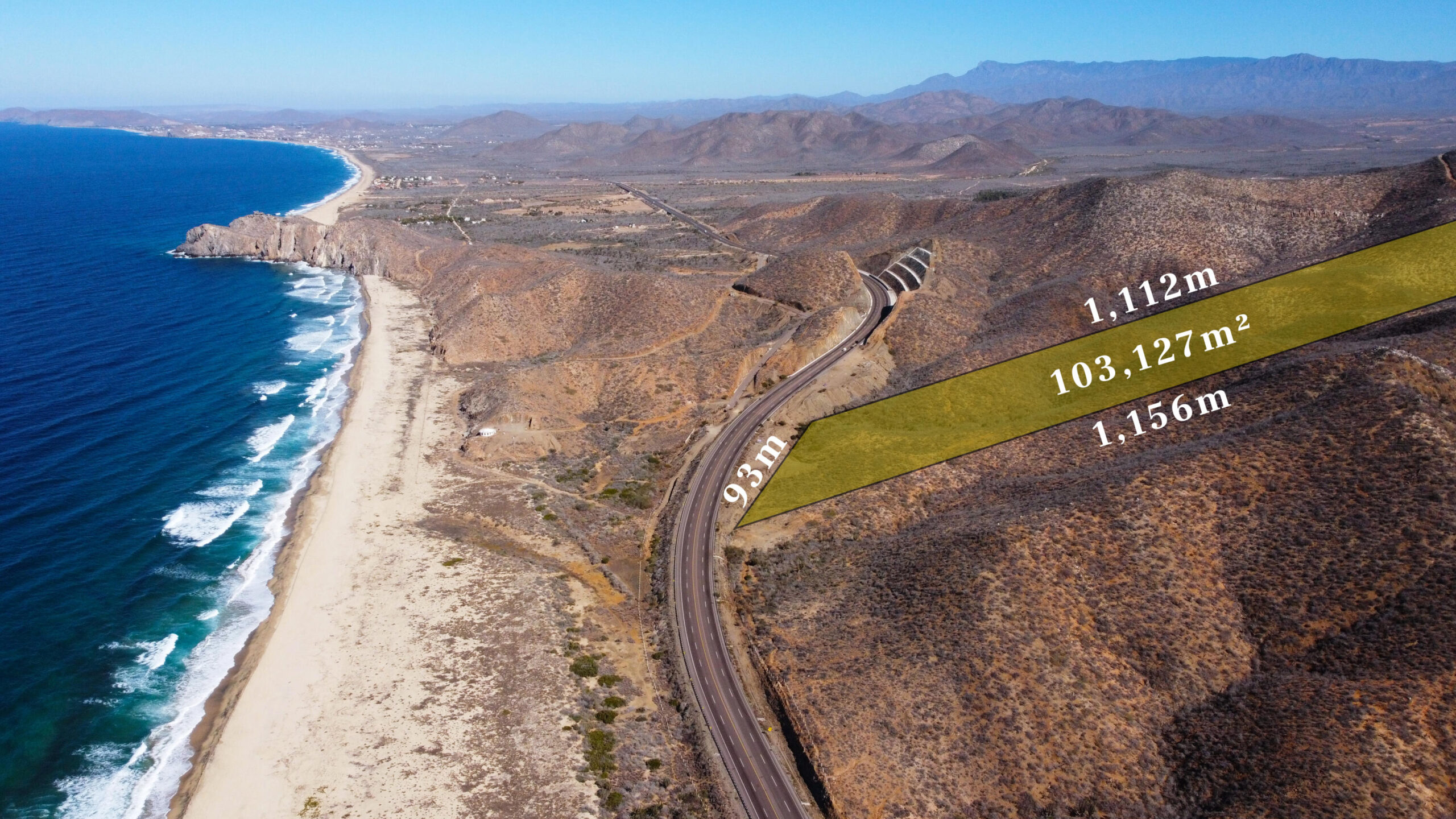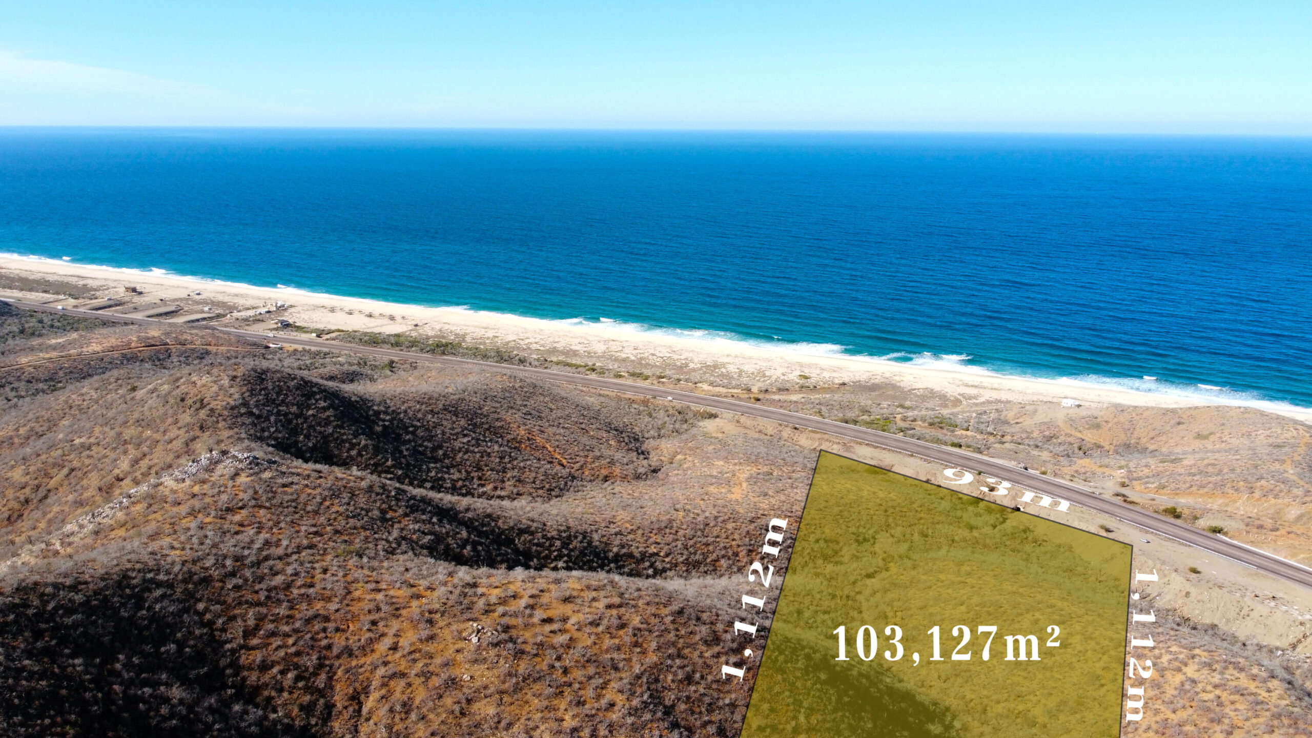 FOR SALE! STUNNING OCEANVIEW LAND, LOT 2-B, TODOS SANTOS HIGHWAY. CABO PACIFIC, BETWEEN ELIAS CALLES Y CERRITOS. ONLY $9 USD PER M2. IT WON´T LAST LONG 100,257m2 TOTAL AREA 93m Highway Front By 1km Depth. 10 hectares / 24 Acres of land, starting with the magnificent Pacific Ocean view from the main hill. Ideal for self-sustaining Campestral Devolpement or Resort, or just your Dream Home. A SOLO $9 USD POR M2. NO DURARÁ MUCHO, 100.257 m2 93 frente de carretera por 1Km de fondo, Entre Ejido Plutarco Elías Calles y Cerritos, Cabo Pacifico. B.C.S. México 10 hectáreas de tierra, comenzando con la magnífica vista del Océano Pacífico desde la colina principal. Ideal para desarrollo campestre o resort autosostenible, o simplemente la casa de tus sueños.