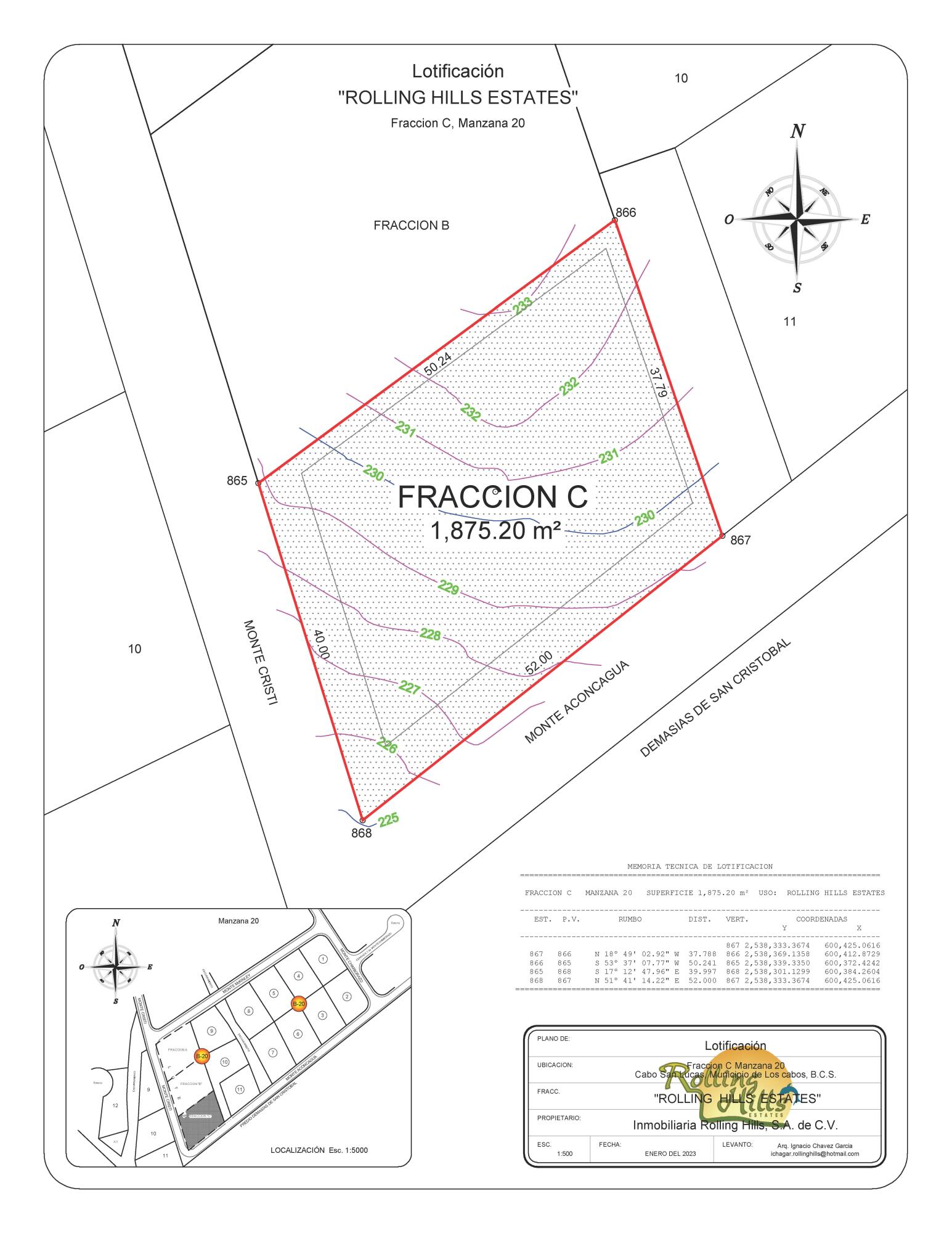 Lot C is beautifully situated within Rolling Hills, offering expansive views of the Pacific Ocean along with striking outlooks over the Rancho San Lucas and Diamante golf courses. With a slightly more sheltered position, this homesite provides a sense of privacy while still enjoying impressive elevation and wide-open vistas. The lot features easy access from a newly paved road, and underground electricity is available at the lot line, making it ready for development. Ideal for a private residence or luxury retreat, Lot C offers an excellent opportunity to build within a secure, prestigious community. Combining scenic views, accessibility, and a desirable location, Lot C represents exceptional value within Rolling Hills.