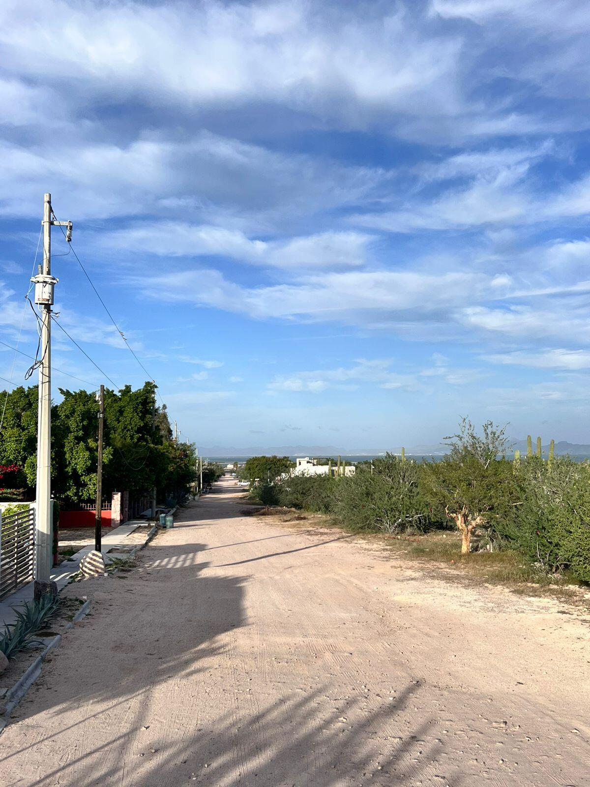 This bay and mountain view lot is set in a quiet location within a nice neighborhood popular with expats, making it the perfect place to build your new home and enjoy a relaxed lifestyle surrounded by natural beauty. Located in the hills of El Centenario, this beautiful desert property offers a peaceful setting just 12 minutes outside the city, striking an ideal balance between privacy and convenience. The gently sloping lot is dotted with gorgeous, mature desert cactus and native plants, creating a landscape that feels both authentic and serene. All essential services are already in place, with water, sewer, and power accessible at the property line, simplifying the building process. The lot measures 12.5 m wide by 42 m deep (524 sqm / 5,658 sq ft)