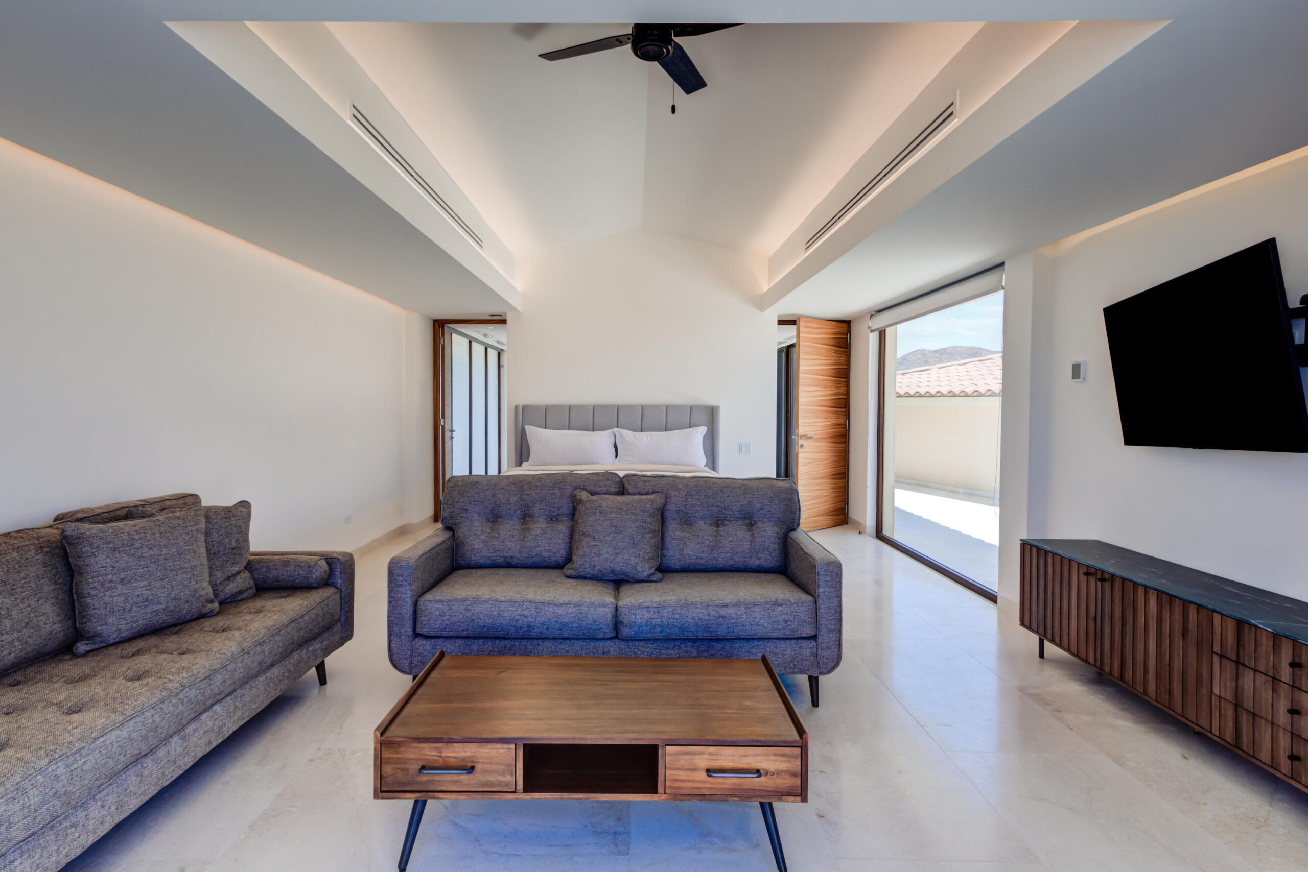 Stunning fully furnished 3BR villa + service room in exclusive Club Campestre. Enjoy a heated pool, jacuzzi, and stylish outdoor areas. The primary suite features a private terrace, jacuzzi, spa space, and walk-in closet. Two guest bedrooms with ensuite baths and a versatile service room add comfort. Open-concept kitchen, dining for 8, fire pit, and grill make it ideal for entertaining. Lot size: 9,972 sq ft. Just 15 min from downtown San José del Cabo, near golf, beaches, top restaurants, shopping, hospitals, and schools. Gated community with 24/7 security.