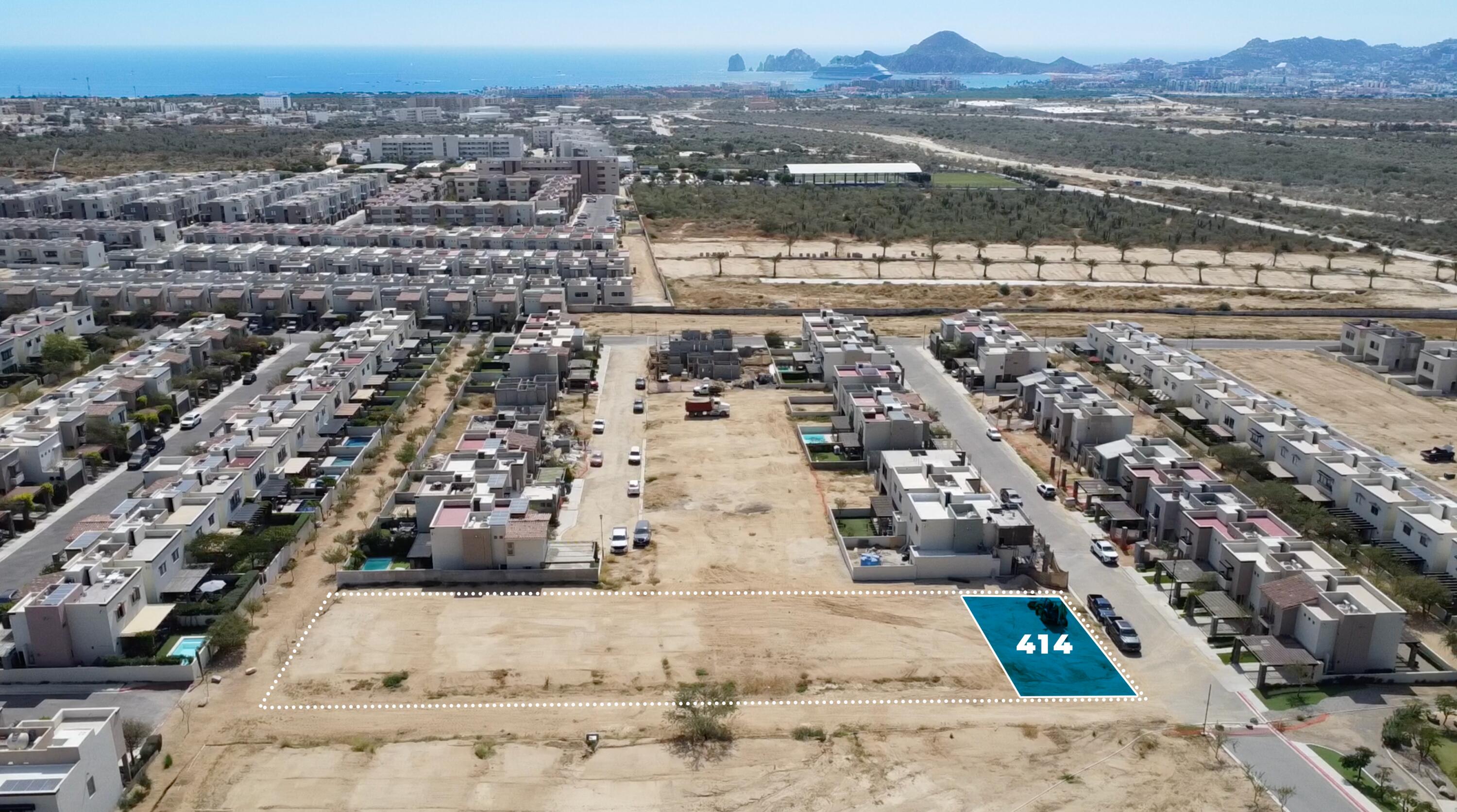 Lot 414 in Cabo del Mar, El Tezal, featuring 200 m² within a gated community with 24/7 security and amenities including pool, parks, and children's play area. Ready to deed, free of liens, with water and electricity feasibility. Includes architectural plans for two 3-bedroom prototypes with roof terrace, designed to optimize construction efficiency and resale value. Ideal for buyers looking to build their own home or for developers seeking to construct and resell within an established community, just 10 minutes from downtown Cabo San Lucas and its beaches.