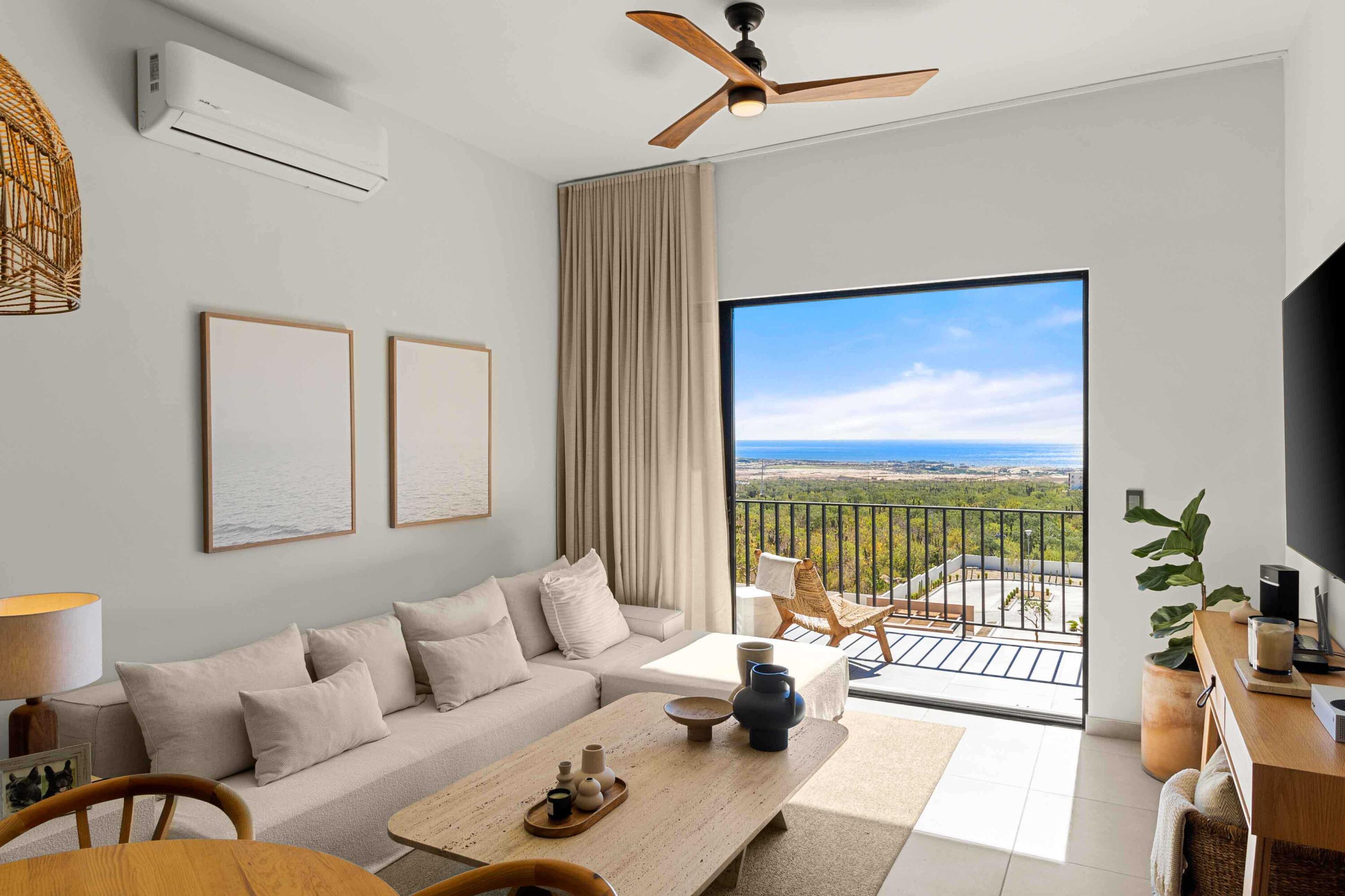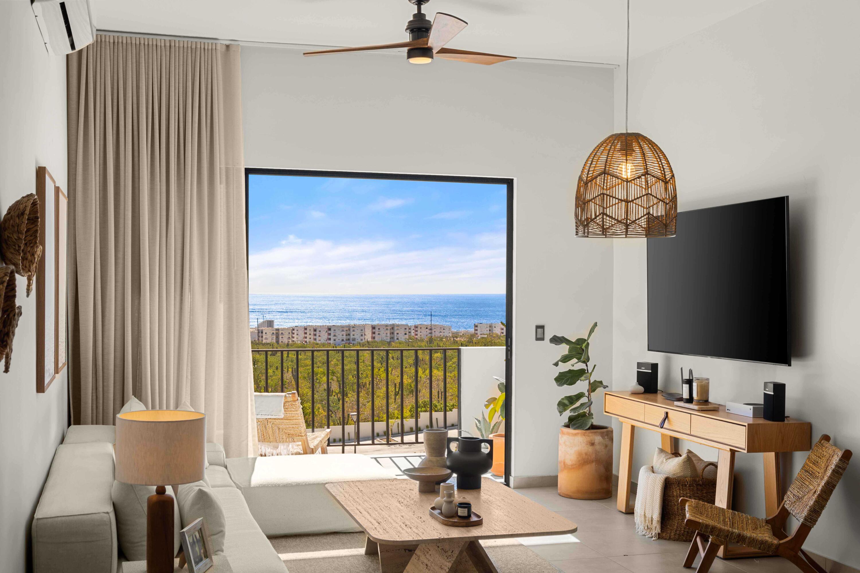Gorgeous 2 Bed condo on top level with permanent ocean views throughout the unit. Catch beautiful sunsets from living, kitchen and master bedroom. Condo comes fully furnished and equipped, includes remote ceiling fans, Ac Units, Linen curtains, Hurricane shutters, UV protection film on sliding doors, etc. Community offers ocean view heated pool, kids area and 24 hr security. IMPORTANT: there's no elevator in the building. Price in pesos: 3,900,000