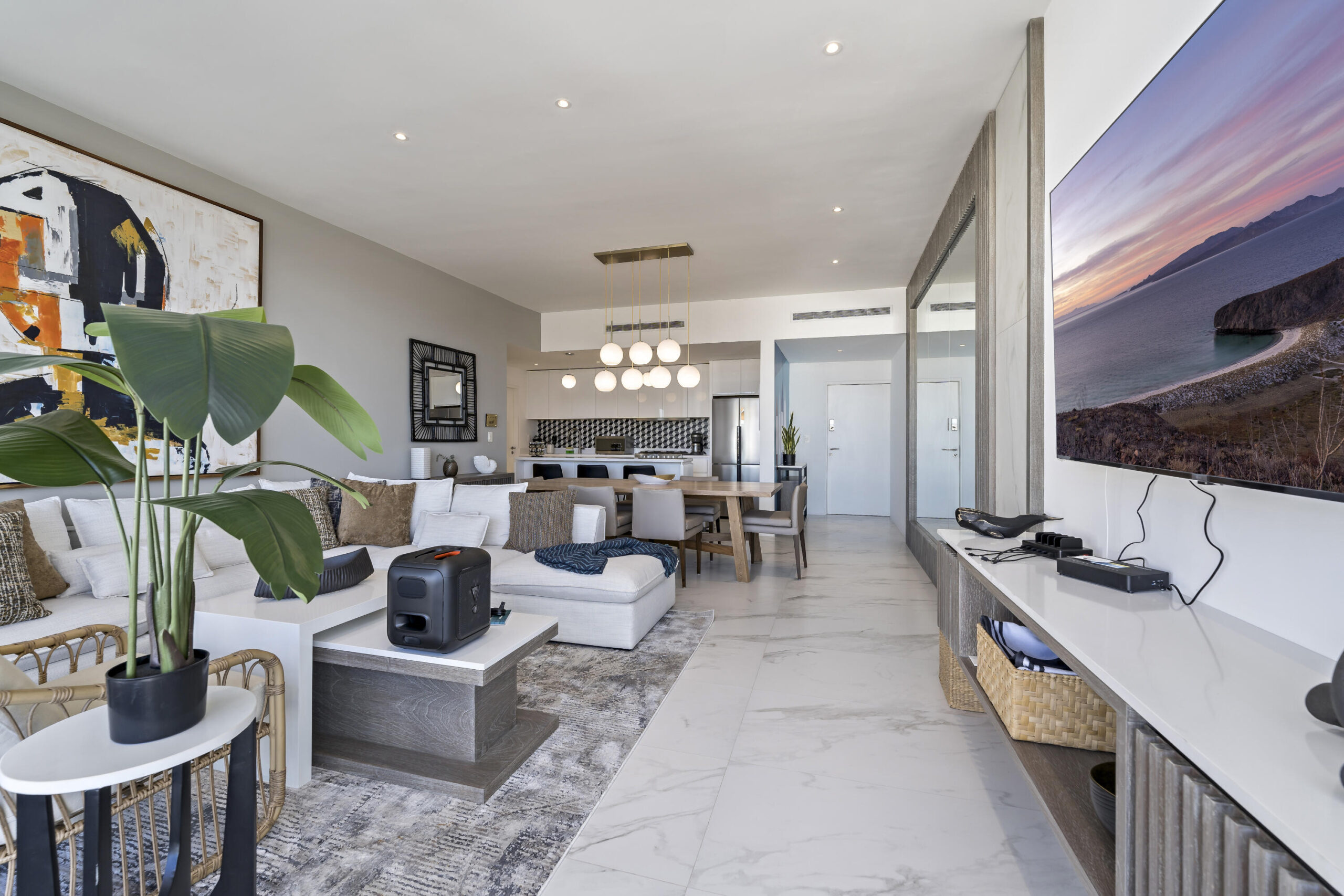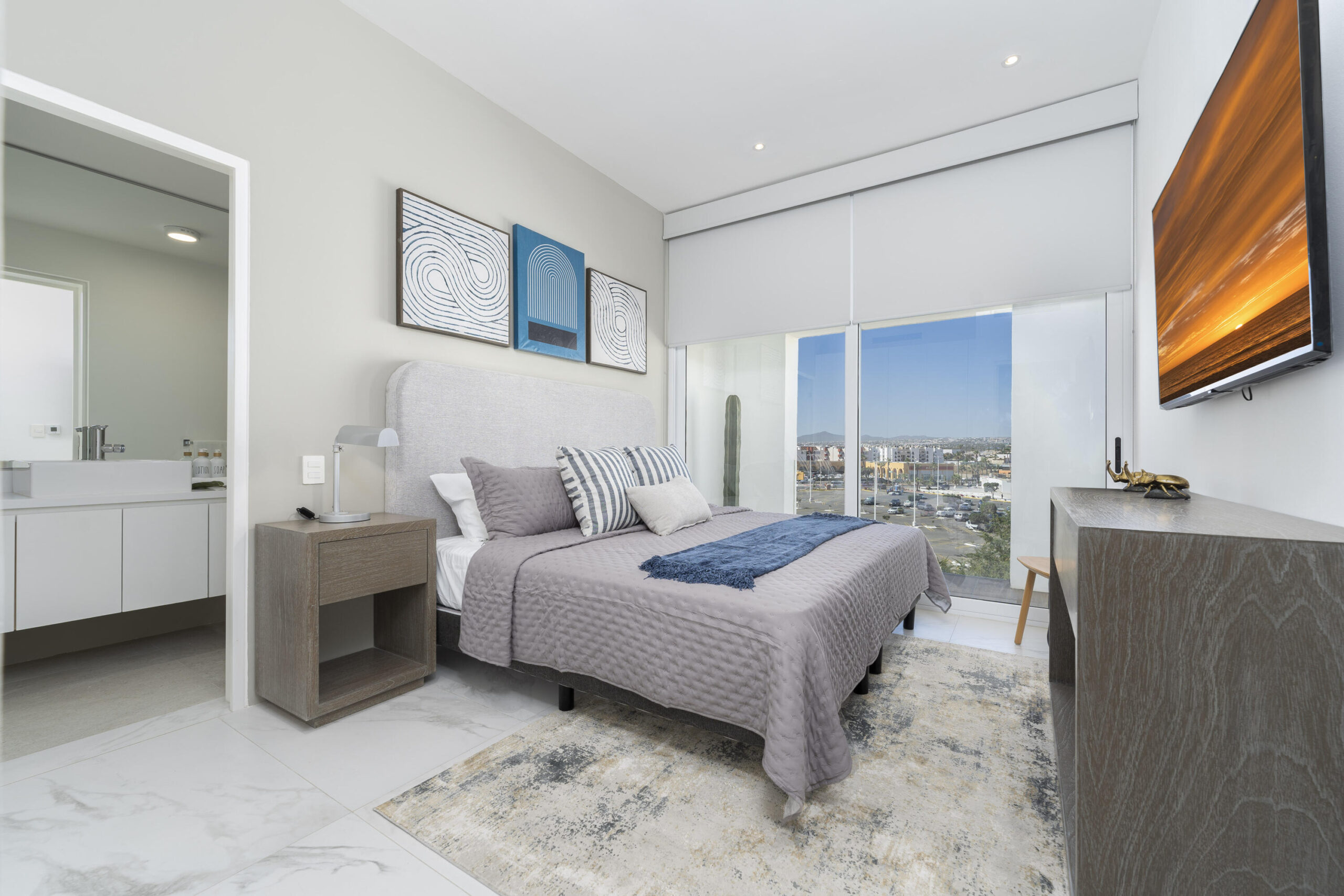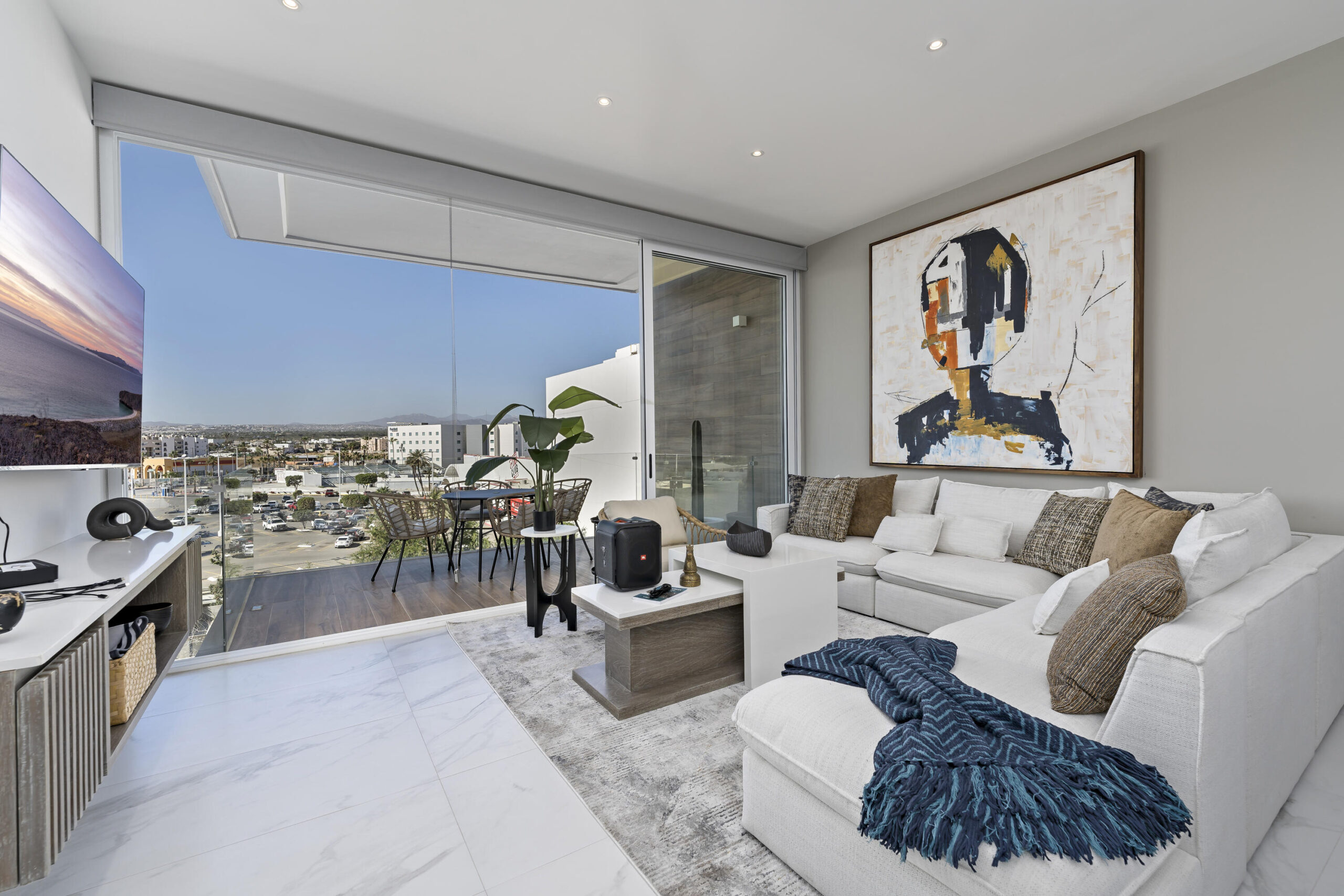 This Vibrant 3 Bedroom Condo is located in Downtown Cabo San Lucas inside the spectacular new development Marea at only 500 hundred meters from Medano Beach. The Vibrant Condo has a fully equipped opened kitchen, a living room with beautiful natural light an private terrace, master bedroom with en-suite bathroom, walking closet, working area and balcony, second bedroom with en-suite bathroom, closet and balcony, third bedroom with closet and balcony, a full bathroom. The community has 24/7 security, lobby, gym, pool, roof top with jacuzzi and BBQ area. Vibrant Condo is a turnkey property with great ROI