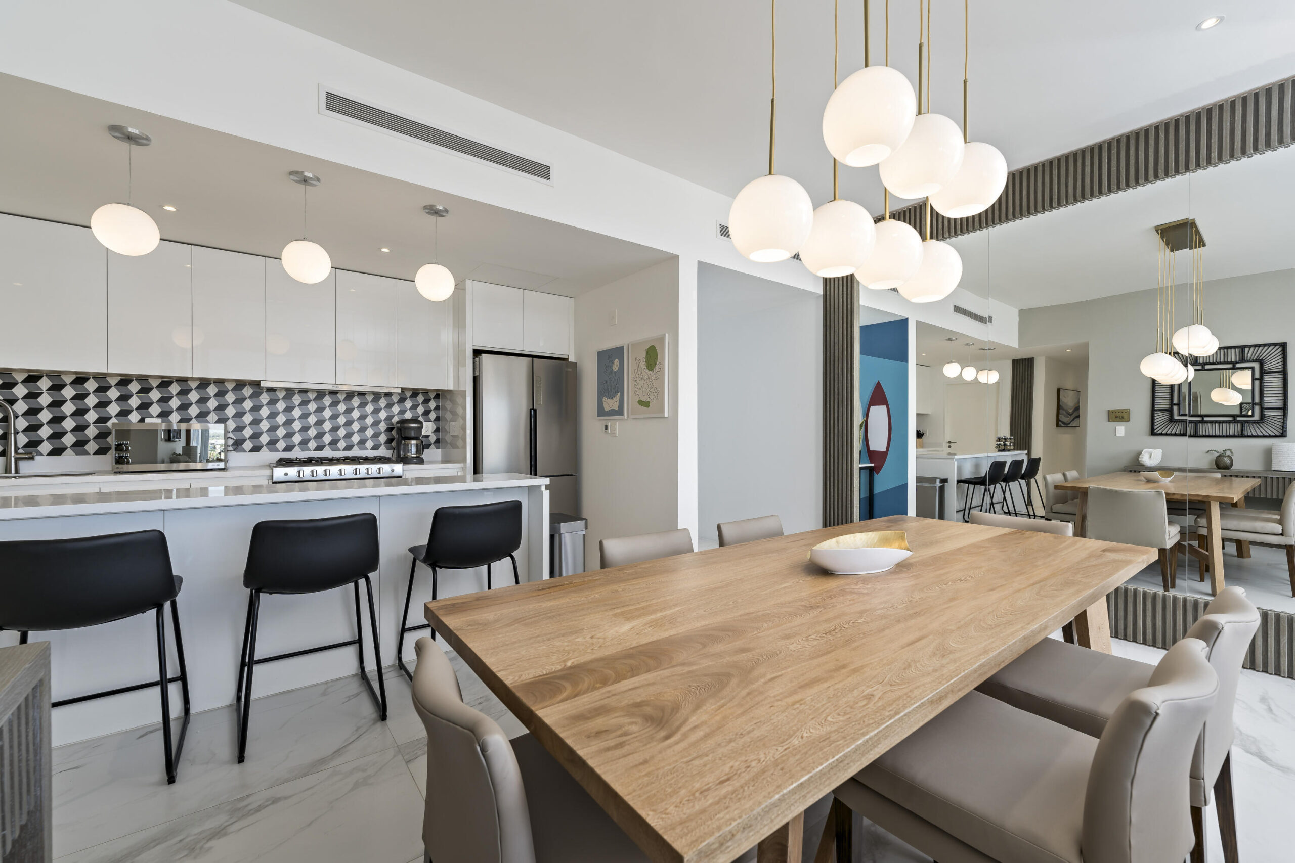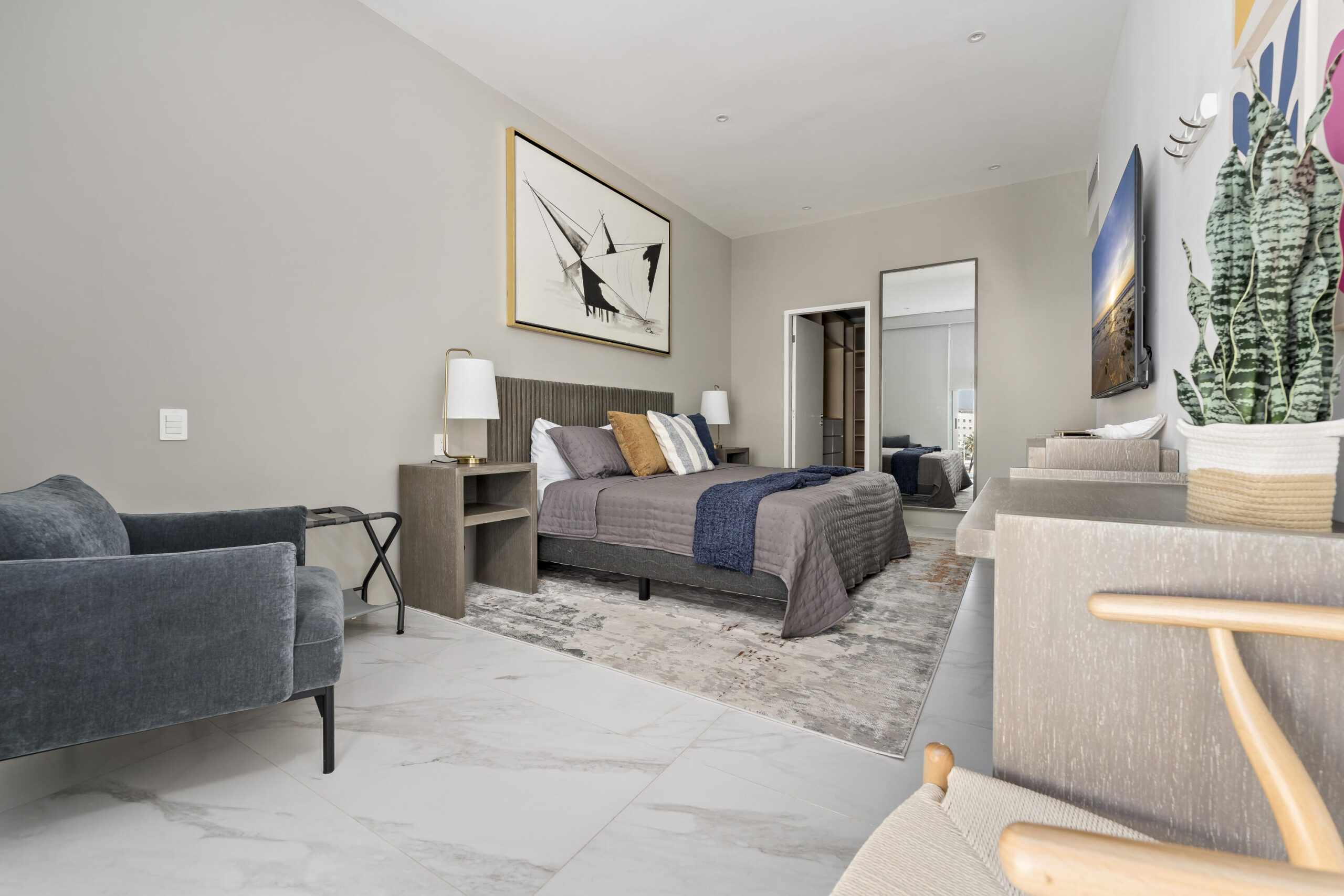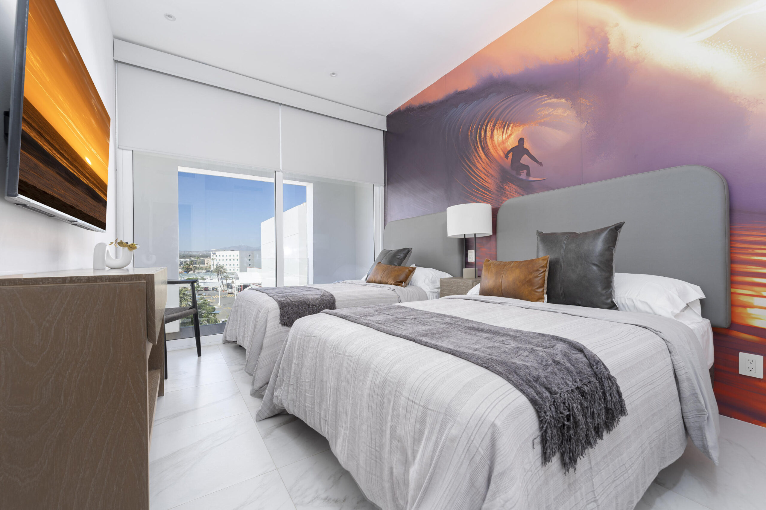 This Vibrant 3 Bedroom Condo is located in Downtown Cabo San Lucas inside the spectacular new development Marea at only 500 hundred meters from Medano Beach. The Vibrant Condo has a fully equipped opened kitchen, a living room with beautiful natural light an private terrace, master bedroom with en-suite bathroom, walking closet, working area and balcony, second bedroom with en-suite bathroom, closet and balcony, third bedroom with closet and balcony, a full bathroom. The community has 24/7 security, lobby, gym, pool, roof top with jacuzzi and BBQ area. Vibrant Condo is a turnkey property with great ROI