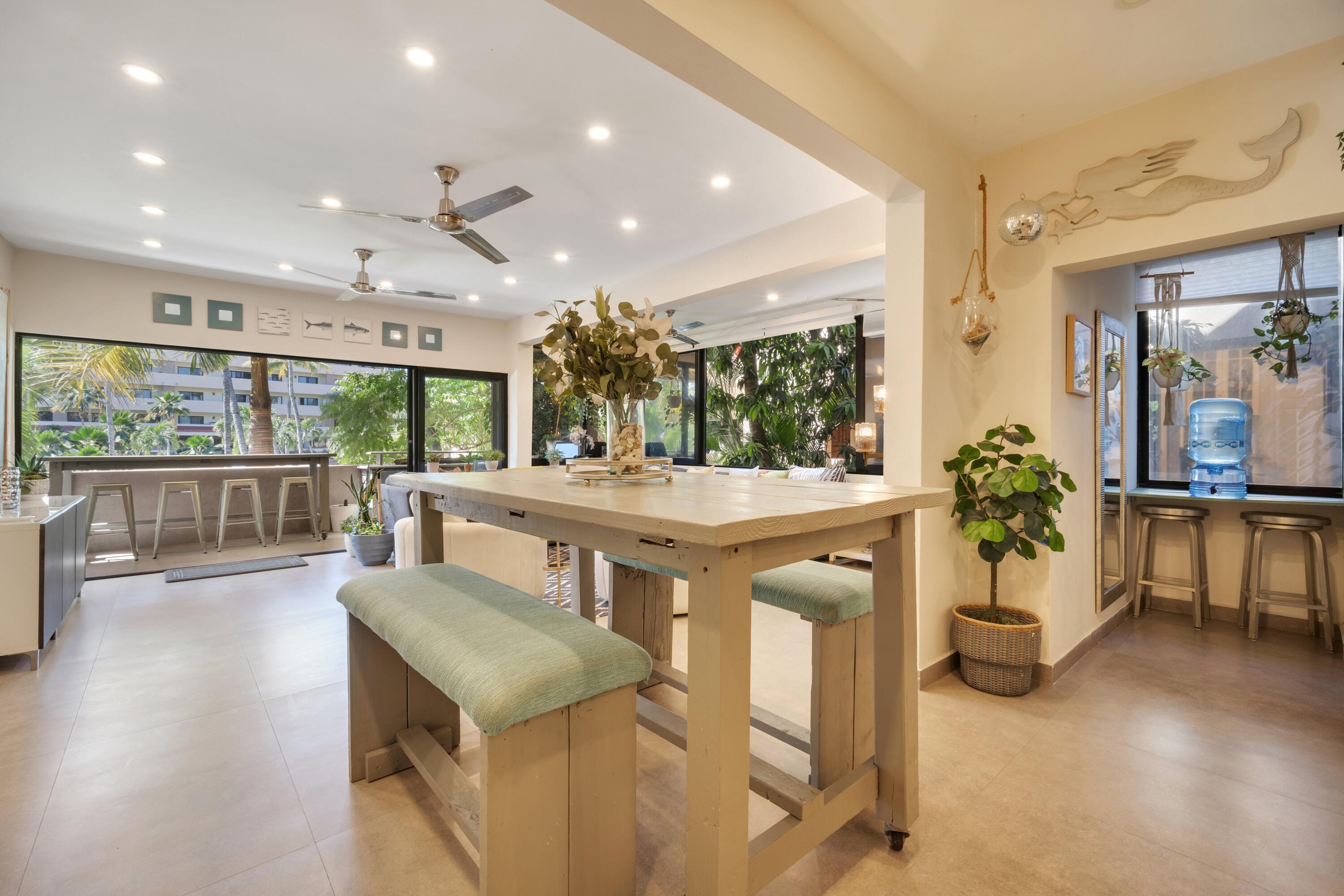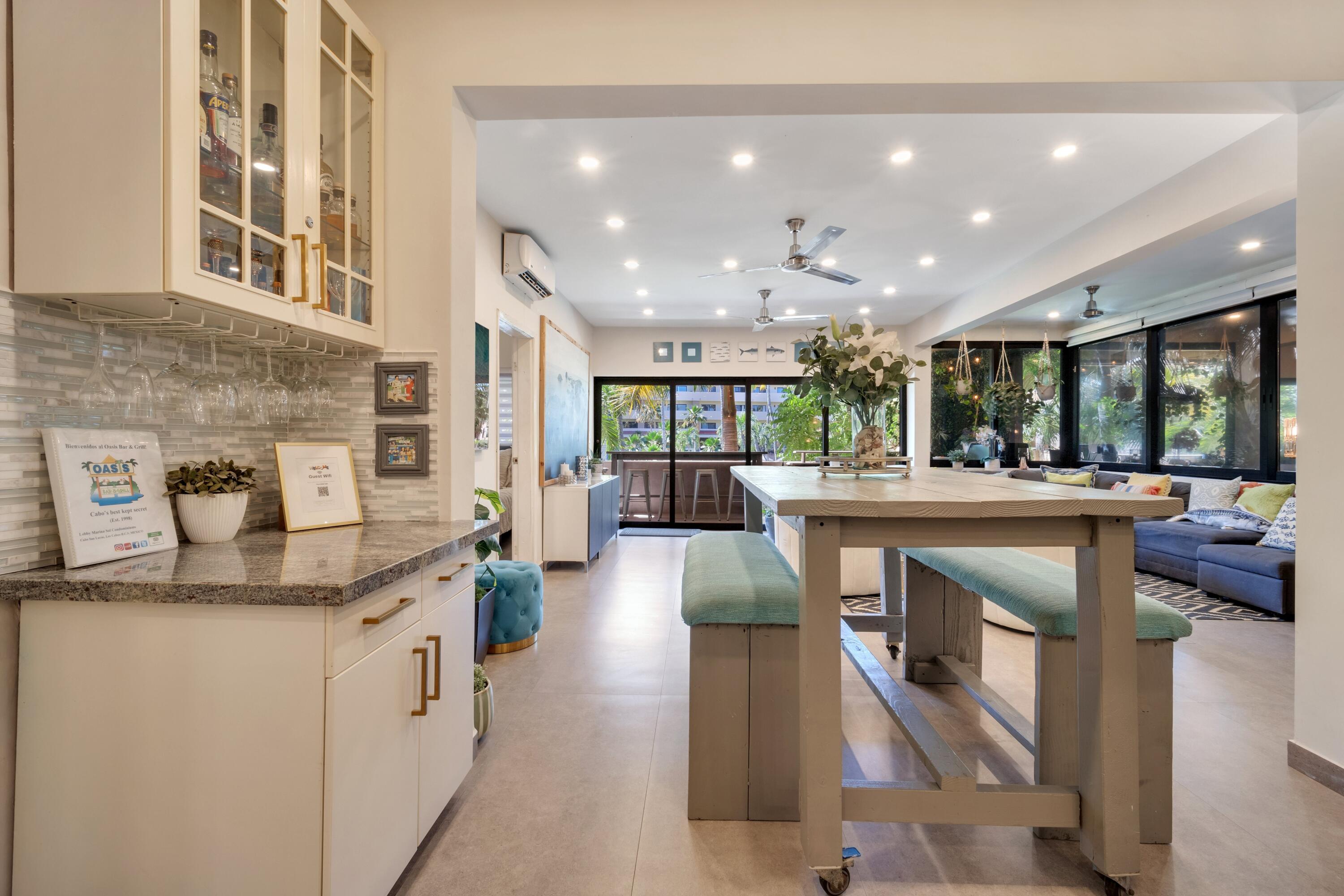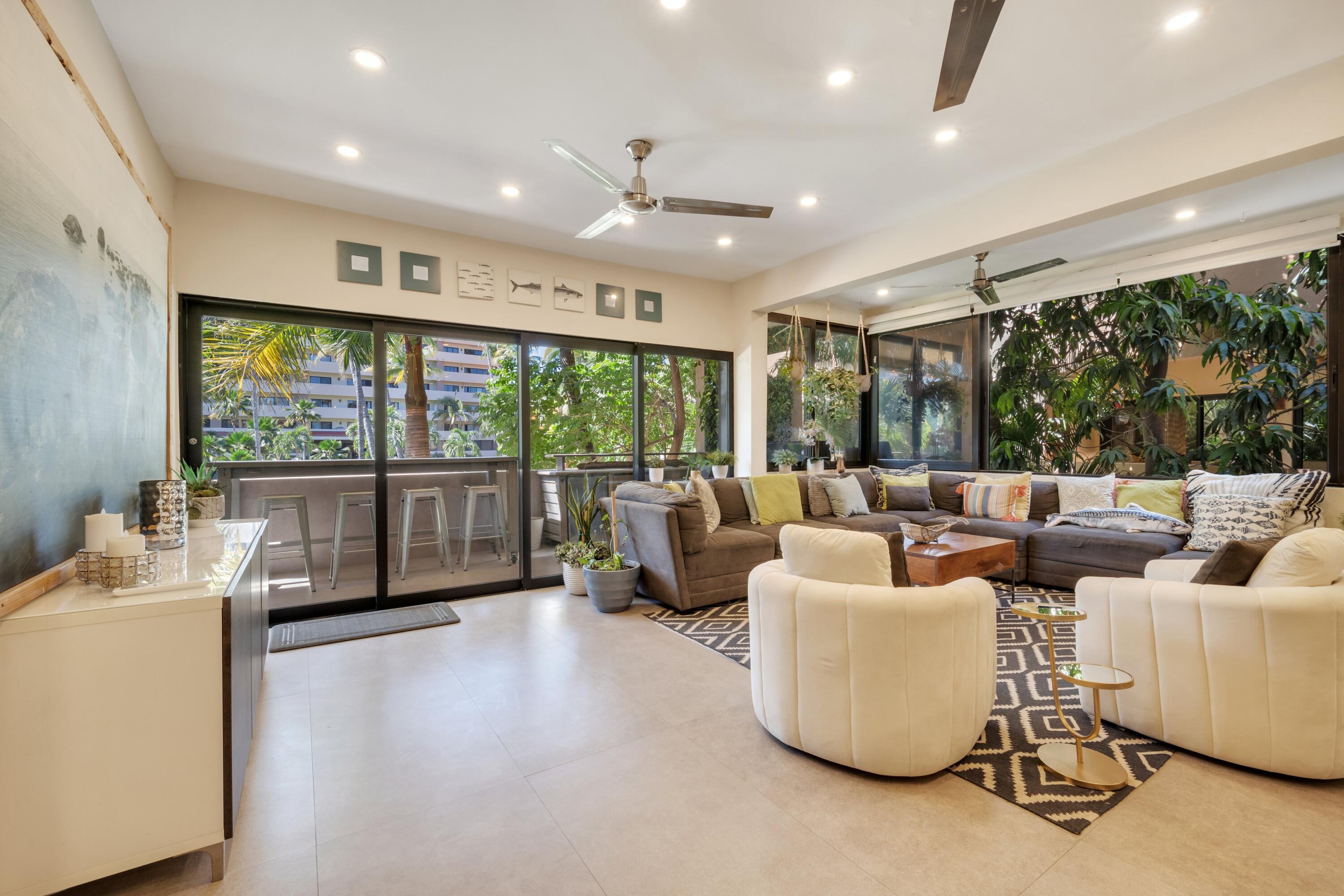 Marina Sol D-201 - 4 Bedroom / 2 Bath Condo in the Heart of Cabo San Lucas Experience the best of Cabo living at Marina Sol, a landmark resort community perfectly positioned between Medano Beach, the Marina, and downtown Cabo San Lucas. This inviting 4-bedroom, 2-bath condominium offers generous living space and the ultimate walk-to-everything lifestyle. Inside, you'll find a light-filled open layout with comfortable living and dining areas, a modern, fully stocked kitchen, and a private balcony overlooking lush gardens and the resort's expansive heated pool—one of the largest in Cabo. It's the perfect spot to unwind after a day on the beach. The residence is being sold completely furnished and move-in ready, ideal as either a personal getaway or an income-producing rental.