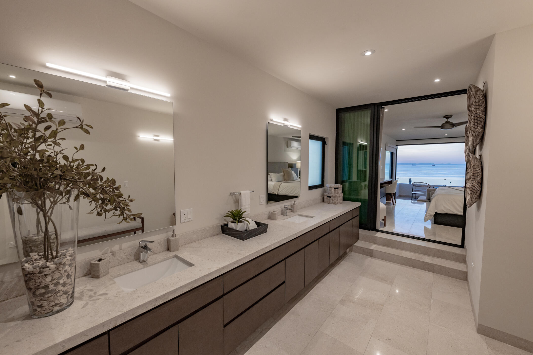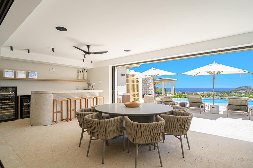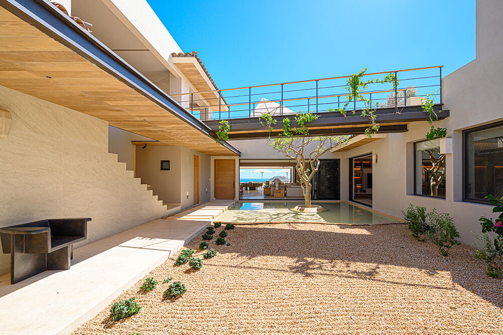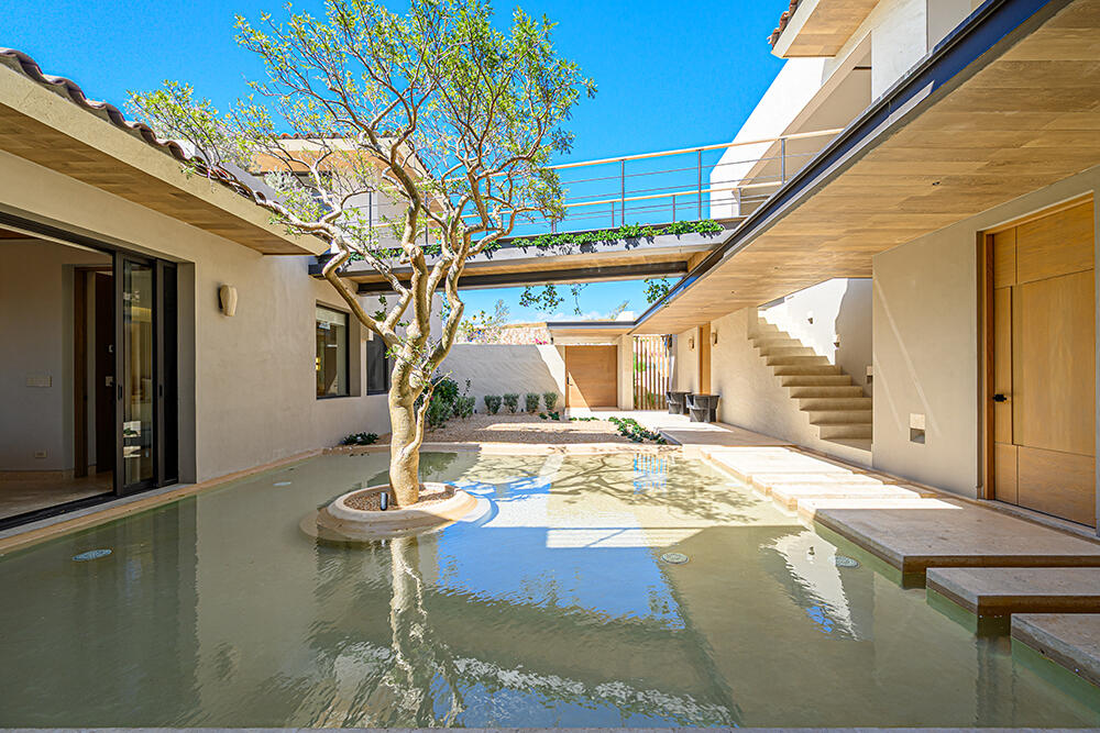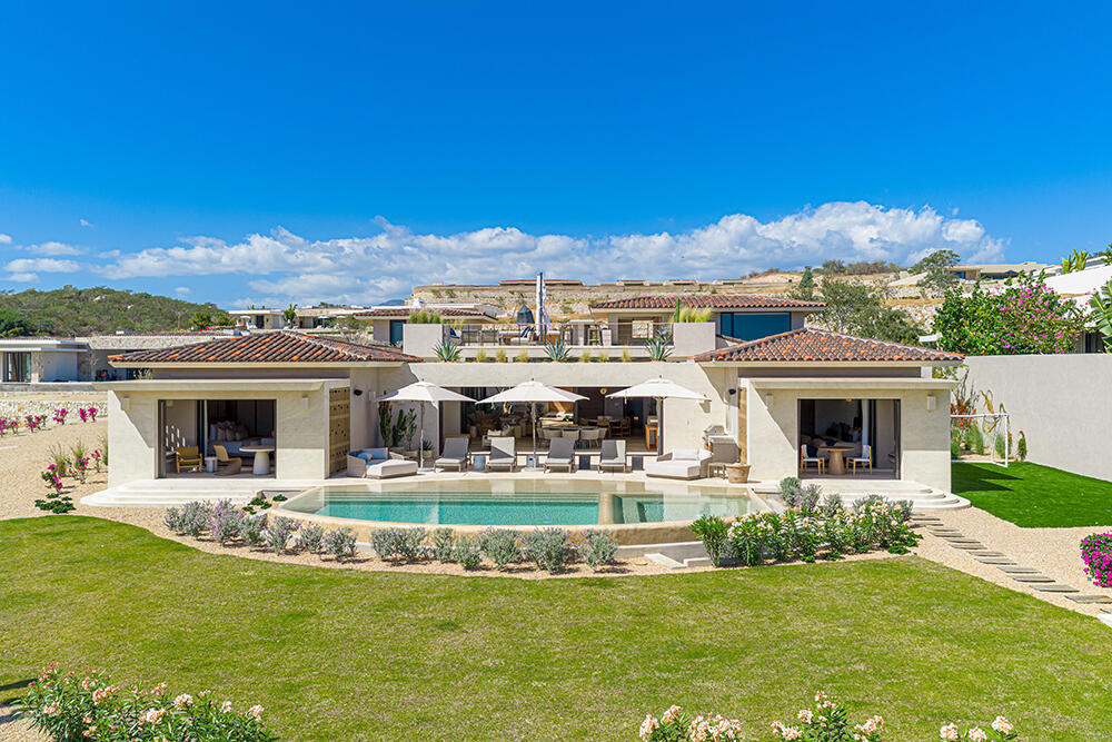 Set within the prestigious private community of Querencia, this striking contemporary estate sits on a 19,407 sq ft homesite and offers approximately 8,600 sq ft of refined indoor-outdoor living. Enjoy panoramic ocean views and sweeping sightlines over the Palmilla Golf Course, all just a 10-minute golf cart ride to Q's private beach club. The main level is designed for seamless entertaining, featuring open-concept living and dining spaces, a chef's kitchen with pantry and service quarters, and a relaxed family/biblioteca lounge. Upstairs, additional guest accommodations and rooftop terraces culminate in a dramatic firepit gathering space -- the perfect setting for sunset evenings under the Baja sky. Rare opportunity to own a NEW ocean-view estate in a premier Los Cabos community.