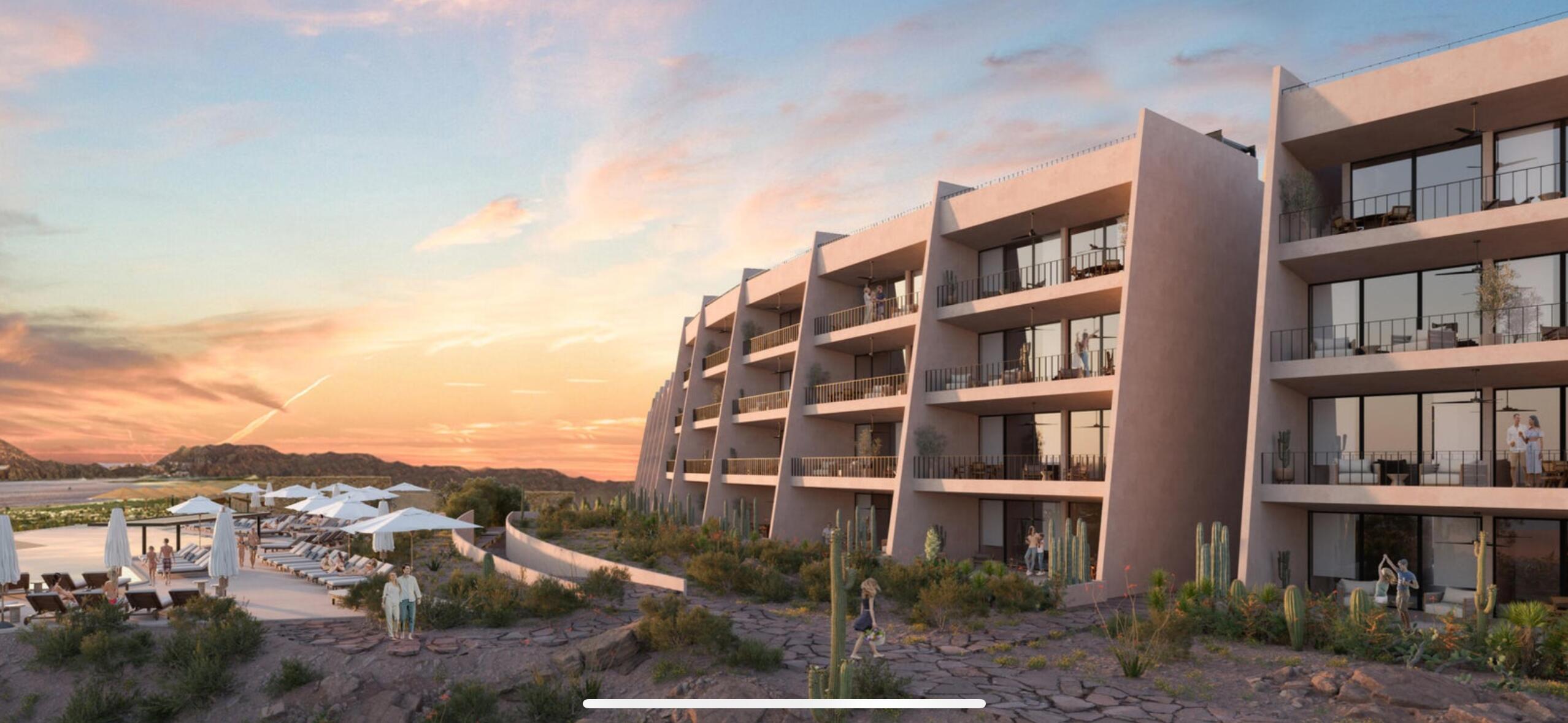 Welcome to Monte Rocella, a community in the heart of Tezal. This 2 bedroom 2 bathroom garden level condo with beautiful terrace has a private garden and a splash pool on the terrace, and is fully furnished with all of the upgrades needed, also has the lock off feature and a designated parking spot for a high investment property in Cabo! The panoramic views in the community of the glittering Sea of Cortez and the dramatic Arch rock formation will be center stage for all the amenities-2 infinity edge pools with spacious sun deck, spots for grilling, 2 gyms, a convenient co-working space, two yoga studios, two lounge areas, and fire pits for night-time gatherings; a pet park and kids play area. Delivery for 2027. . Developer will have optional onsite property management and concierg