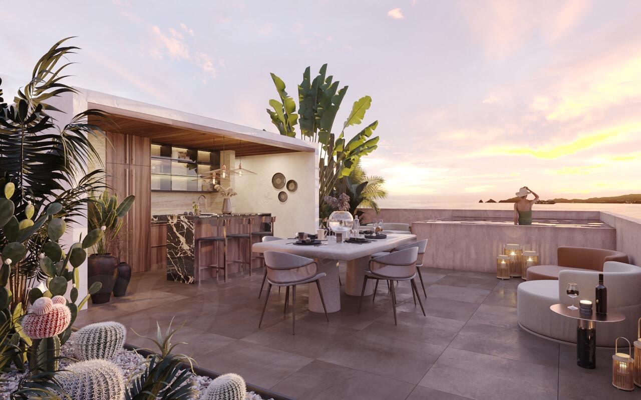 UNDER CONSTRUCTION. This stunning 2-bedroom condo PENTHOUSE in Cabo San Lucas, located on the fourth level and includes a private pool on the roof. Cabo Costa is the newest community that blends its arquitectural designs with nature. This unit has been meticulously designed and comprises two end-suite bedrooms. The property interior is designed in neutral tones to create a modern, welcoming and luxurious home yet retaining its original features. Amenities such as a Club House, Infinity pool, Gym, sundeck, Kids area, Wetbar, Snackbar & Massage area. Call me for more details More.