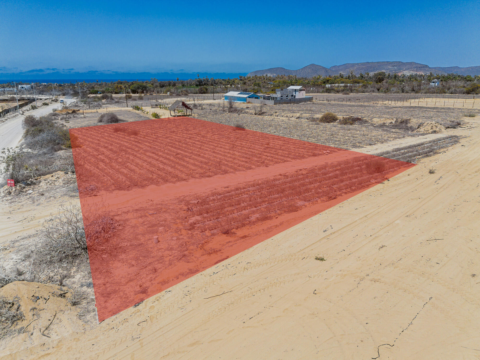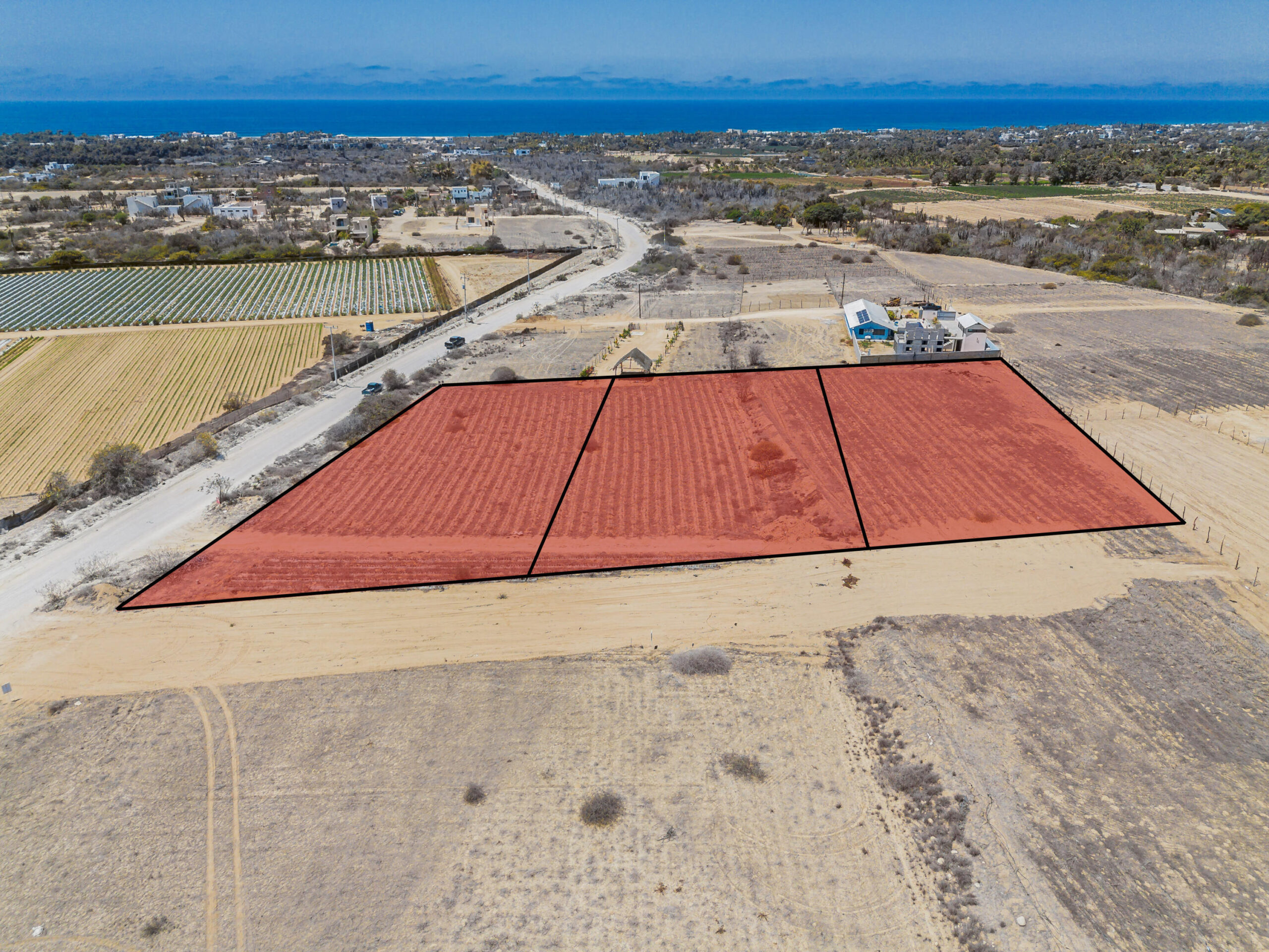 One of three gorgeous, contiguous lots in the hip and coveted area of El Pescadero,fifteen minutes south of downtown Todos Santos. Baja Bliss Lot A boasts over a half-acre (2437 SM) of buildable land. Discover the seamless blend of convenience and natural beauty with this exceptional property situated directly on the well-maintained Baja Beans road. The land is perfectly shaped, slightly elevated and gently sloped ground level allowing expansive and unobstructed ocean views from the second floor and third story roof decks. Ample exterior space for guest casitas, a large pool with jetted tub, outdoor kitchen with al-fresco dining, and fertile soil for vegetable and herb garden plots flanked by fruit trees.