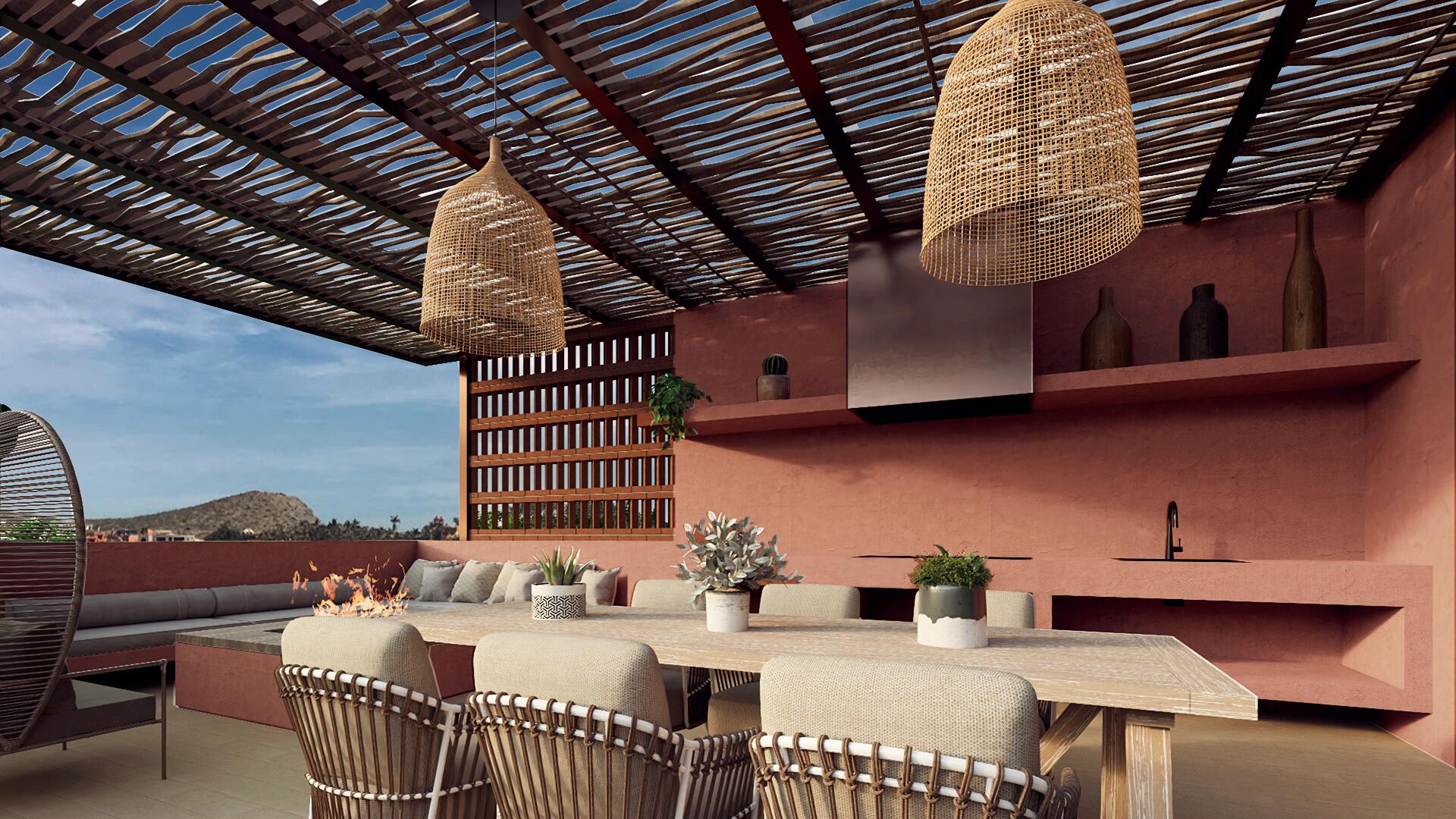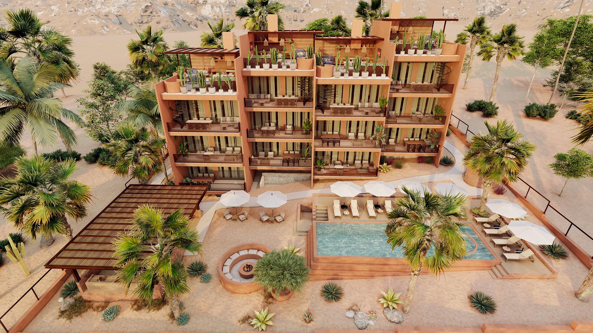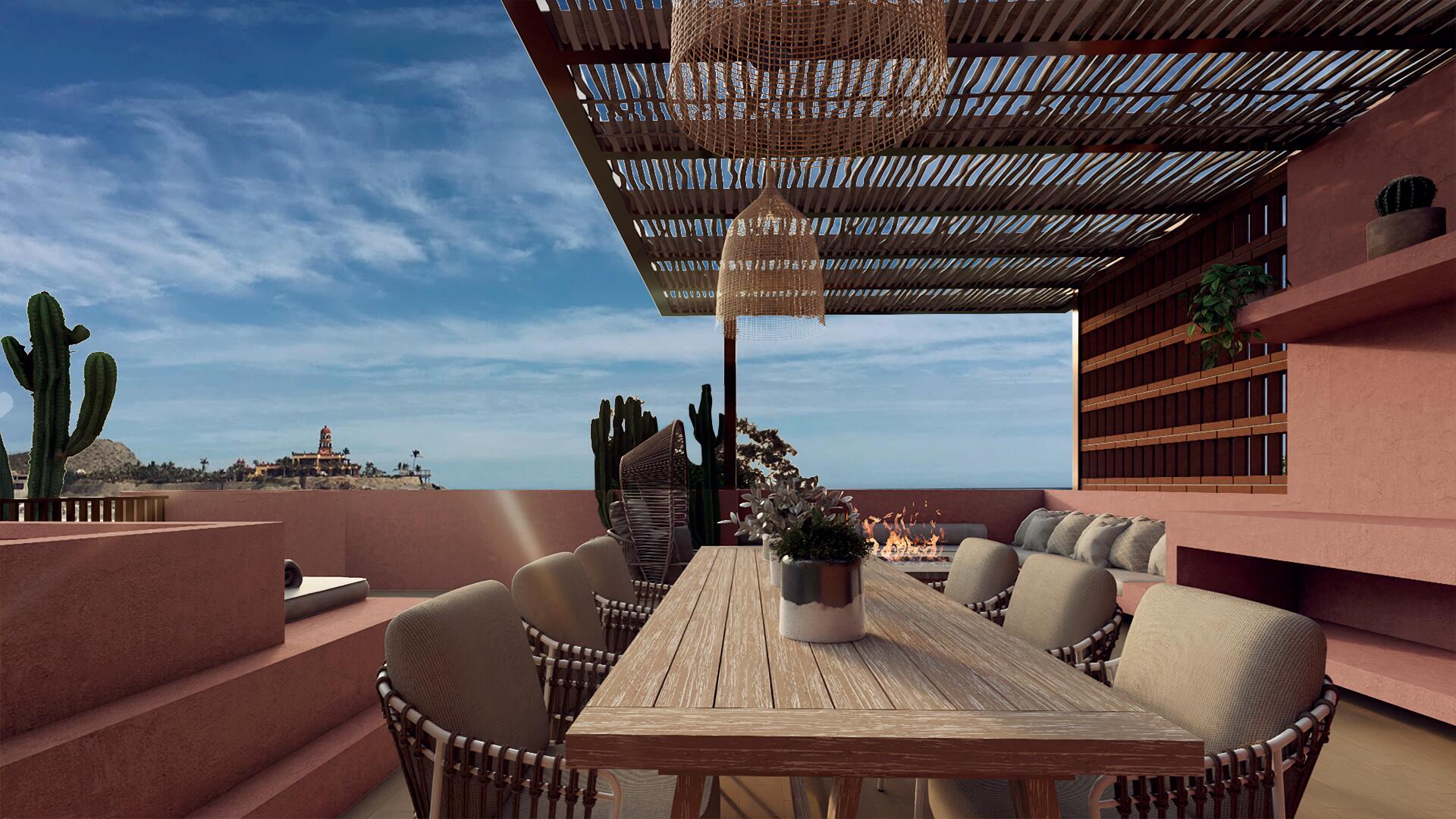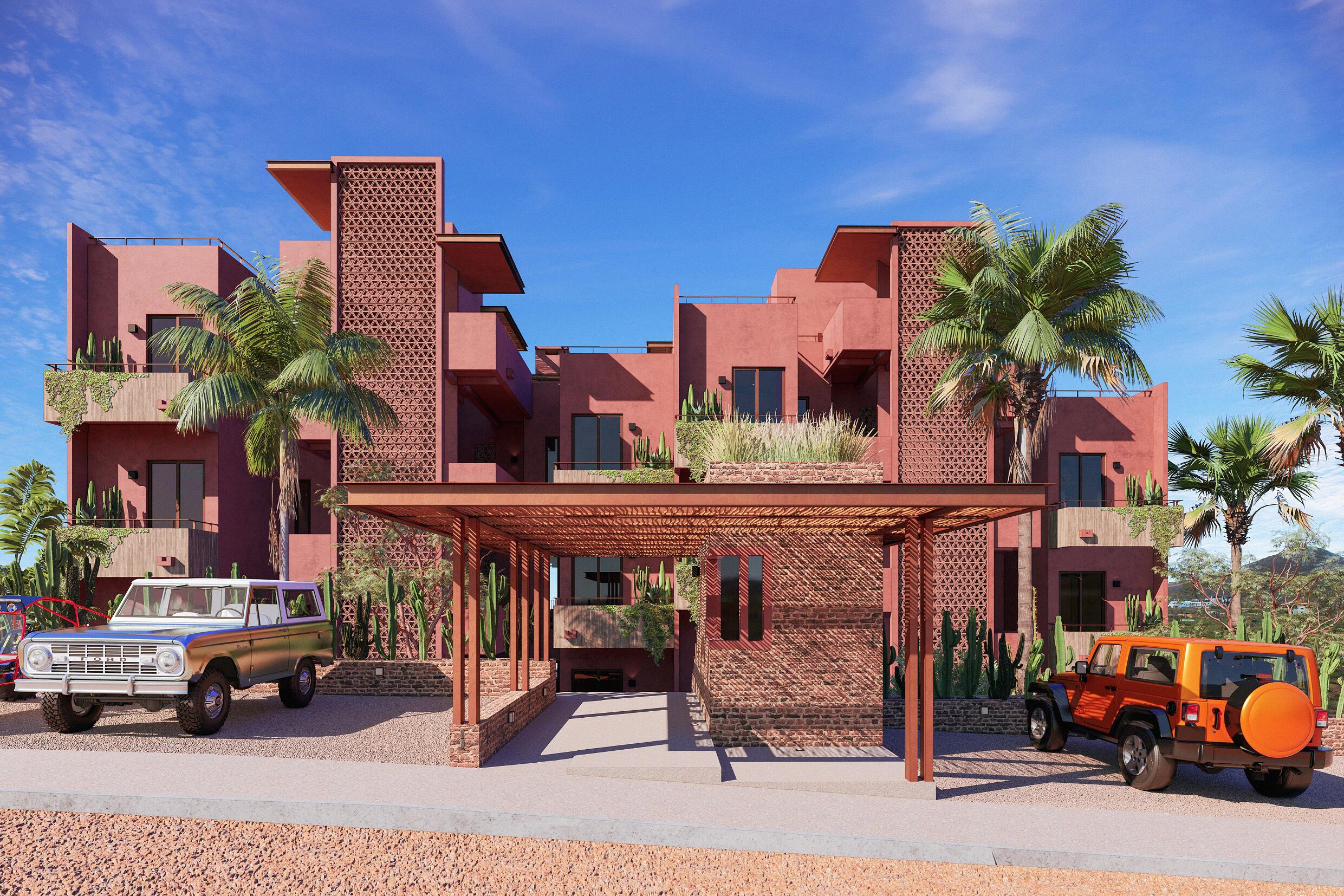OCEAN VIEWS FROM EVERY UNIT! CONSTRUCTION WELL UNDER WAY, DELIVERY JUNE 2026. Welcome to Cerritos 2097, an exclusive new community by Diasol, the experienced developer behind the successful Cora Los Cabos and other landmark projects. Located just minutes from world-famous Cerritos Beach, this prime location offers easy access to surfing, swimming, and nearby destinations like El Pescadero and the Pueblo Mágico of Todos Santos. Designed for modern coastal living, the community features a pool, BBQ area, fire pit, gym, and landscaped gardens—ideal for enjoying the Baja lifestyle. Each 2-bedroom, 2-bathroom condo offers just under 1,100 sq ft of interior living space plus a spacious 238 sq ft private terrace to take in the panoramic views.