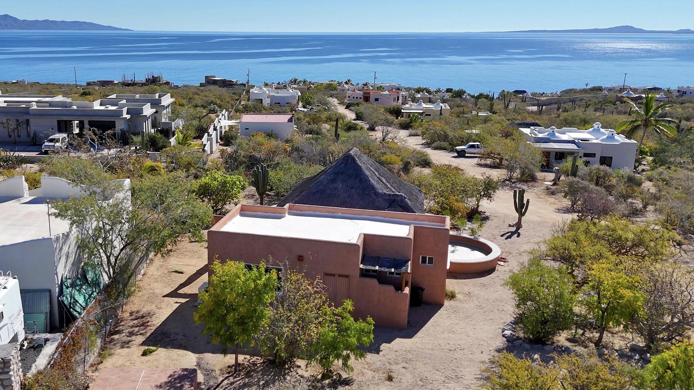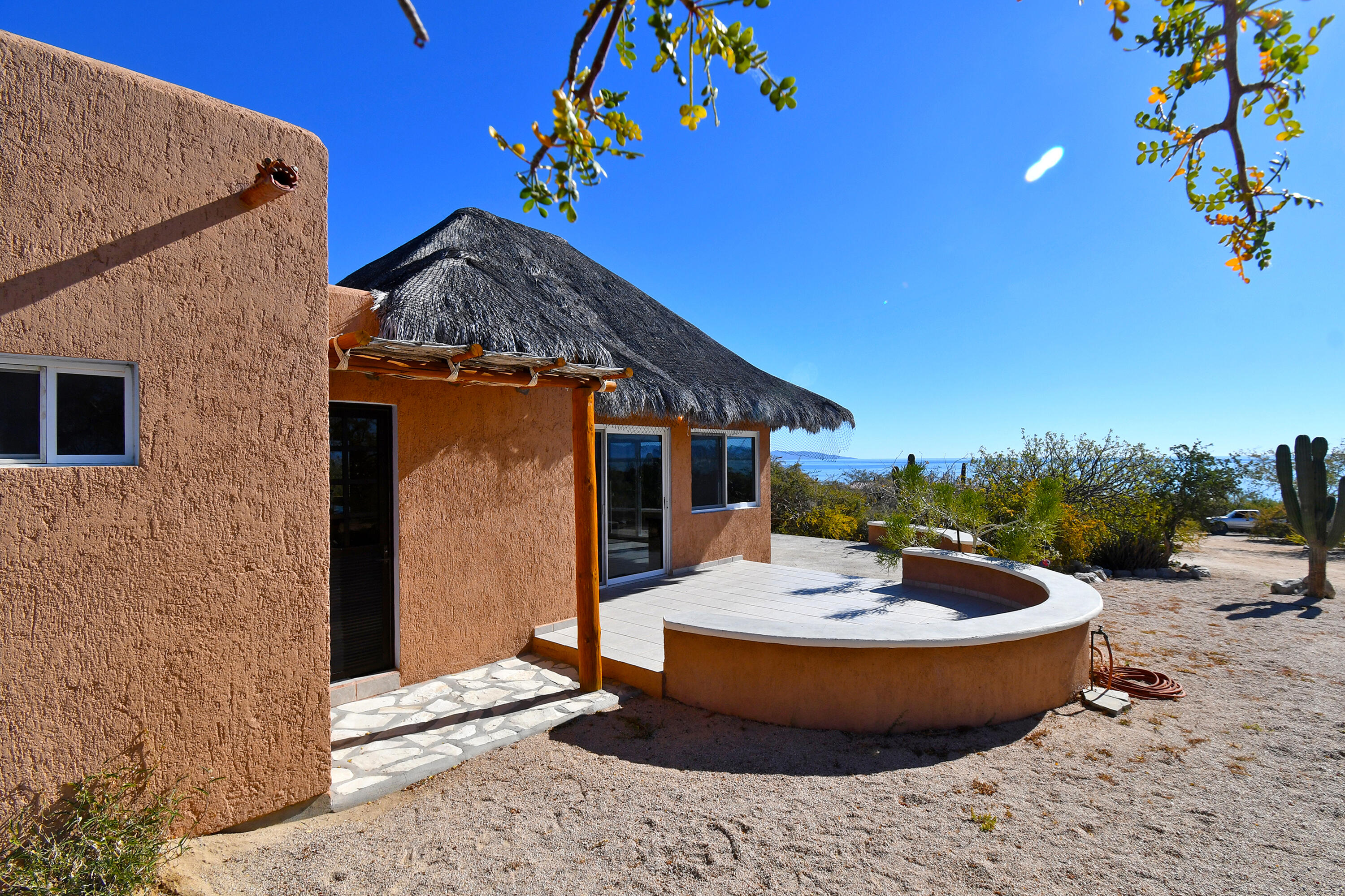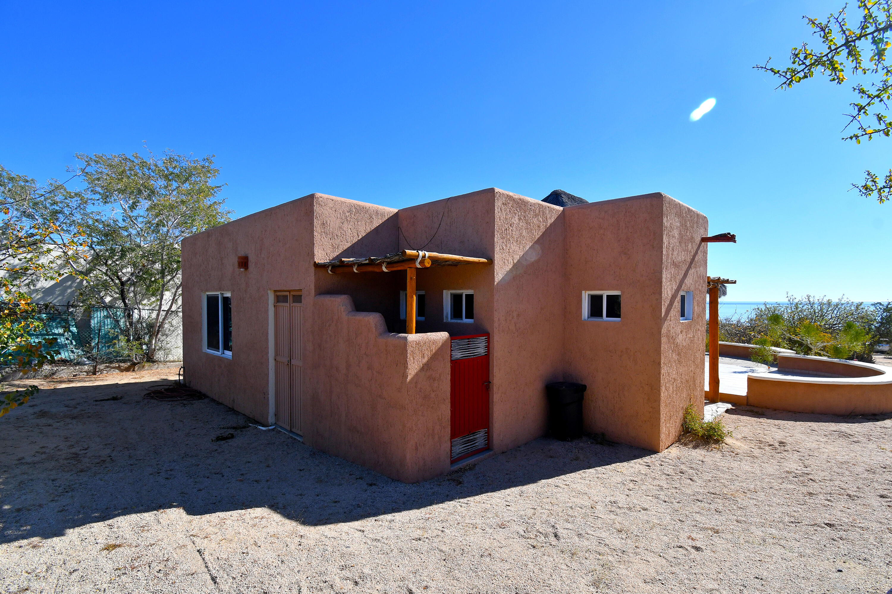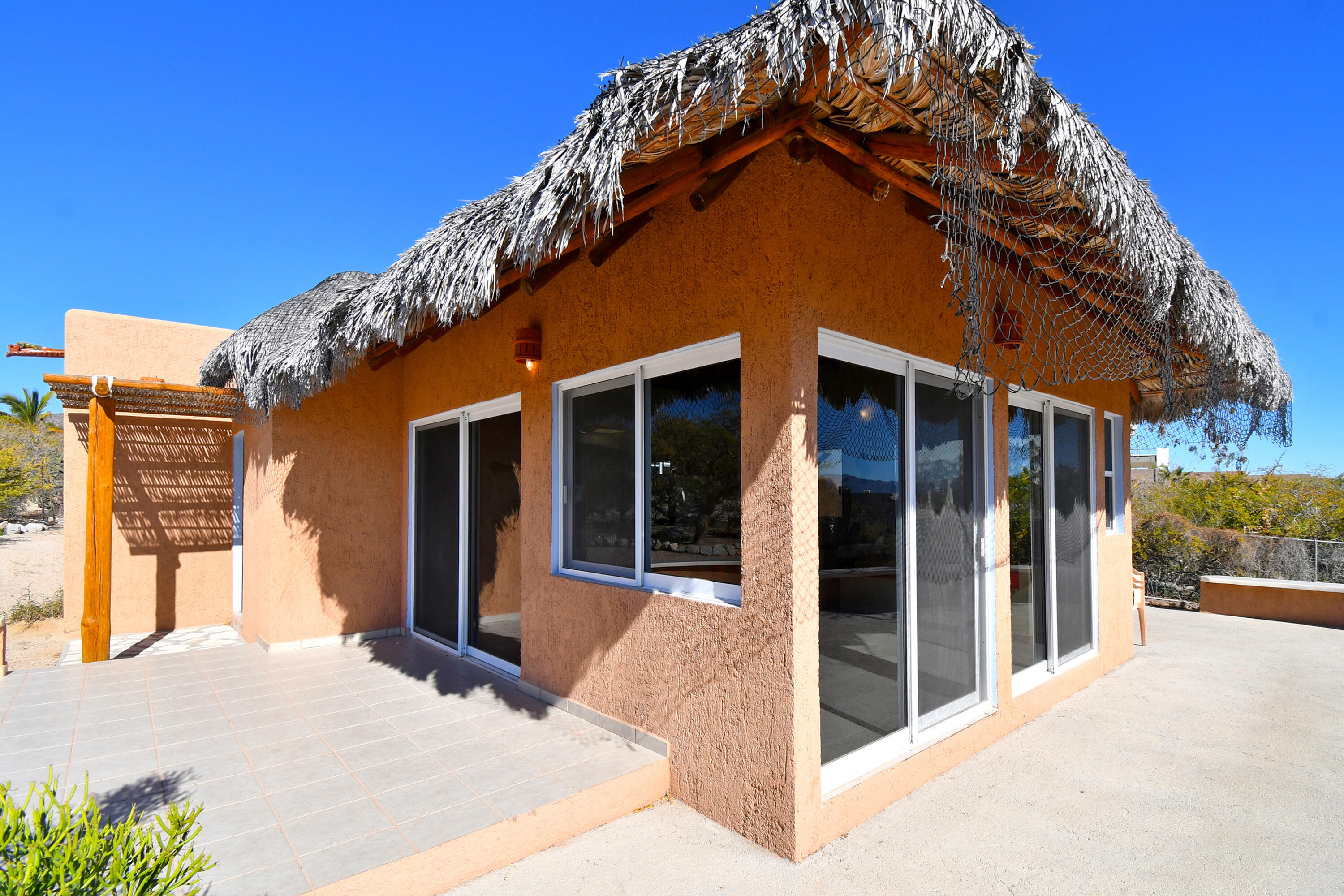Palapa Sunrise - Your Baja dream retreat awaits. This charming 1-bedroom, 1-bath home features a beautifully woven palapa roof over the living and dining area, creating a warm coastal ambiance. Large windows frame water views and fill the home with natural light. The property sits on one of two adjacent lots within a private gated community. The second lot, dotted with native desert vegetation, provides a natural buffer that helps protect the views and privacy and may offer potential for a future casita or guest space, subject to community guidelines. A rare opportunity to enjoy relaxed Baja living as well as world class windsports and mountain biking in a peaceful setting and at an affordable price. Beach access is within walking distance.