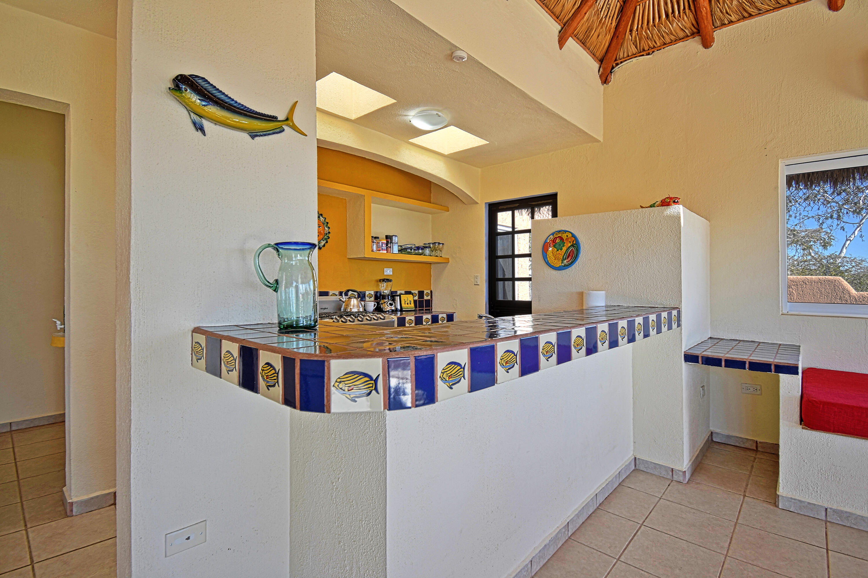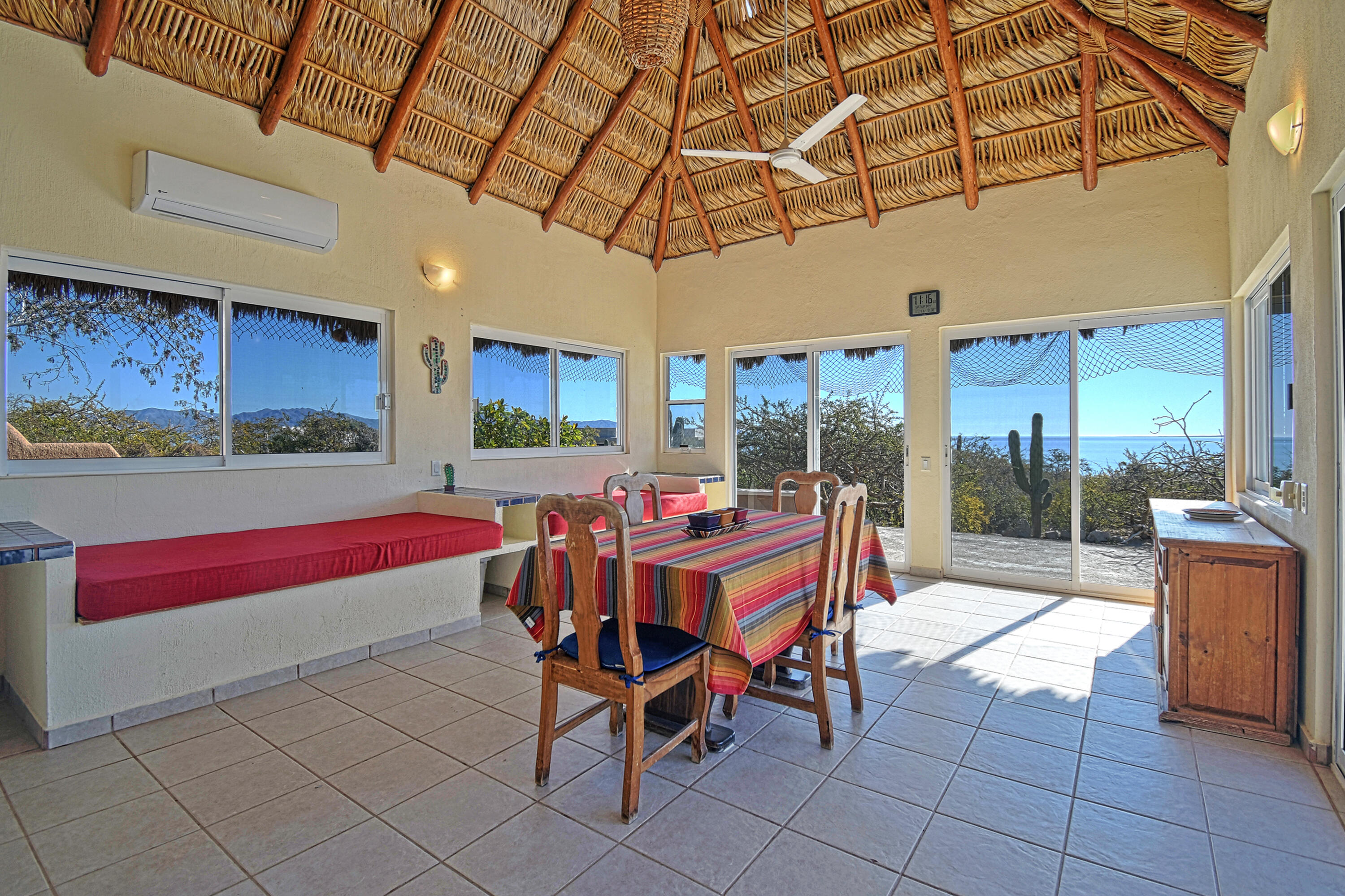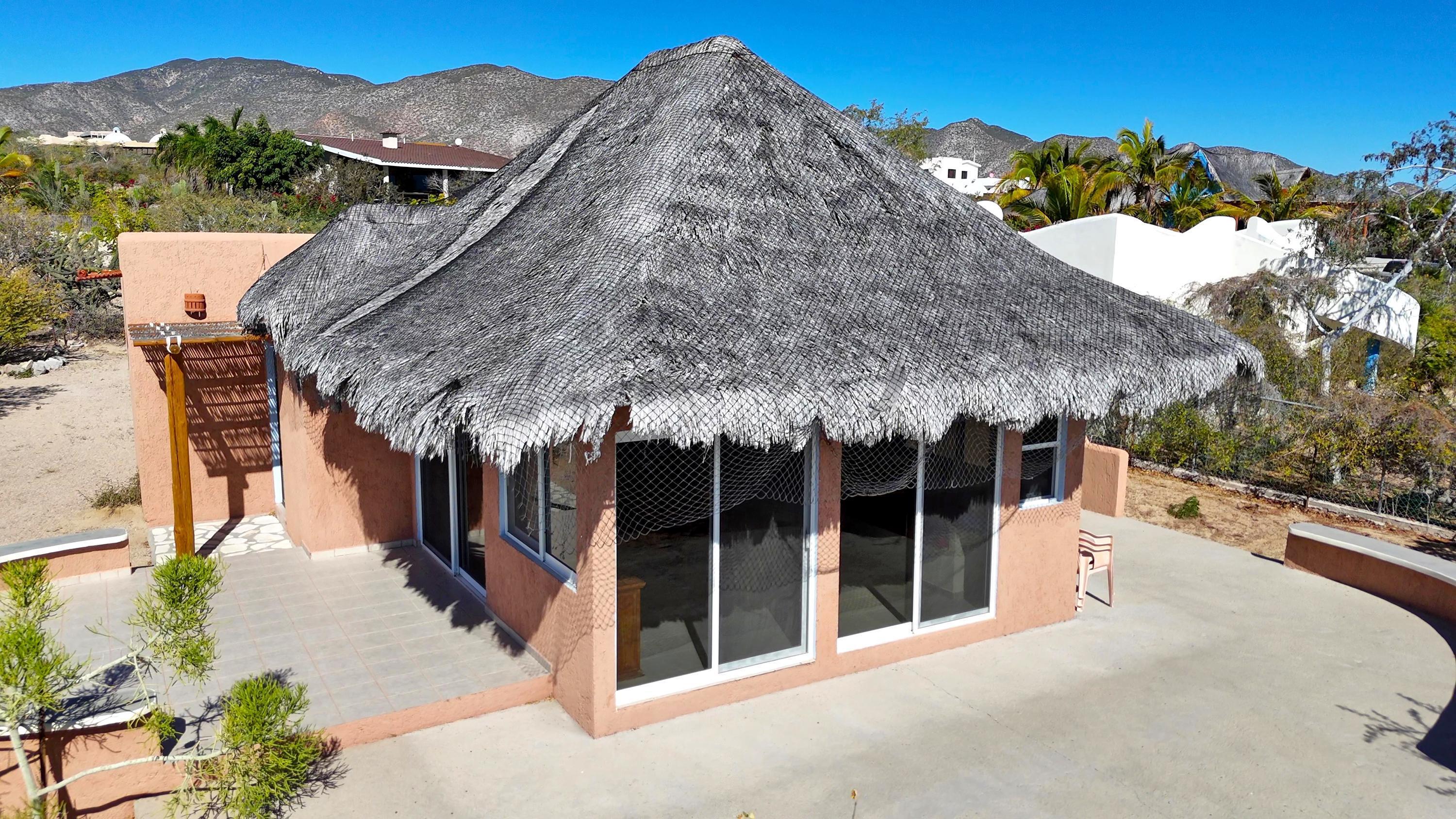 Palapa Sunrise - Your Baja dream retreat awaits. This charming 1-bedroom, 1-bath home features a beautifully woven palapa roof over the living and dining area, creating a warm coastal ambiance. Large windows frame water views and fill the home with natural light. The property sits on one of two adjacent lots within a private gated community. The second lot, dotted with native desert vegetation, provides a natural buffer that helps protect the views and privacy and may offer potential for a future casita or guest space, subject to community guidelines. A rare opportunity to enjoy relaxed Baja living as well as world class windsports and mountain biking in a peaceful setting and at an affordable price. Beach access is within walking distance.