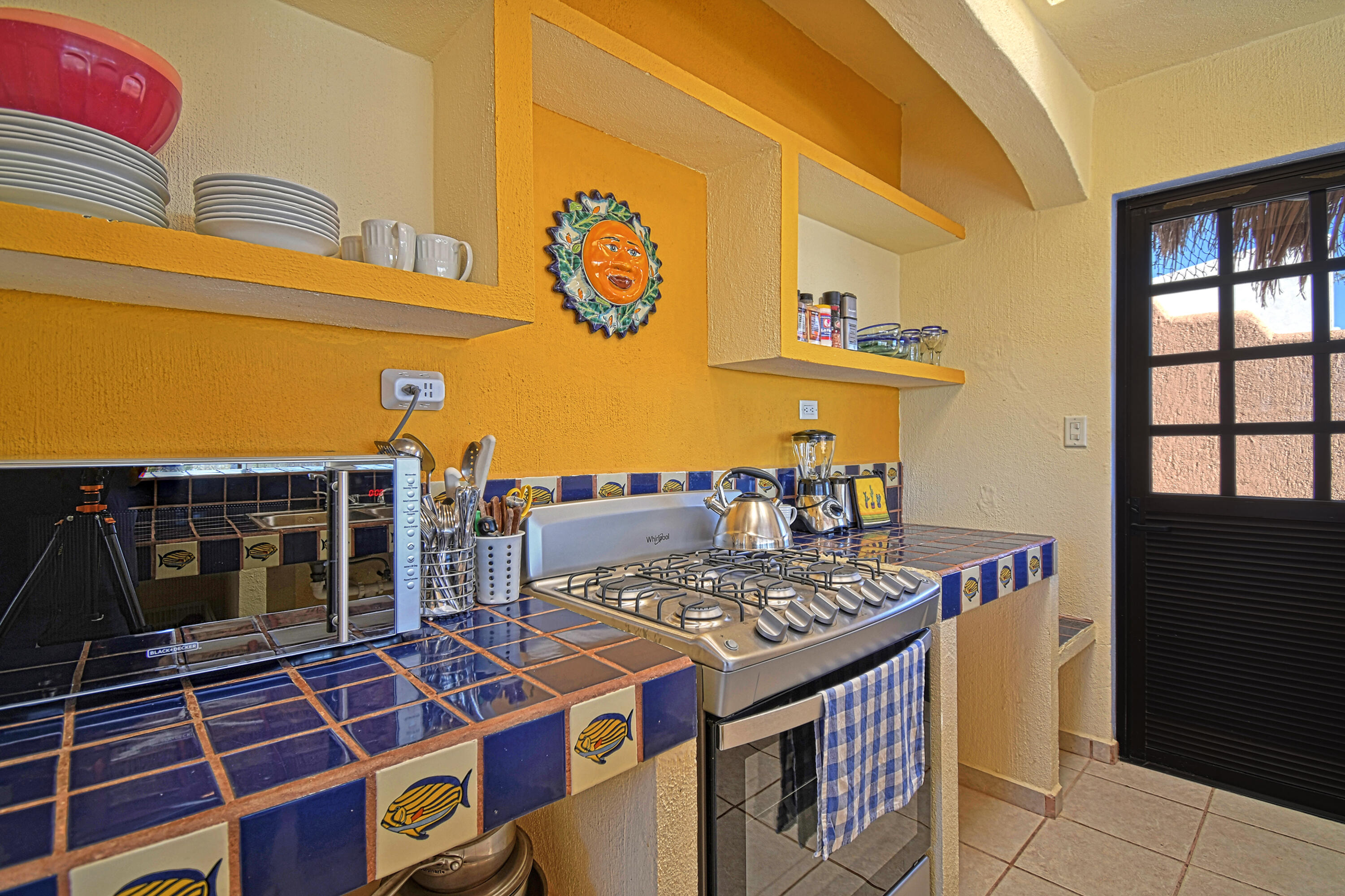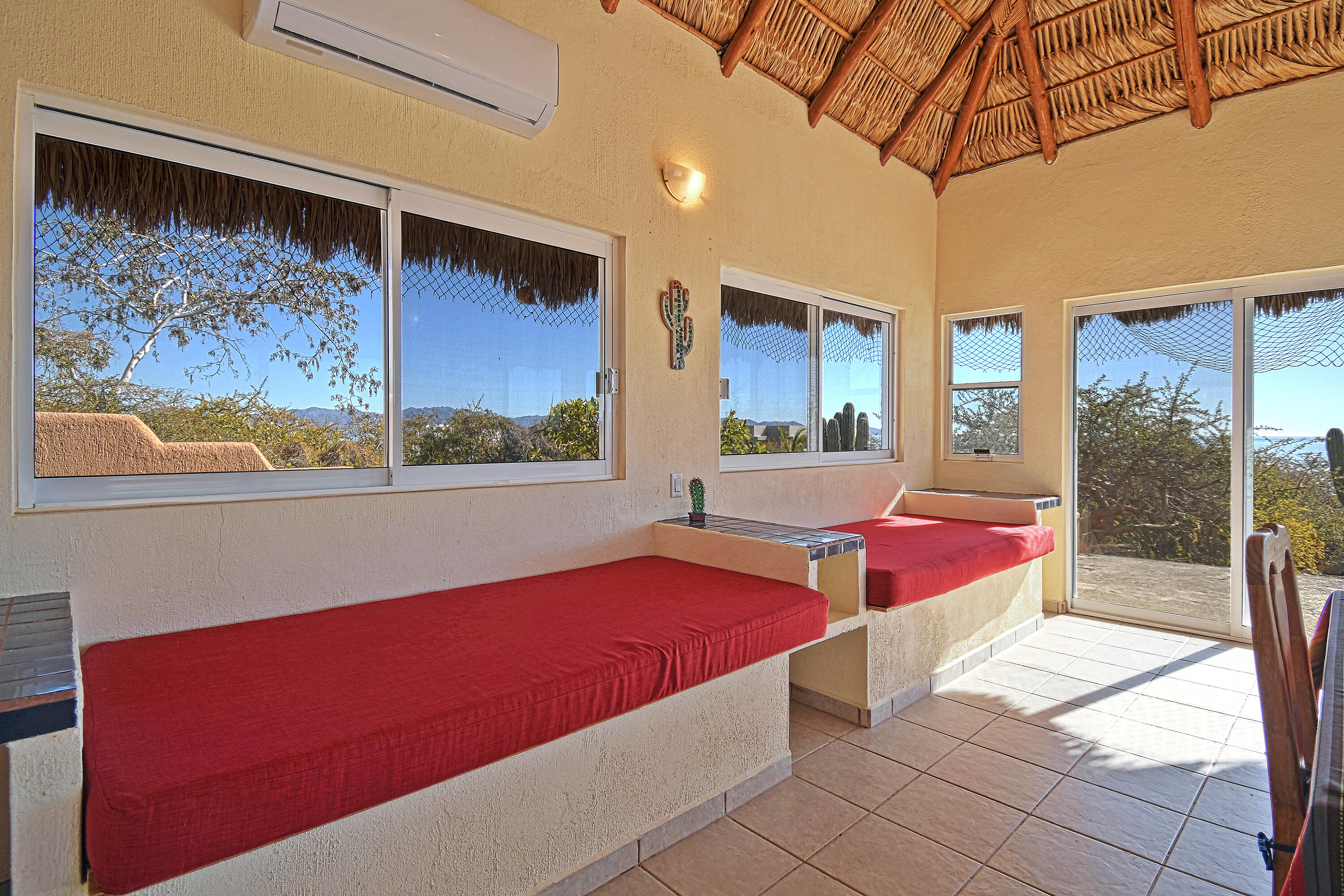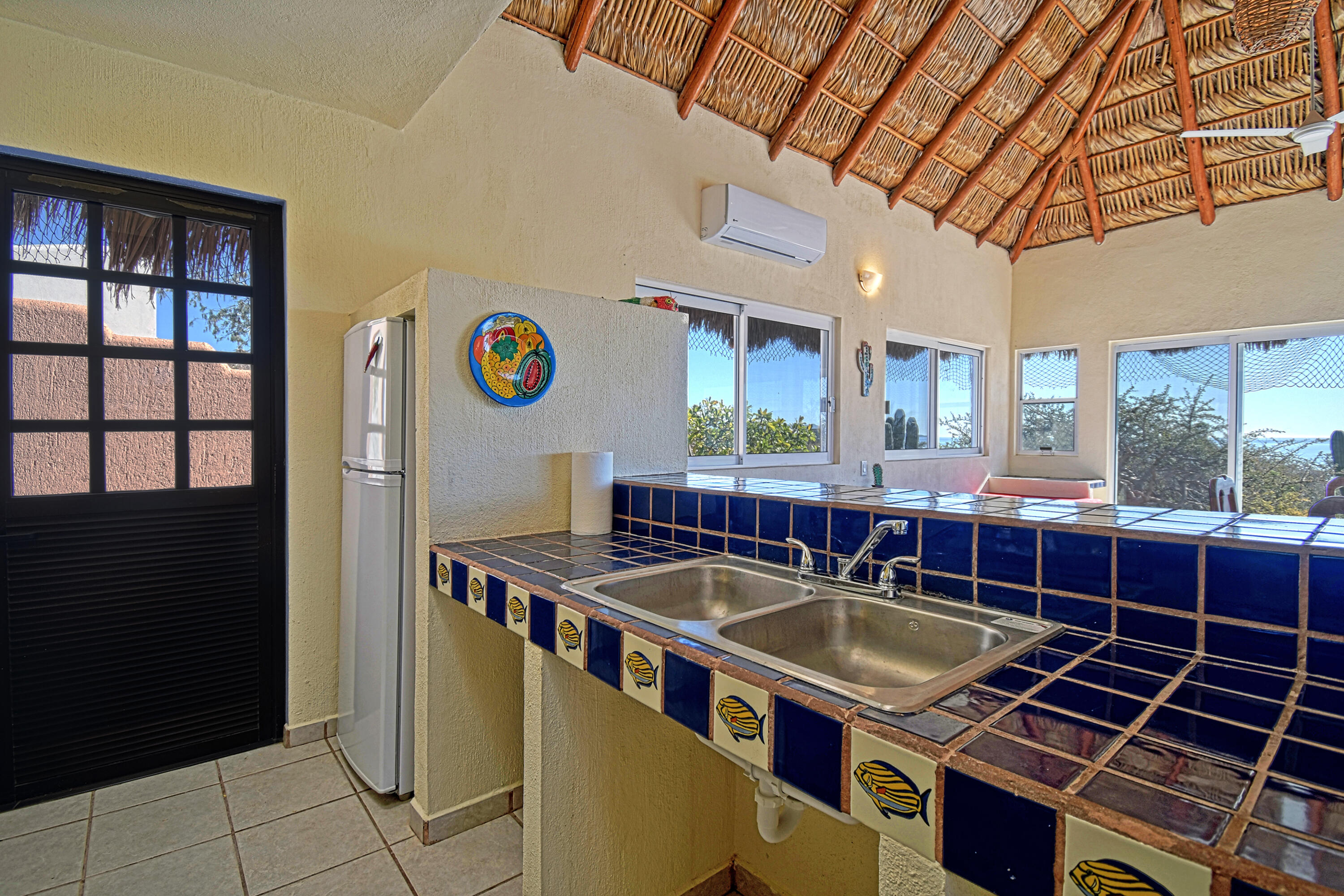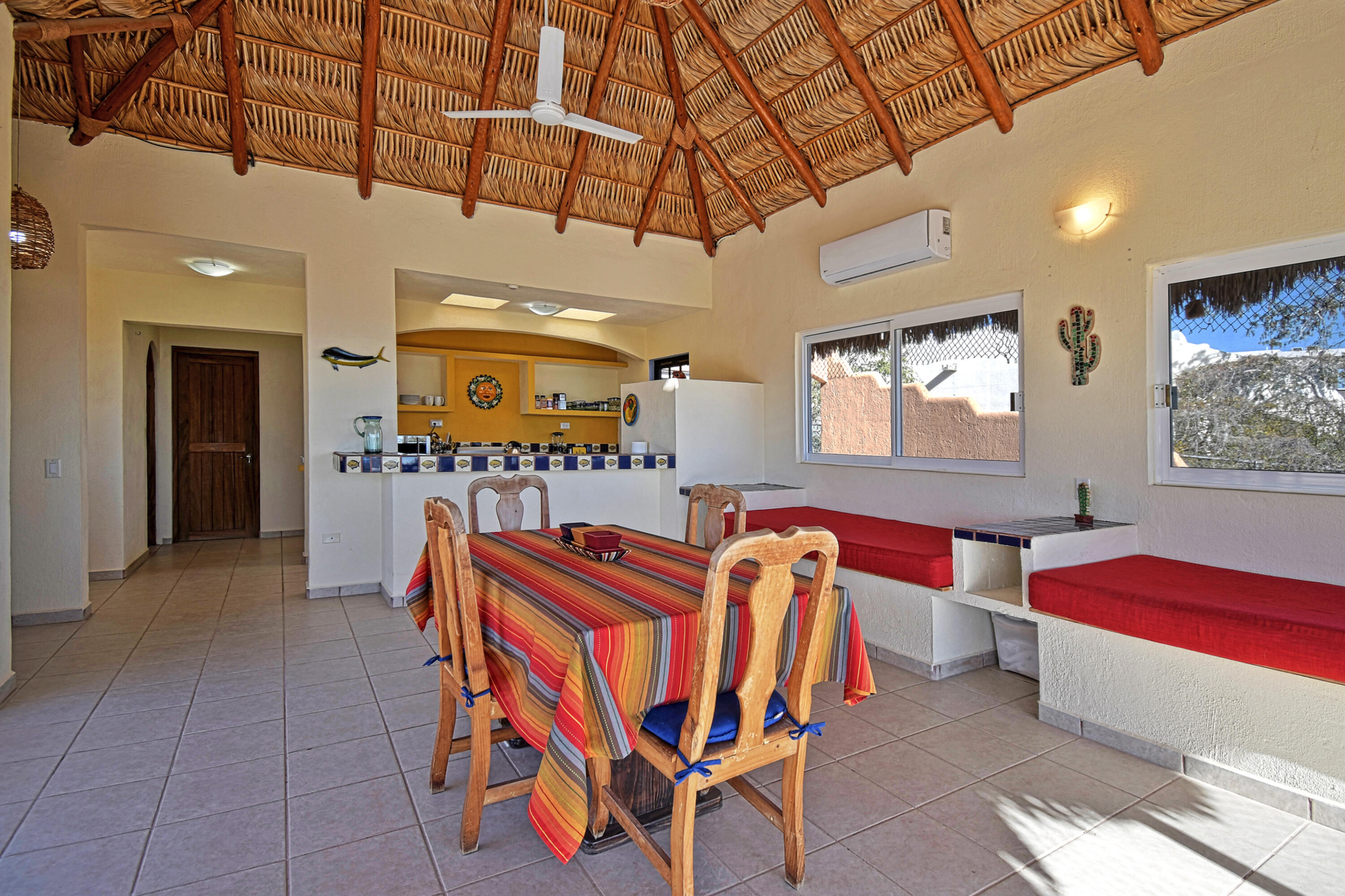 Palapa Sunrise - Your Baja dream retreat awaits. This charming 1-bedroom, 1-bath home features a beautifully woven palapa roof over the living and dining area, creating a warm coastal ambiance. Large windows frame water views and fill the home with natural light. The property sits on one of two adjacent lots within a private gated community. The second lot, dotted with native desert vegetation, provides a natural buffer that helps protect the views and privacy and may offer potential for a future casita or guest space, subject to community guidelines. A rare opportunity to enjoy relaxed Baja living as well as world class windsports and mountain biking in a peaceful setting and at an affordable price. Beach access is within walking distance.
