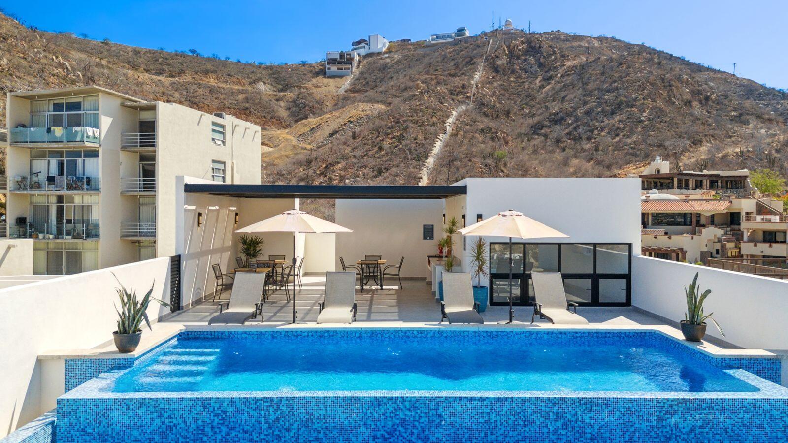 Palma Blanca is a unique condominium development located in the heart of Cabo San Lucas, next to Pedregal de Cabo San Lucas. Couple of minutes walk downtown, this development is set apart from others in the area because it offers luxurious accommodations at an affordable price. Low density with 15 units. 2 of them being 3 BR | 3 BA, laundry room. Including an elevator, common pool and deck. Additionally, Palma Blanca is situated in a prime location that provides residents with stunning views of Cabo San Lucas Bay.