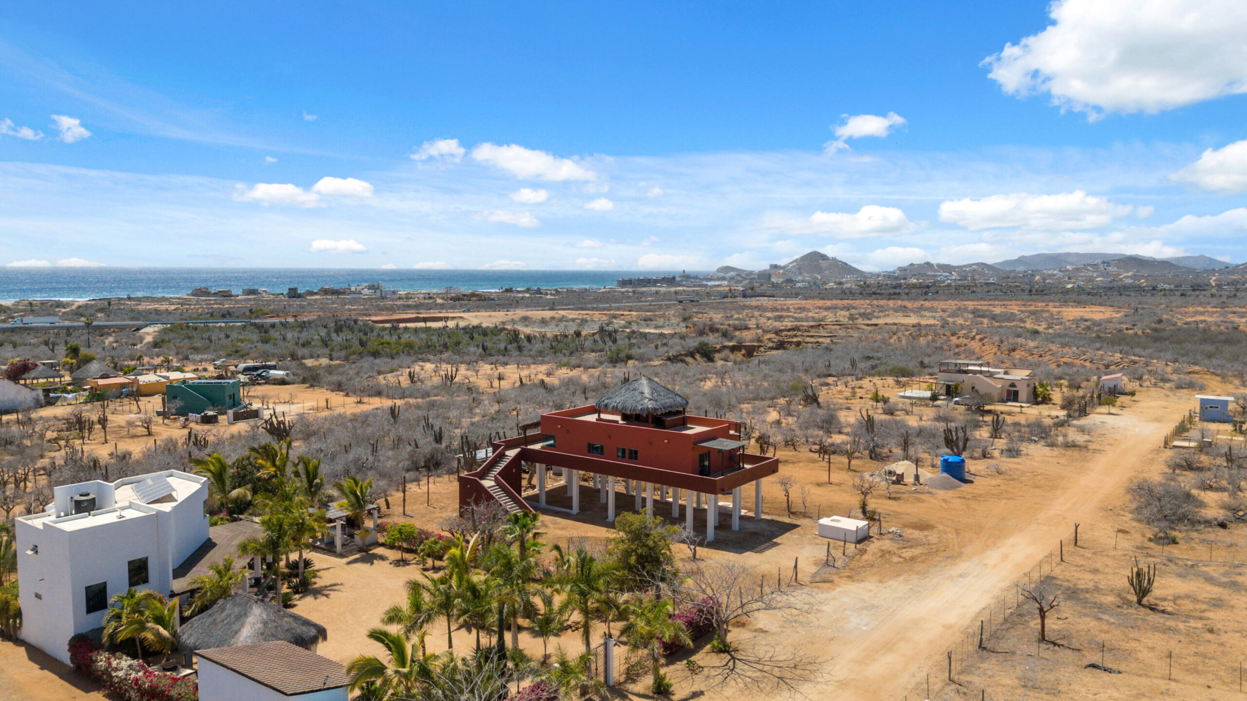Casa Sky is located in a quiet and private neighborhood just minutes from Pescadero, elevated to take full advantage of the Pacific's stunning ocean views. This spacious 1-bedroom, 2-bathroom home has never been lived in and features a kitchen with appliances and custom cabinetry, a large walk-in closet, generous storage throughout, and 180-degree ocean views from the main living area and rooftop. Powered by nine solar panels with room to expand, the home is built for both comfort and efficiency. The ample parking area below easily accommodates multiple vehicles, a boat, or recreational equipment, while the rooftop palapa offers the ideal setting to BBQ and enjoy unforgettable sunsets. With open space, privacy, land, and views, this home is ready for you to make it your own.