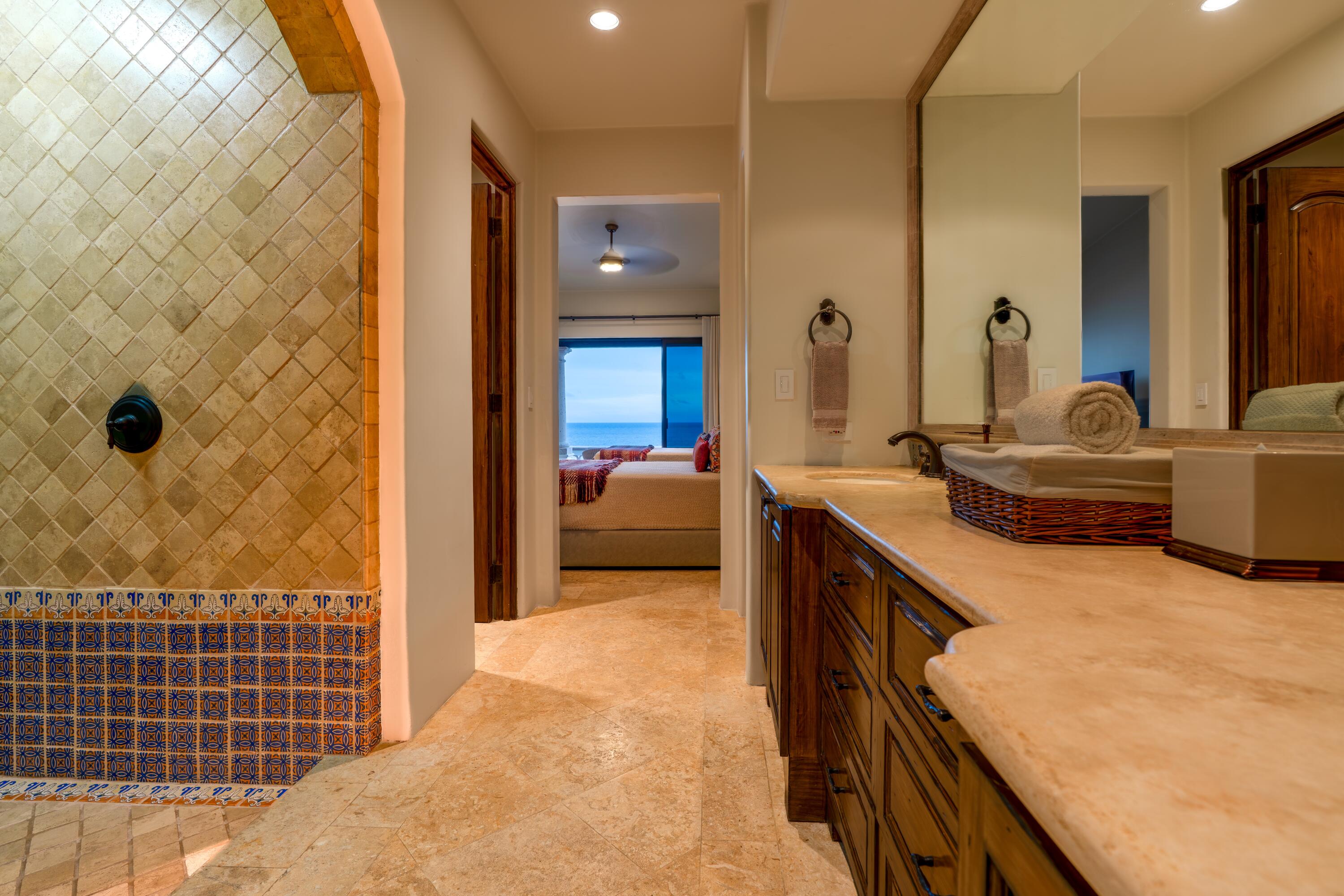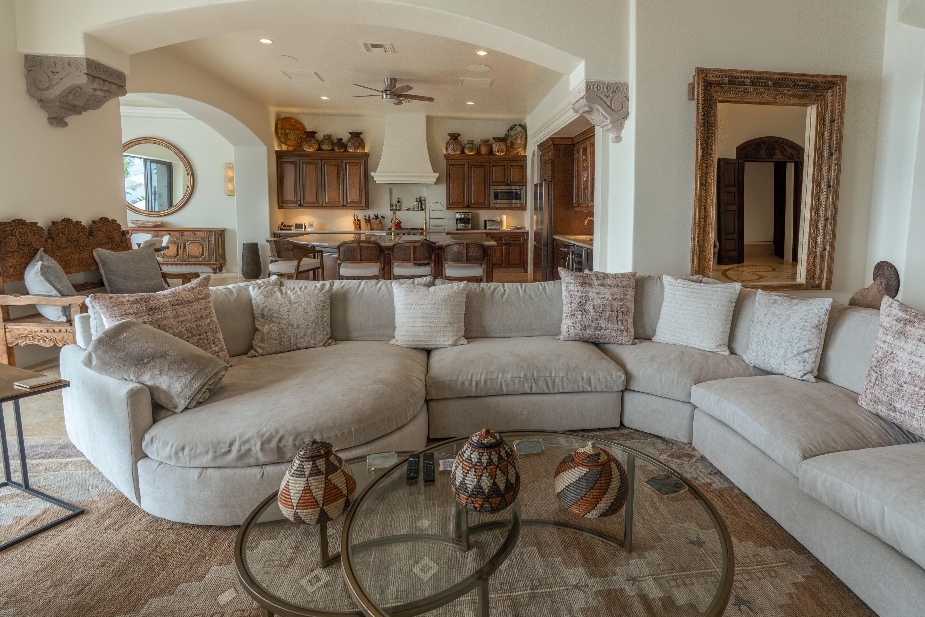 This stunning second-row corner villa offers privacy and white-water ocean views with just a short walk to the beach. Enjoy the sound of the waves and seasonal whale watching from the comfort of your home, an everyday reminder of Cabo's coastal lifestyle. Recently remodeled, the villa has been thoughtfully reimagined to include five bedrooms along with a custom bar, creating an ideal setting for relaxed living and effortless entertainment. Distinguished from other Terrazas residences by its upgraded layout, the home features new modern furnishings, refined finishes, and clean architectural lines that feel both sophisticated and inviting. Expansive interior spaces open seamlessly to the outdoors, offering a true indoor-outdoor living experience designed to maximize ocean views and comfort.