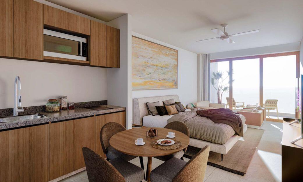 Located across from the iconic Cerrito del Timbre, home to a beautiful Botanical Garden, this project offers unobstructed views and a prime setting that blends nature with comfort. Just a five-minute walk from key attractions such as the marina and a wide variety of restaurants, Park Cabo Residences provides a unique connection to the most emblematic features of this vibrant destination. The project offers an exclusive three-level design, housing only 15 residential units. These range from cozy studios to spacious three-bedroom apartments equipped with high-quality carpentry and essential kitchen elements, including a sink, cooktop, and kitchen hood, ensuring functionality and style. With a projected completion date of November 2025, Park Cabo Residences presents an unparalleled