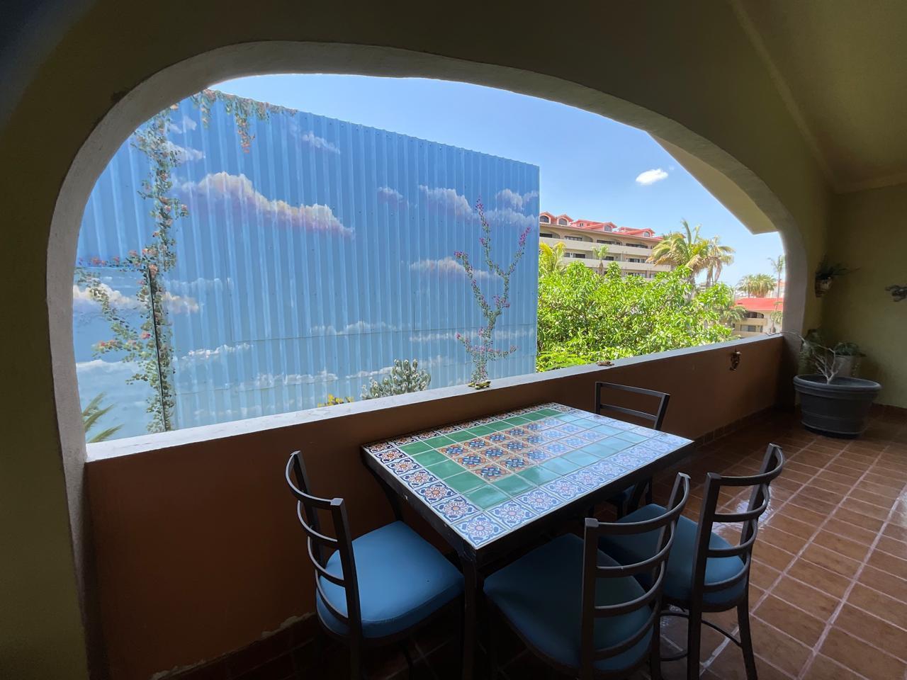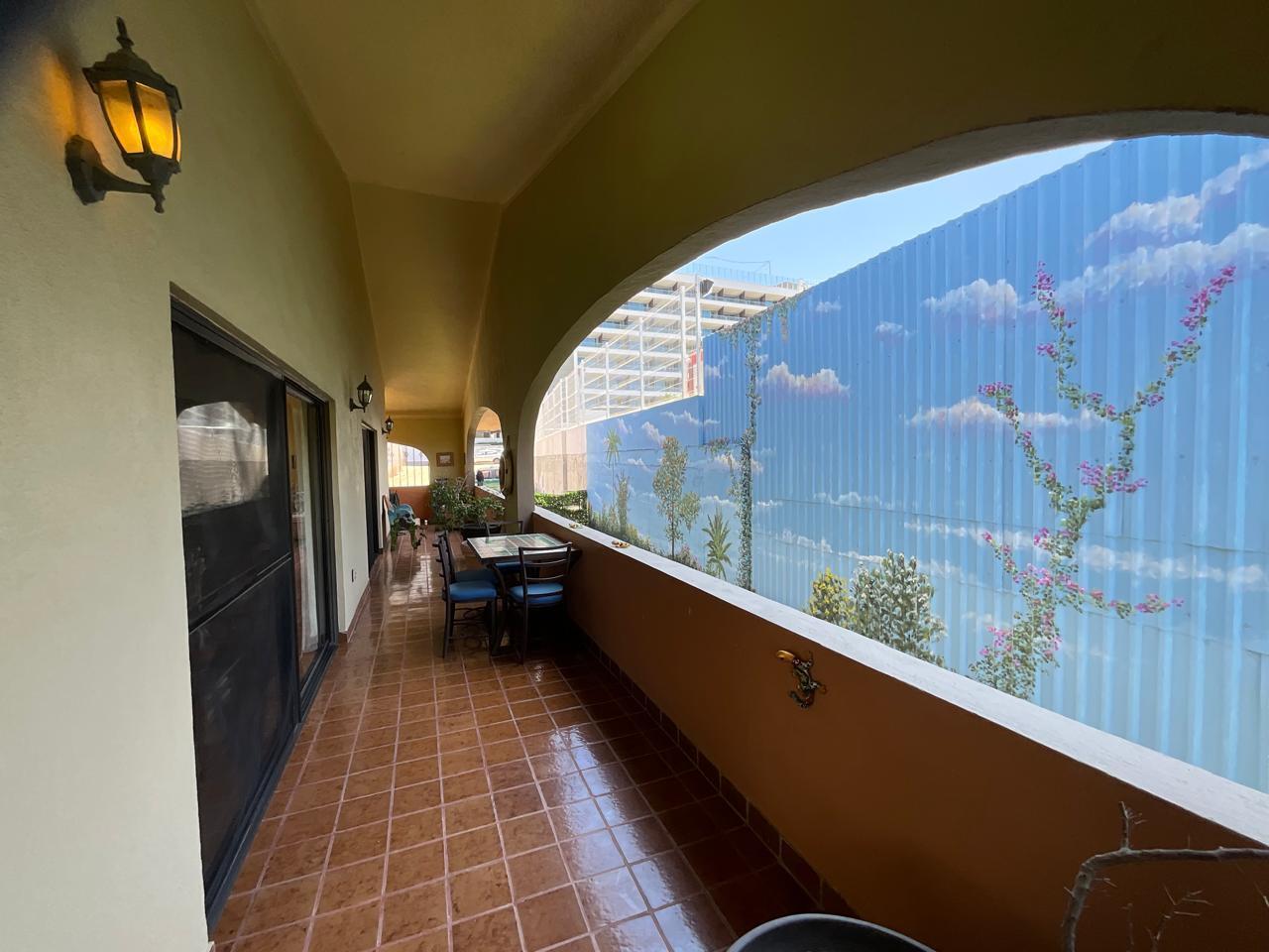 This beautiful 1737 square foot, 2-bedroom penthouse condo with vaulted ceilings, has been furnished with a Mexican style, it has a large wrap around spacious patio with a beautiful view of the courtyard and pool, this is a unique condo and is in excellent condition. Located in the heart of Cabo San Lucas, one block from the famous Medano beach, and only a five-minute walk to the center of Cabo and the Marina. This condo has never been rented it has only been used for personal use. Condo easy to show. this condo also includes a 251 sq ft private garage D-7 which are not available very often. garage comes with a 1996 jeep grand Cherokee that has been maintained on a regular basis