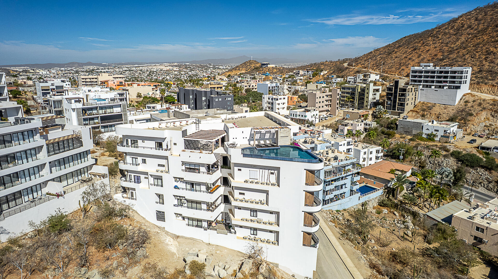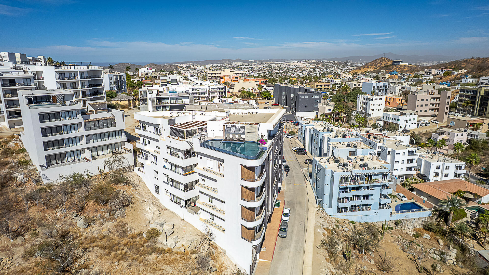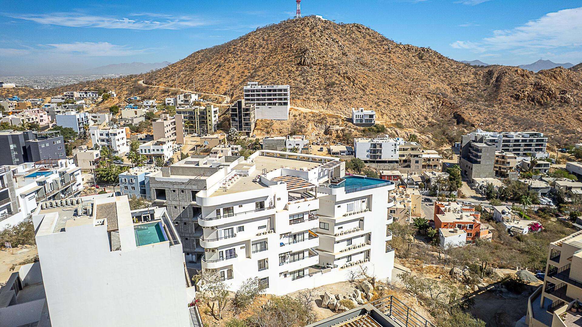Experience elevated living in this one-of-a-kind turnkey penthouse in downtown Cabo--only 3 penthouse condos in the building. Fully furnished 2BD/2.5BA with designer finishes, two oversized closets, and two secured garage spots behind a mechanic gate and secured entry door. Built in 2023, this stylish retreat offers peace of mind and comfort. Enjoy panoramic bay and city views from the rooftop with an infinity-edge pool, lounge areas, and shared BBQ zone. Easily accessible to beaches, dining, marina, hospitals, and grocery stores. Luxury, security, and convenience--all in one.