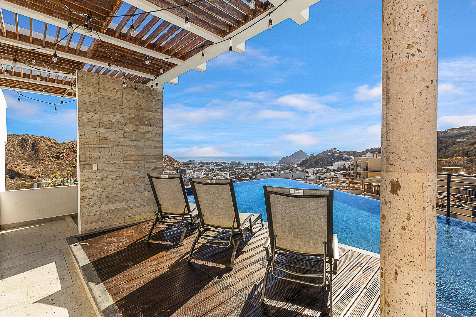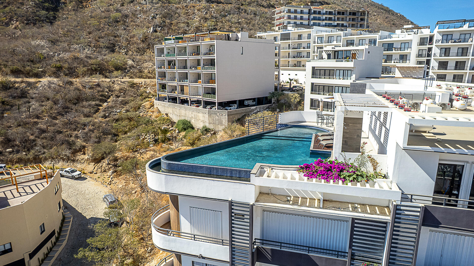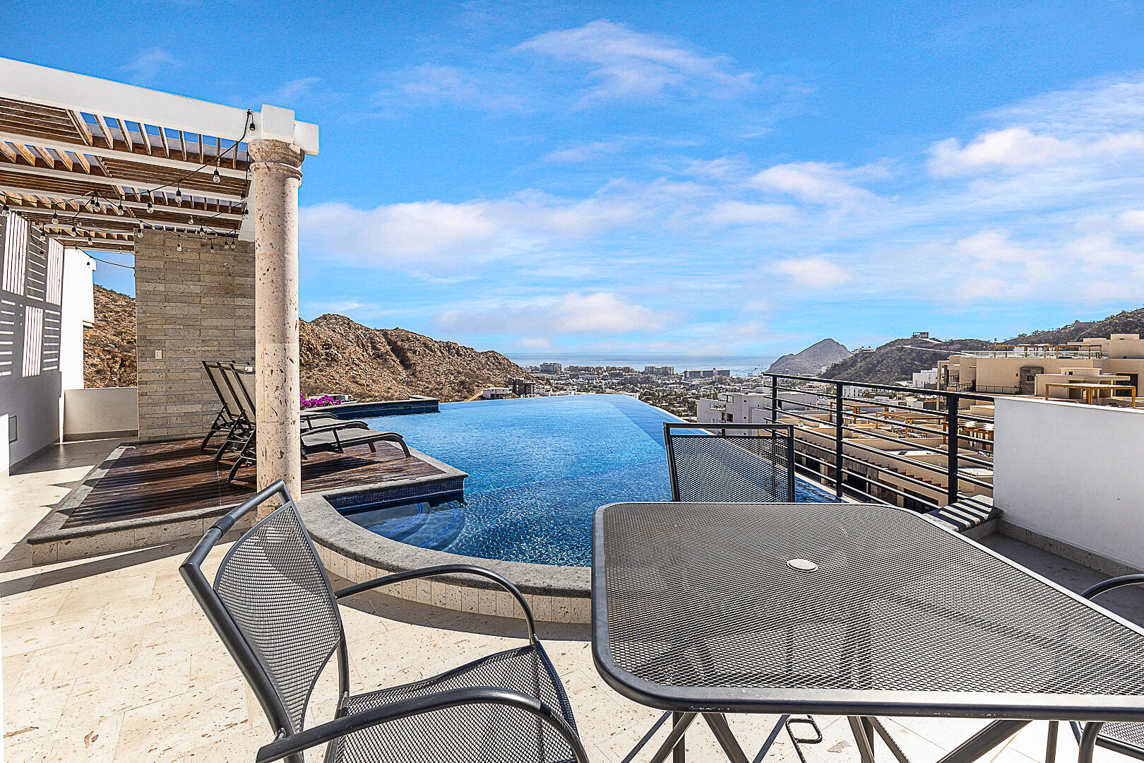 Experience elevated living in this one-of-a-kind turnkey penthouse in downtown Cabo--only 3 penthouse condos in the building. Fully furnished 2BD/2.5BA with designer finishes, two oversized closets, and two secured garage spots behind a mechanic gate and secured entry door. Built in 2023, this stylish retreat offers peace of mind and comfort. Enjoy panoramic bay and city views from the rooftop with an infinity-edge pool, lounge areas, and shared BBQ zone. Easily accessible to beaches, dining, marina, hospitals, and grocery stores. Luxury, security, and convenience--all in one.