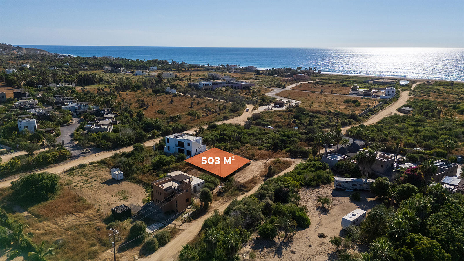 Discover the perfect opportunity to live your Baja dreams on this stunning 503-square meter lot in El Pescadero, just 400 meters from the pristine sands of San Pedrito Beach. This prime location offers easy access to world-class surfing and swimming at Cerritos and the picturesque San Pedrito spot, both just a short 10-minute drive away. Enjoy the convenience of nearby restaurants, shops, and services in El Pescadero, as well as the vibrant charm of Todos Santos only 20 minutes away. With incredible ocean and mountain views from a rooftop perspective, this manageable-sized lot provides ample space for your dream home, complete with a pool, garden, and room for your toys.