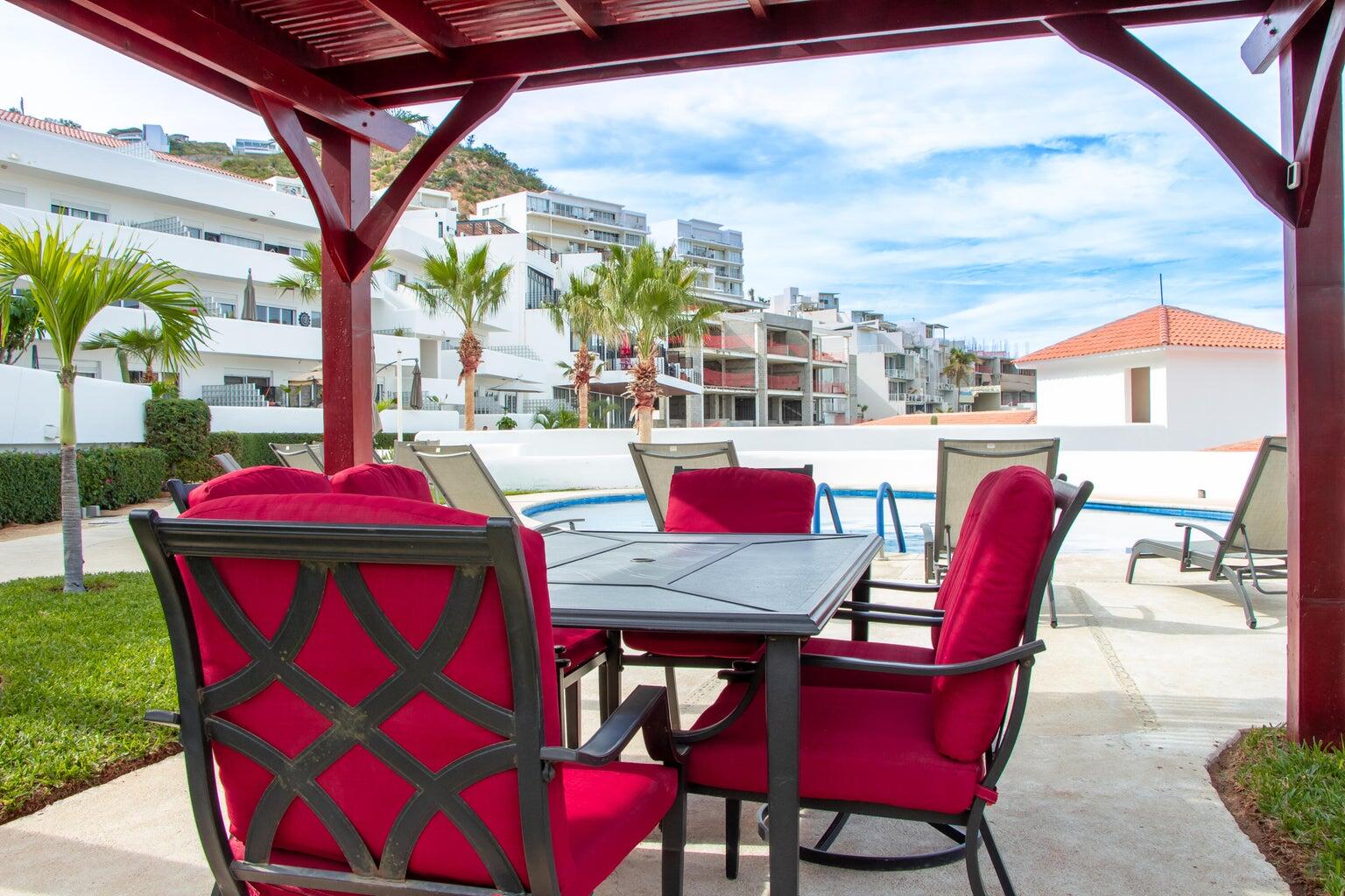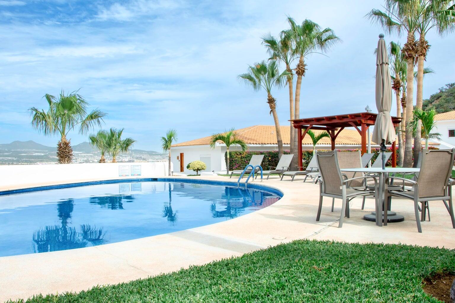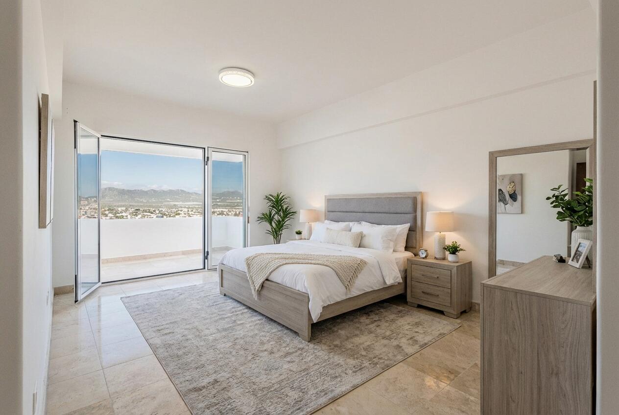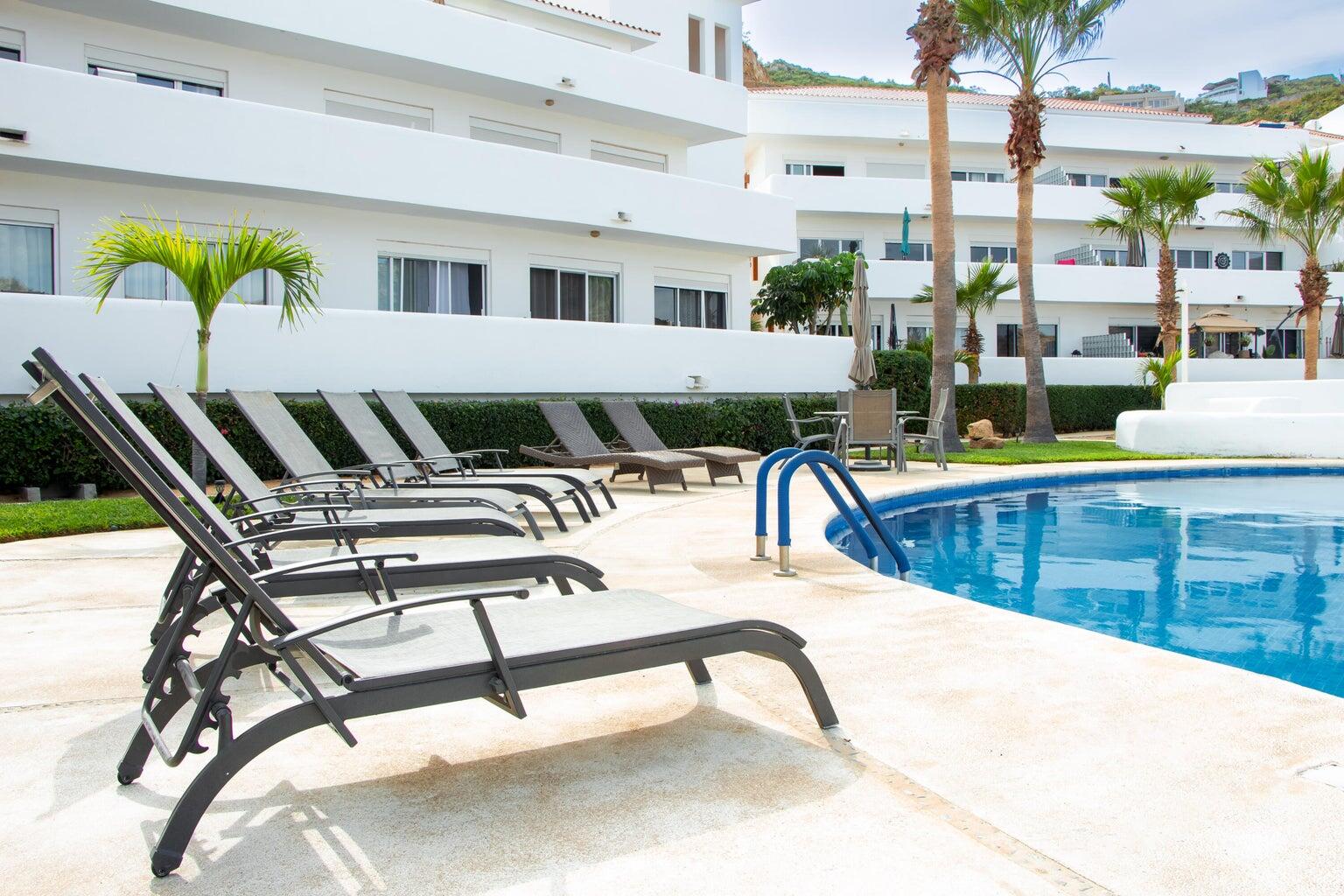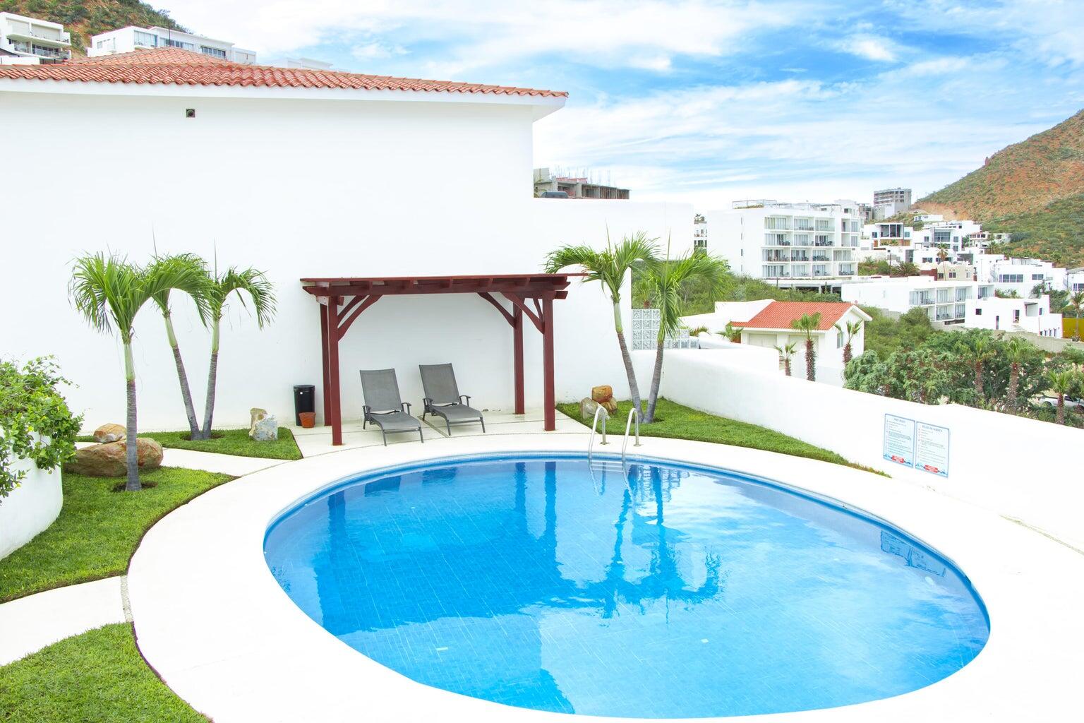 Discover luxury living in Pedregal's prime, serene community. This stunning 2-bedroom, 2-bath condo offers a proven short-term rental history and a blank canvas for your own exquisite retreat. Virtually staged to showcase its potential, the space feels light, airy, and inviting when furnished. Enjoy a spacious terrace with panoramic city and partial ocean views, perfect for relaxing in a quiet setting. Features include a private entrance, assigned garage, pool, and security. Close to town and minutes from Medano Beach. Connected to the desalination plant for clean water. Includes TVs, appliances, and utensils. Great investment opportunity.