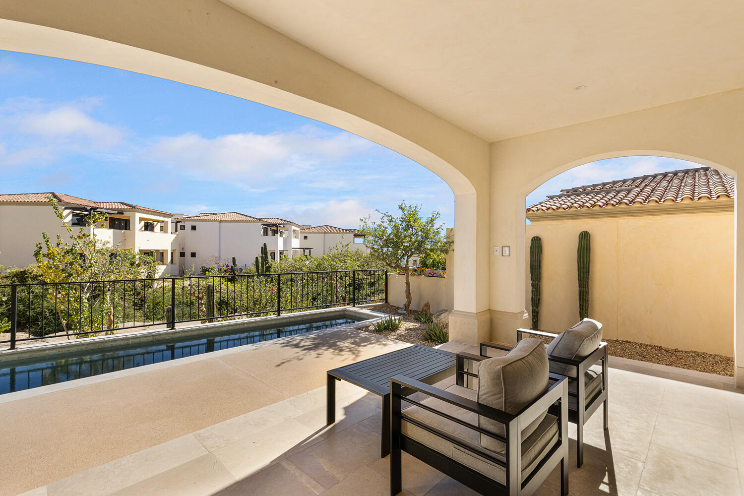Villa 17 is a landmark of timeless elegance, built in a classic Santa Barbara style that exudes quality through its crisp stucco exterior, traditional terracotta-tiled roof, and custom wood elements. This pristine residence presents a flawlessly maintained, like-new interior defined by a crisp and sophisticated neutral palette, serving as a bright, versatile canvas for you to infuse with your personal style This home is an expansive two-story residence offers over 2,300 square feet of air-conditioned living space, designed to prioritize volume, light, and natural texture. The interior is meticulously furnished, blending contemporary comfort with regional warmth through stylish custom cabinetry, and exquisite tile flooring throughout. The core of the home is an expansive, open-concept....